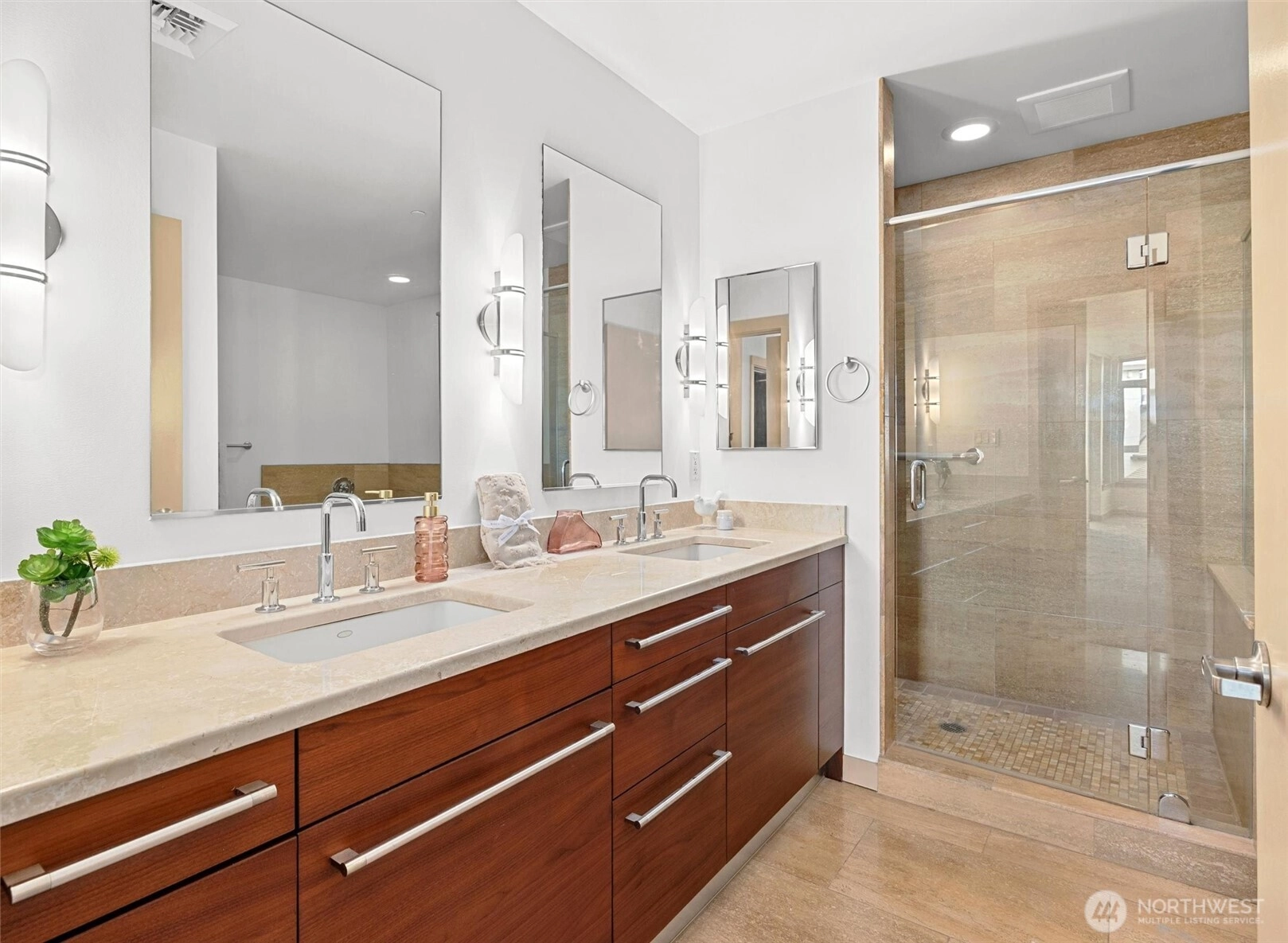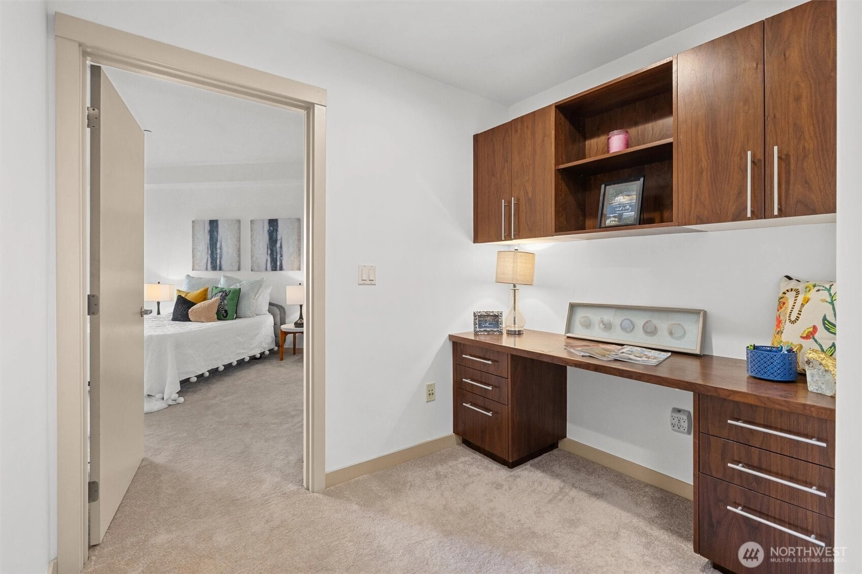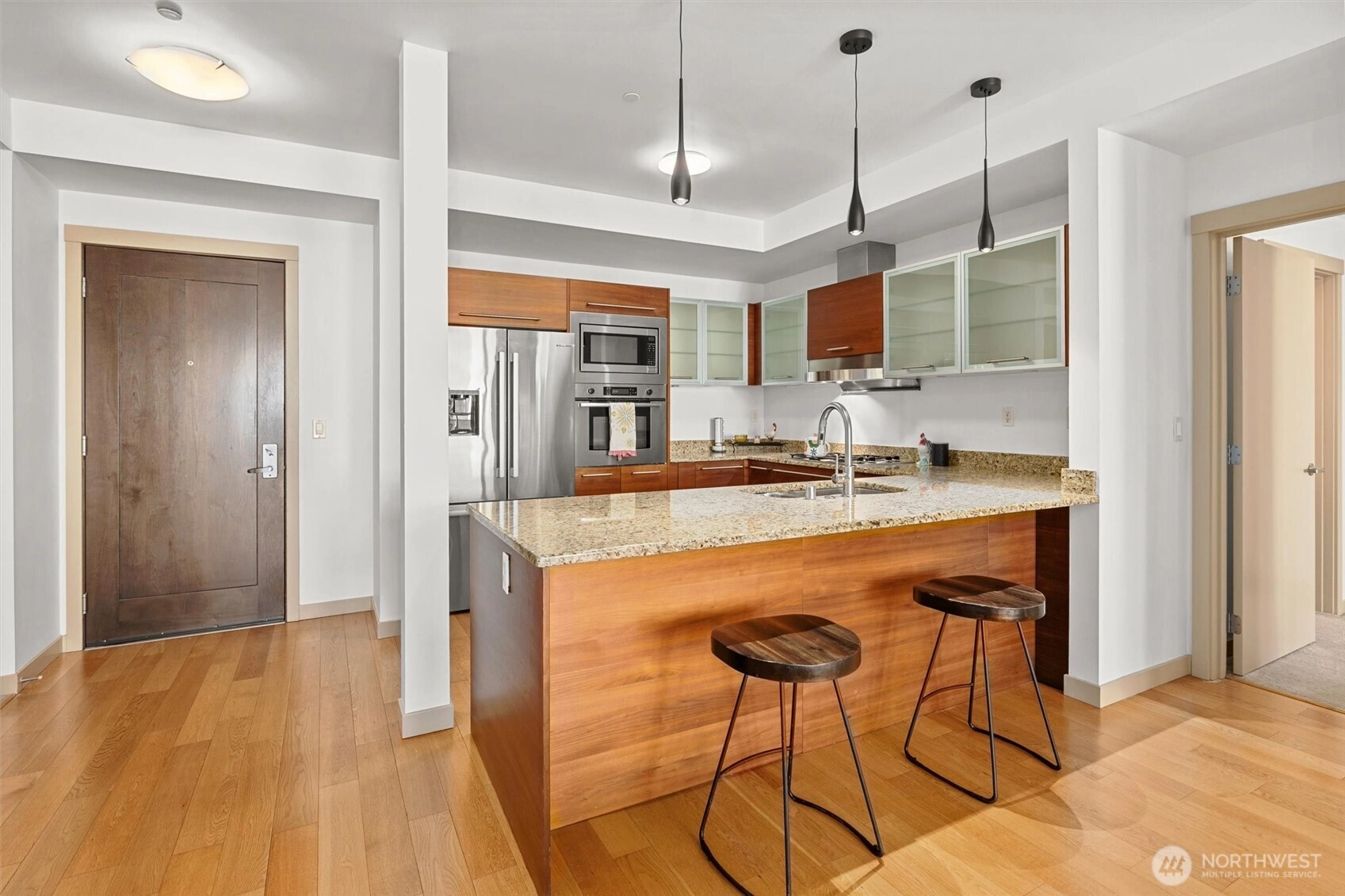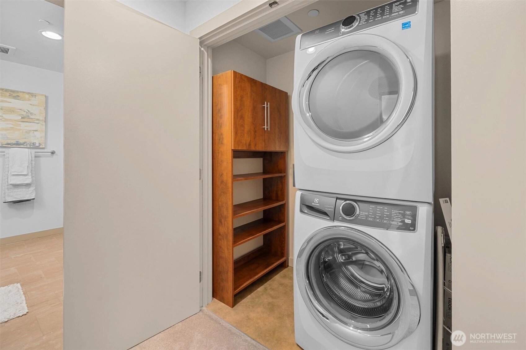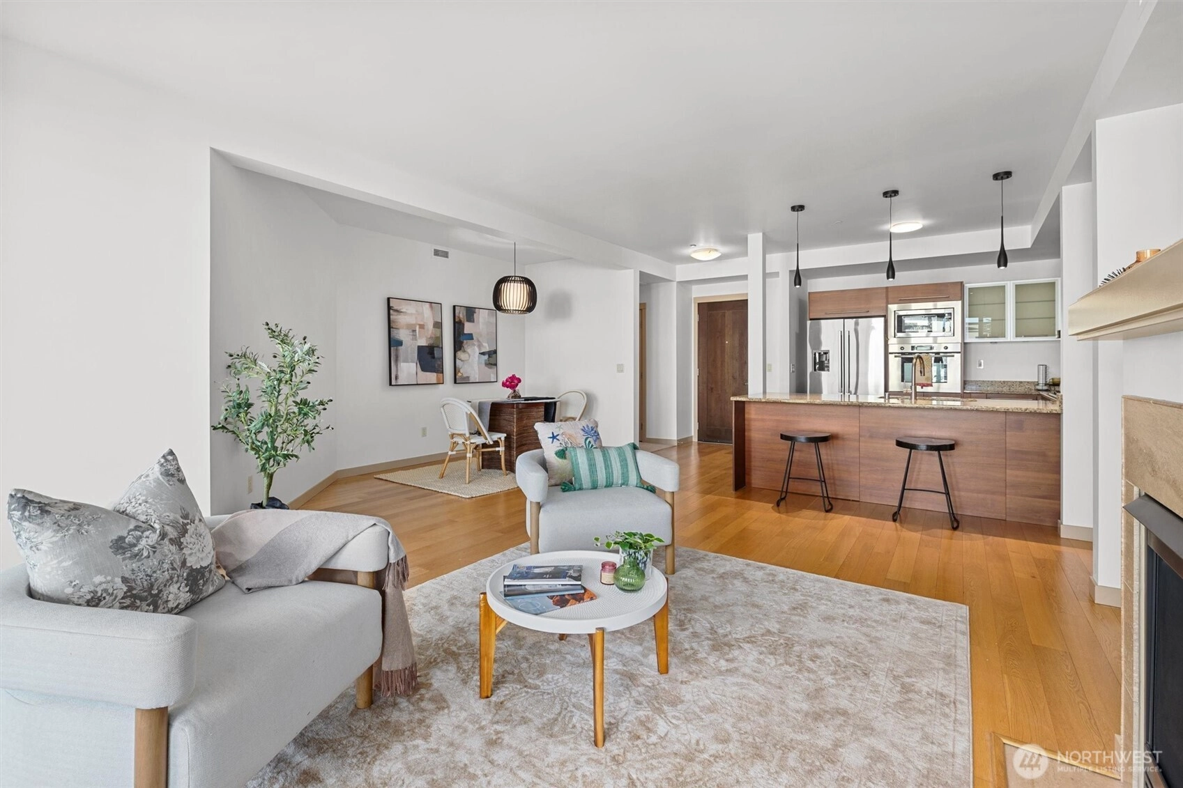 Experience refined living in Kirkland’s sought-after West of Market neighborhood. the coveted Leland Place offers quiet privacy, convenient location & west-facing light w/ peekaboo Lake Washington views. This boutique building is just a short walk to DT, the marina, waterfront parks & dining. This 2 bed, 2 bath unit offers soaring ceilings, thoughtful layout, oversized windows creating bright, open spaces. Features include a primary ensuite w/ large walk-in closets in both bedrooms, cozy gas fireplace, outdoor deck, AC & separate storage. Chefs kitchen w/ all Bosch SS appliances & granite countertops. 2 deeded covered parking spots, secure entry & solid HOA provides peace of mind. Rare opportunity to enjoy Kirklands most desirable location.