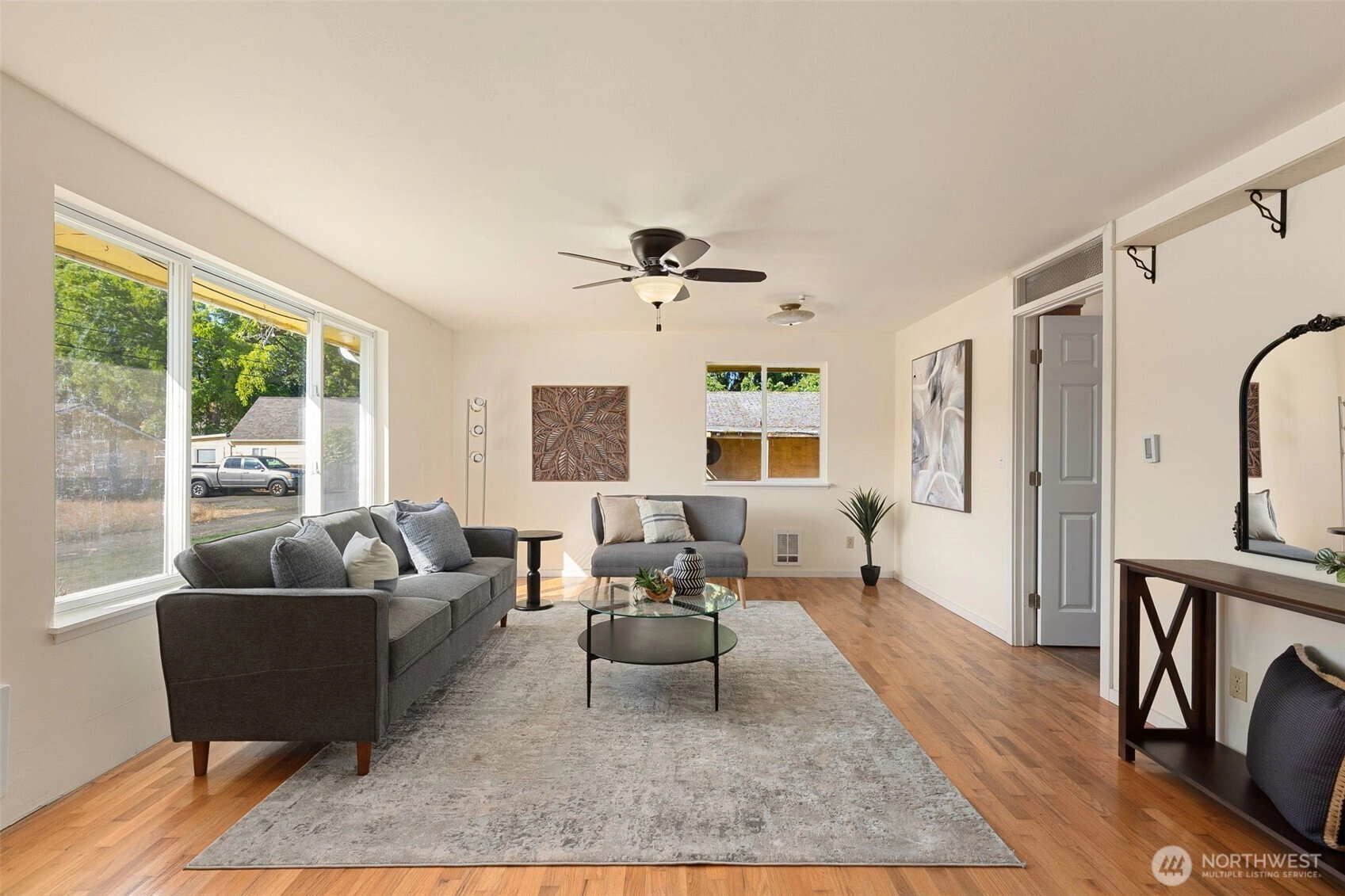 This 3-bedroom rambler in Illahee features fresh interior paint, abundant natural light, real hardwood floors, and two garages plus RV parking. The kitchen and dining area provide ample cabinet storage and easy access to the fully fenced backyard. Down the hall, you’ll find three bedrooms, a full bath, and a spacious laundry room. Roof and windows were updated approximately 10 years ago. Home is located near PSNS, the Seattle Ferry, Illahee State Park & Beach, and nearby shopping. This home is a must-see for anyone wanting to live in this area! Lots of potential!