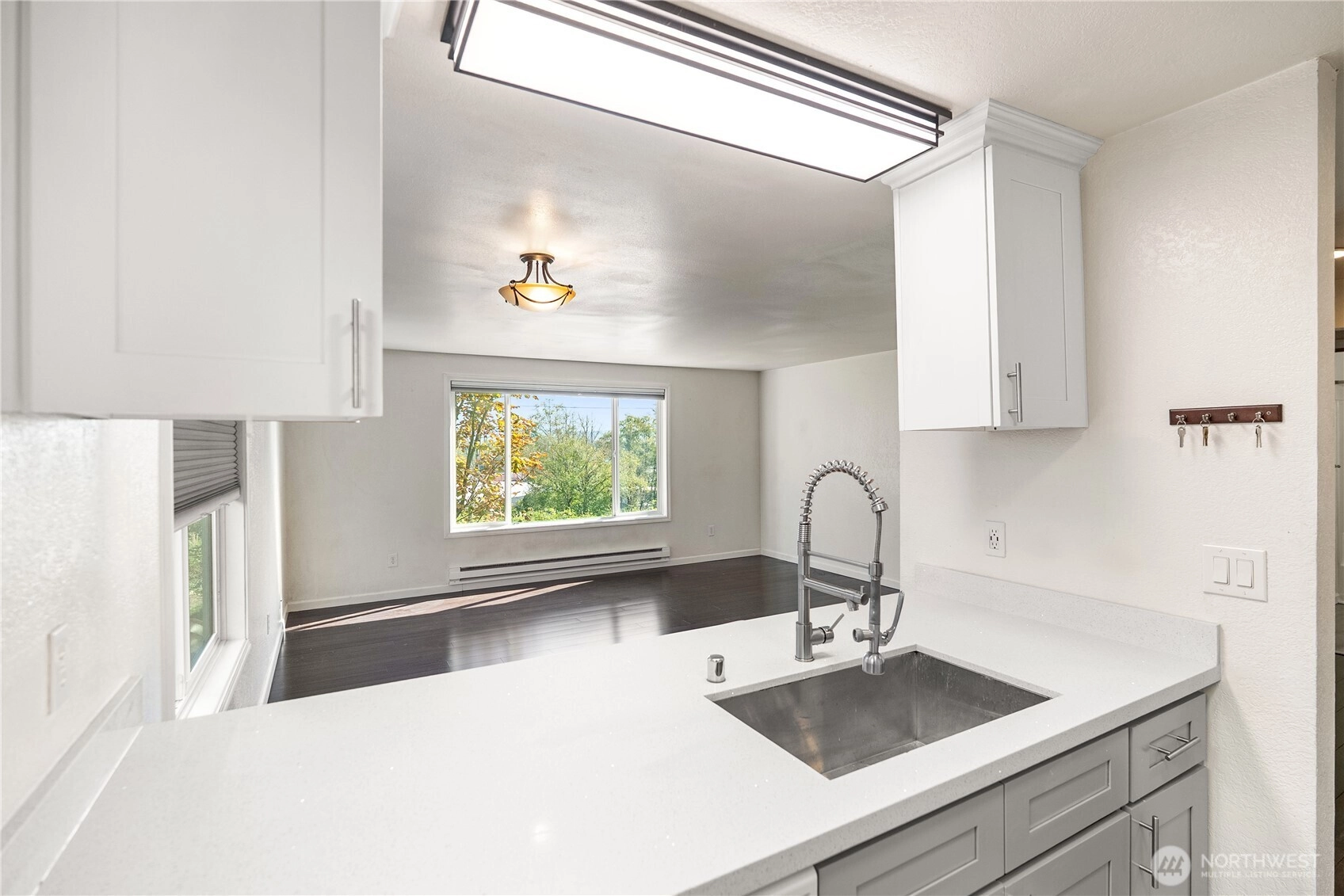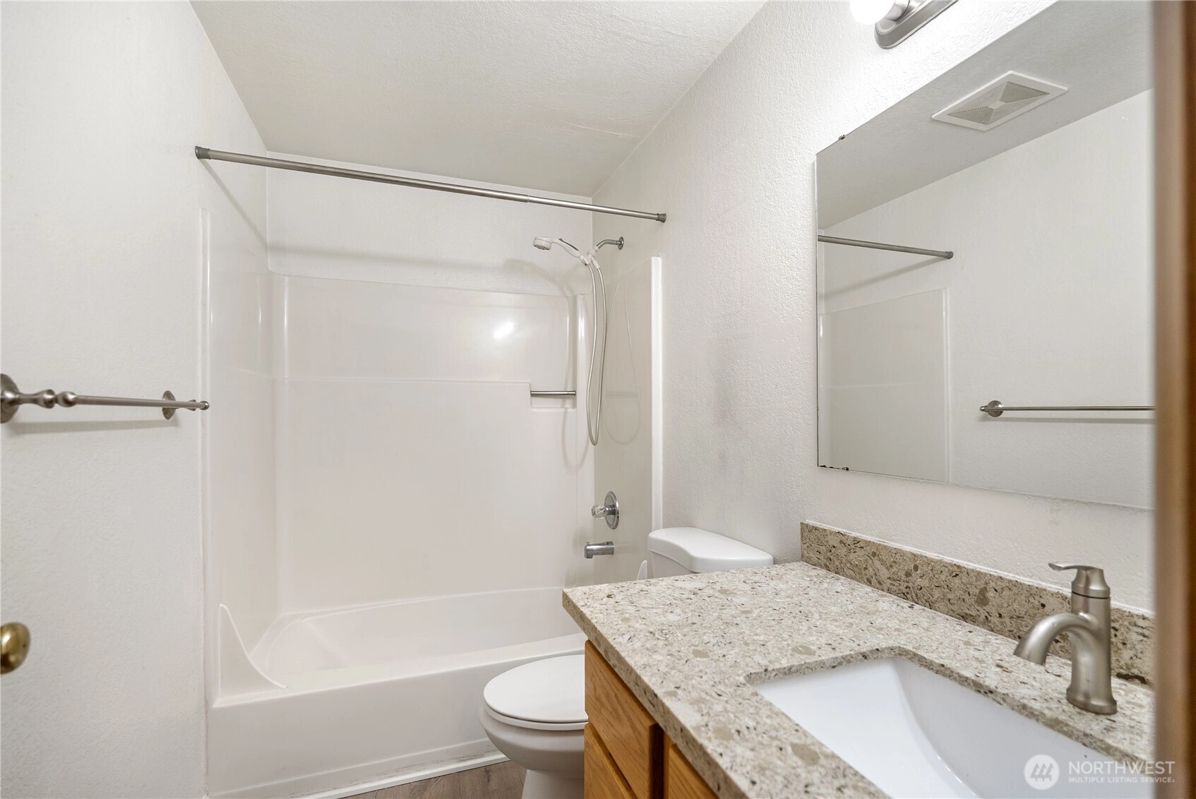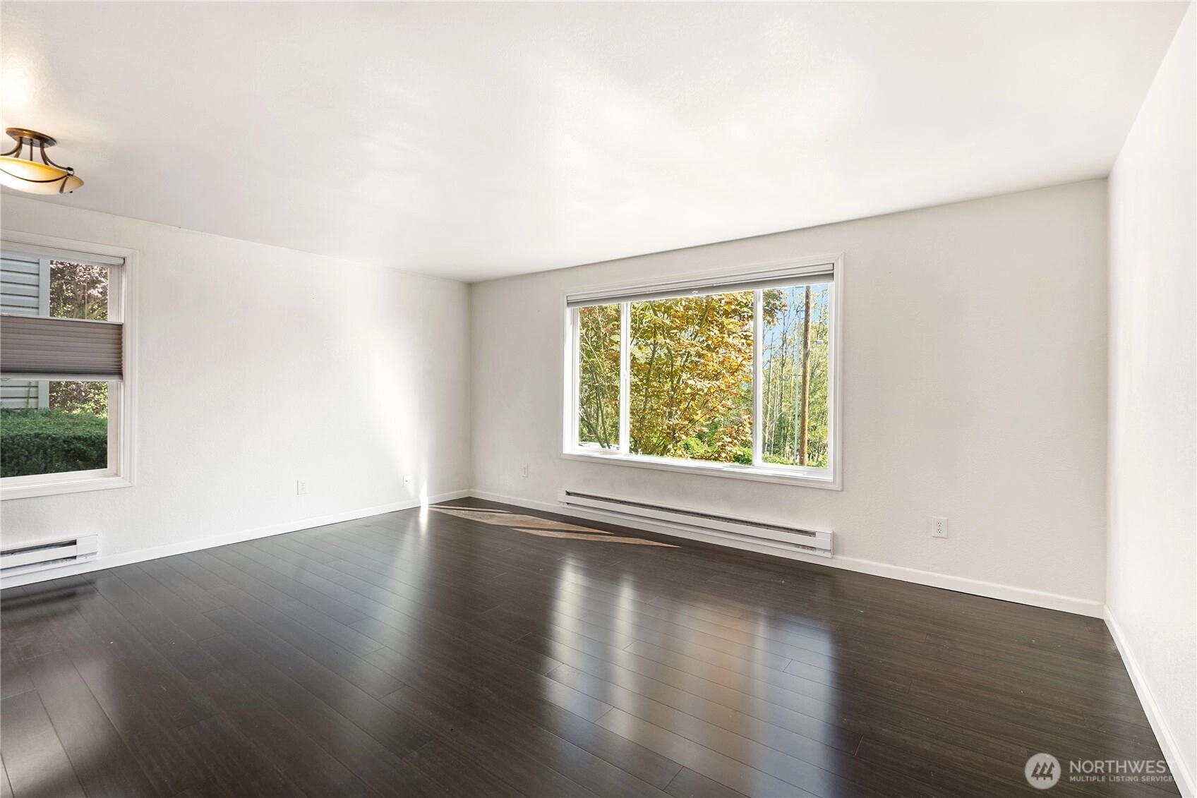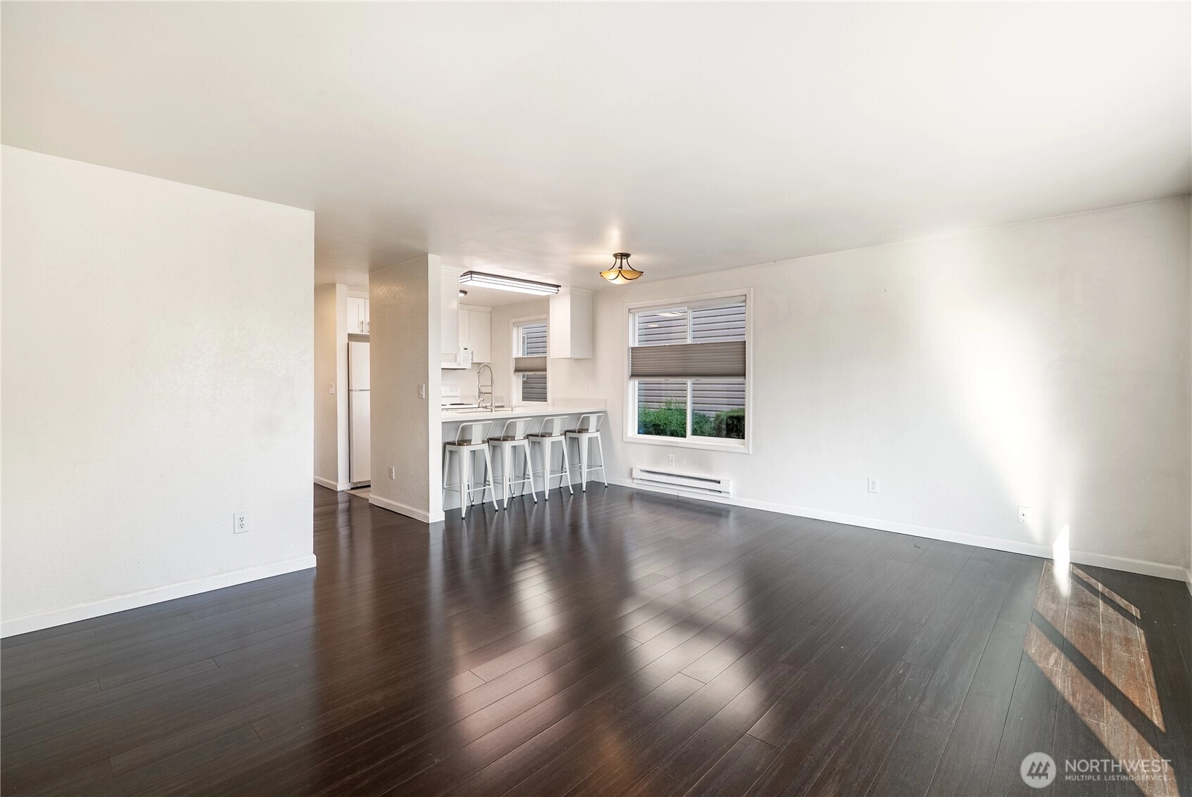 Bright and well-cared-for end-unit condo in North Everett with mountain views and beautiful sunrises. This 2-bedroom home offers an inviting eat-in kitchen, bamboo flooring, and washer/dryer hookups with appliances included. Reserved parking plus your own garage and driveway provide added convenience and storage. Enjoy the ease of nearby shopping, Everett Community College, Providence Hospital, and quick I-5 access. HOA covers water, sewer, garbage, landscaping, earthquake, and exterior insurance—low-maintenance living at its best. WELCOME HOME!