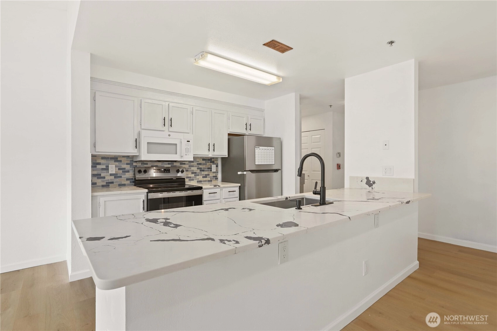 This beautifully updated, move-in-ready condo offers effortless one-level living with no stairs and a smart, open layout. Enjoy soaring vaulted ceilings, a cozy gas fireplace, and brand-new luxury vinyl plank flooring throughout. The kitchen has been renovated with quartz countertops, a stylish tile backsplash, and a deep stainless steel sink. The spacious primary suite features a private full bath and a second full bathroom for guests. Unit includes attached 1-car garage and convenient guest parking right out front. Located just minutes from freeways, shopping, dining, and everything Everett has to offer, this home combines comfort, style, and convenience. Don’t miss this one—schedule your showing today!