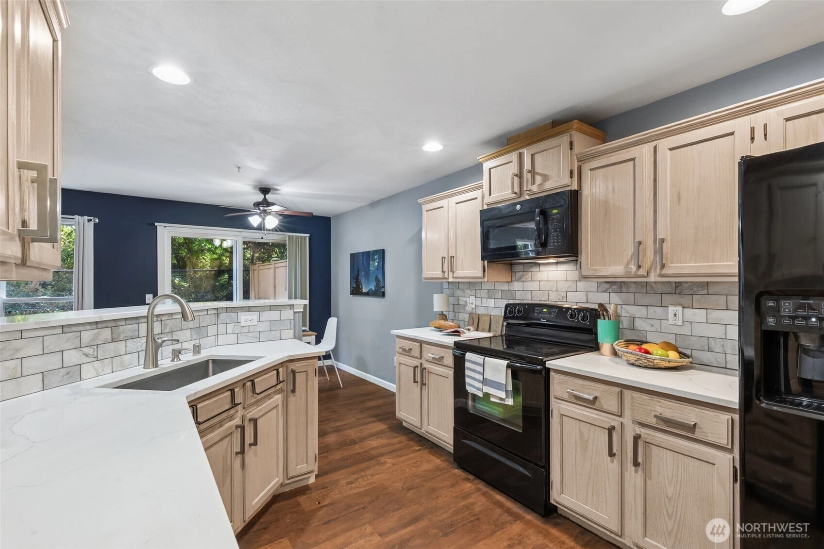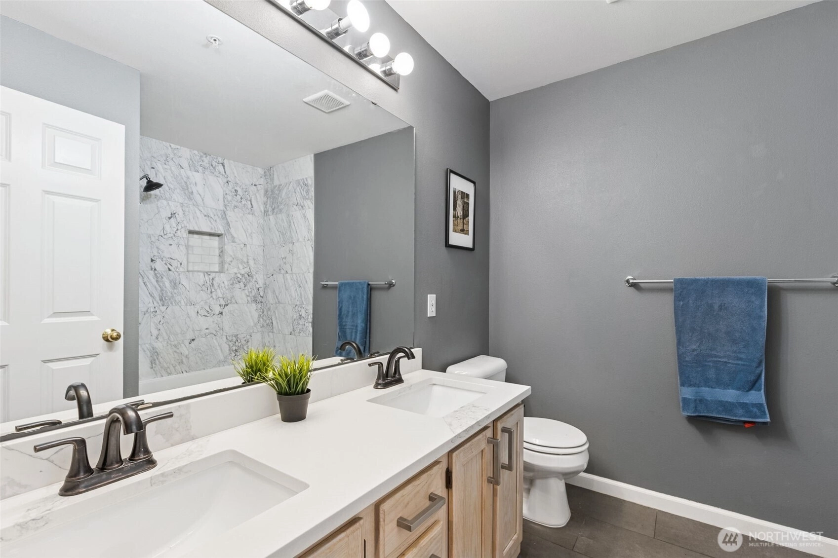 Somerset Park is the envy of all its neighbors and this large and gorgeous 3 bed 2.5 bath 1368 sf townhome is ready for its next owners to love it. New tile in the kitchen and bathrooms, new flooring, a private patio with fenced back yard, 1 year old gas fireplace, a full size 2 car garage with extra parking allowed in the driveway. Vaulted ceiling entry, a grand staircase leads to the upper level which features the primary suite plus 2 more bedrooms. Mukilteo Schools, close to Boeing and all commuting options. Located on a cul-de-sac, the pride of ownership and Care for neighbors are easy to spot throughout the gated community. Affordable HOA dues and new roofs in the last 6 years make this is the best buy you will ever make.