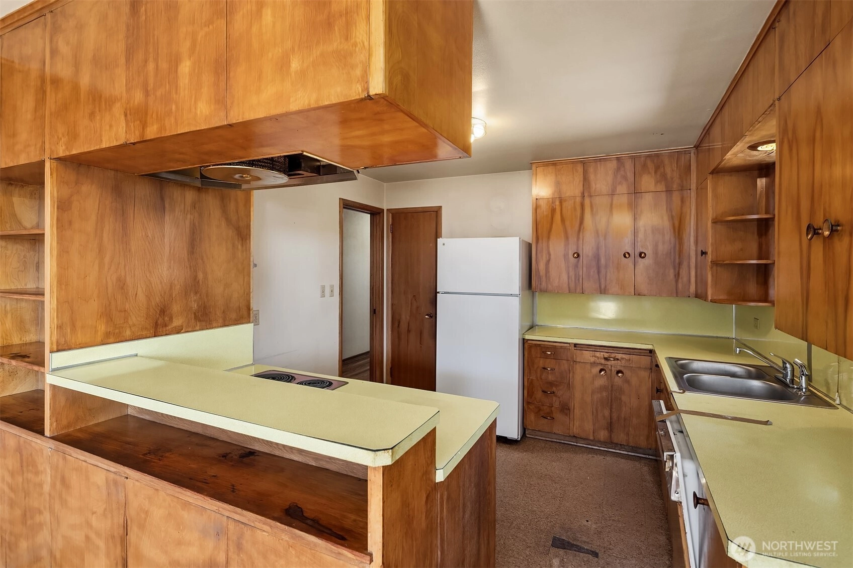 First time on the market in over 60 years! Fantastic, Edmonds Bowl location for this solidly built, brick mid-century modern home on a 7,405 sqft lot. Definitely a cosmetic fixer, but plenty of options available to remodel (go up for a fantastic sound & mountain view?), or a lovely spot for new beginnings. With over 2688 aprox sqft, the home, until recently, was a MIL/legal duplex w/ Main St. access for the upper & lower units. Lovely hardwood floors on the main, along w/ a fireplace with stone surround. Easy stroll to downtown's vibrant Frances Anderson Center, Civic Park, restaurants, cafes, shopping, beaches & arts scene. Detached 2-car garage + RV/car parking with convenient alley access. Commuting options include ferry, bus and train.