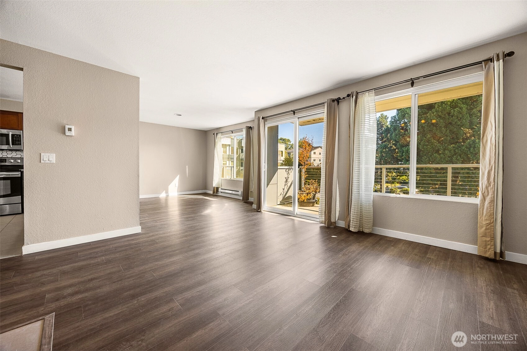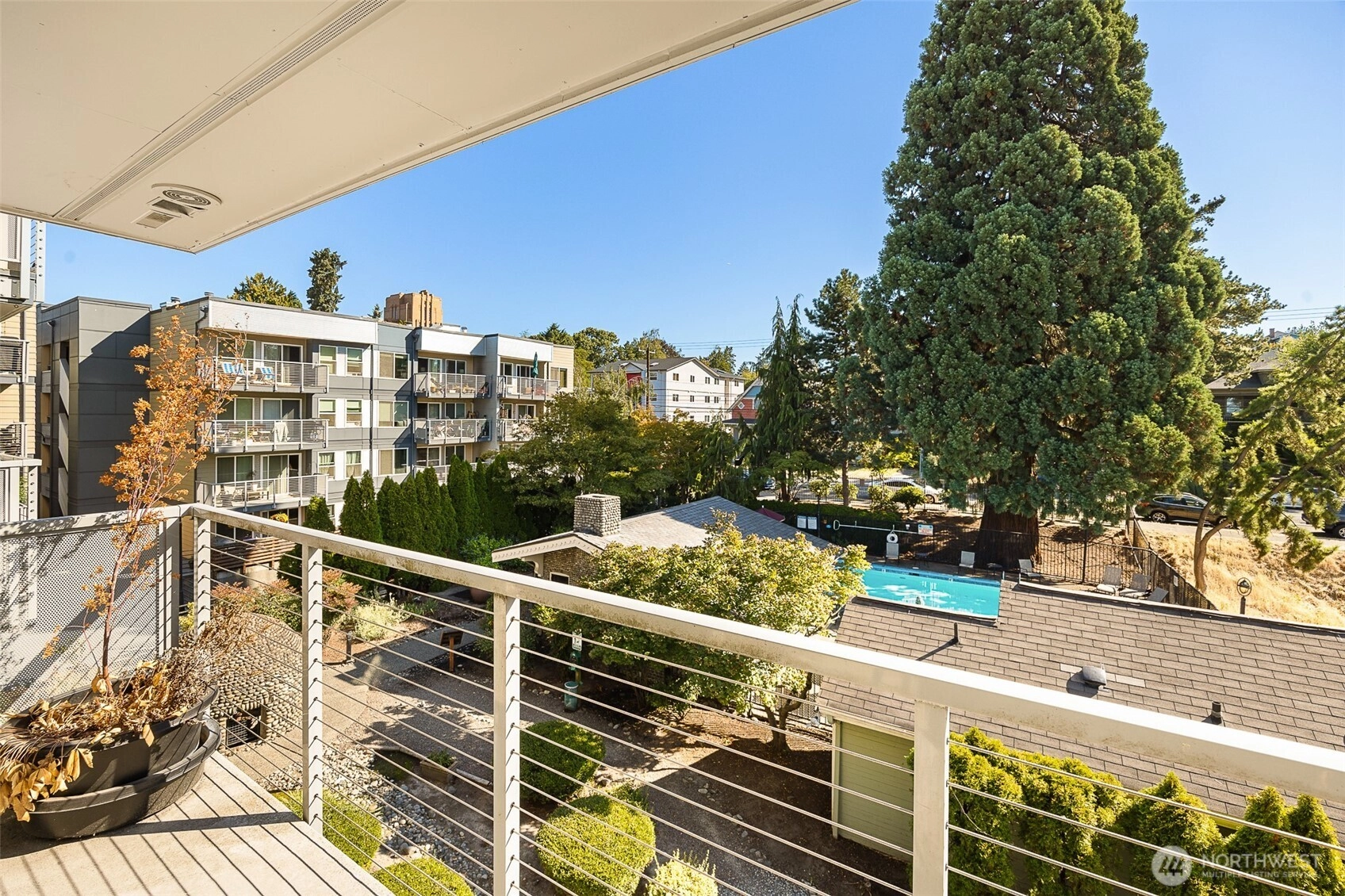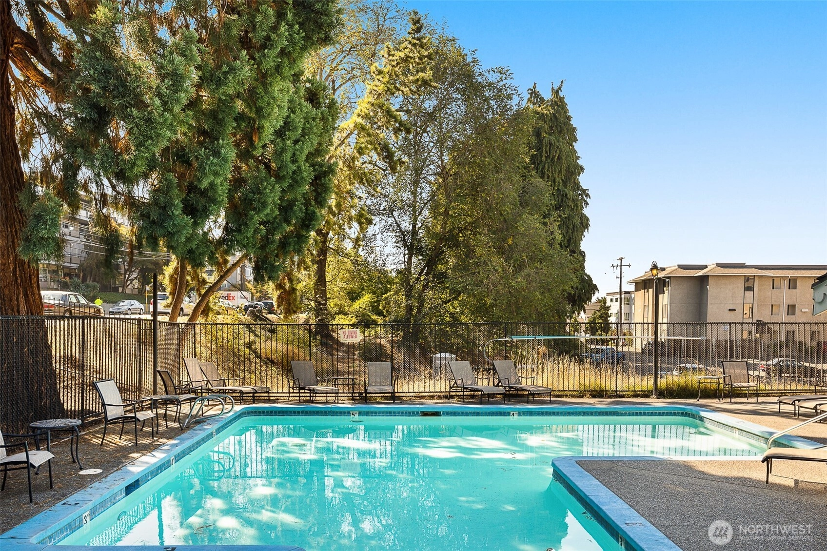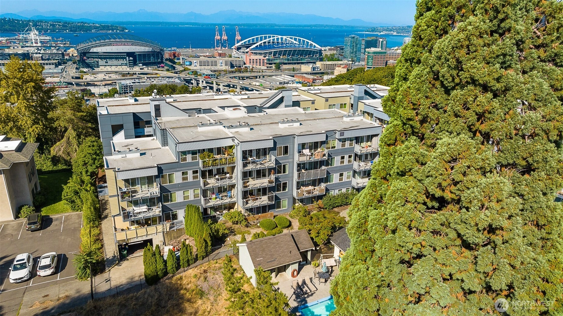 Brand New Luxury Vinyl Plank Floors! Welcome home to a charming two bedroom home located in the Harwood condominiums. This home features eastern exposures with territorial views of the area including the club house and swimming pool. Move-in ready spacious 2 bedroom condo with functional 931 sqft layout. Large living room has sliding glass door to the balcony, wood burning fireplace, kitchen w / breakfast bar, stainless steel appliances, and granite counters. Master bedroom w/ granite vanity sink and gracious walk-in closets. Secure garage parking, Clubhouse w/ pool and easy access to transit, trails and parks. Easy commute to Downtown, I-5, I405, Capitol Hill, Cherry Hill and International District.
