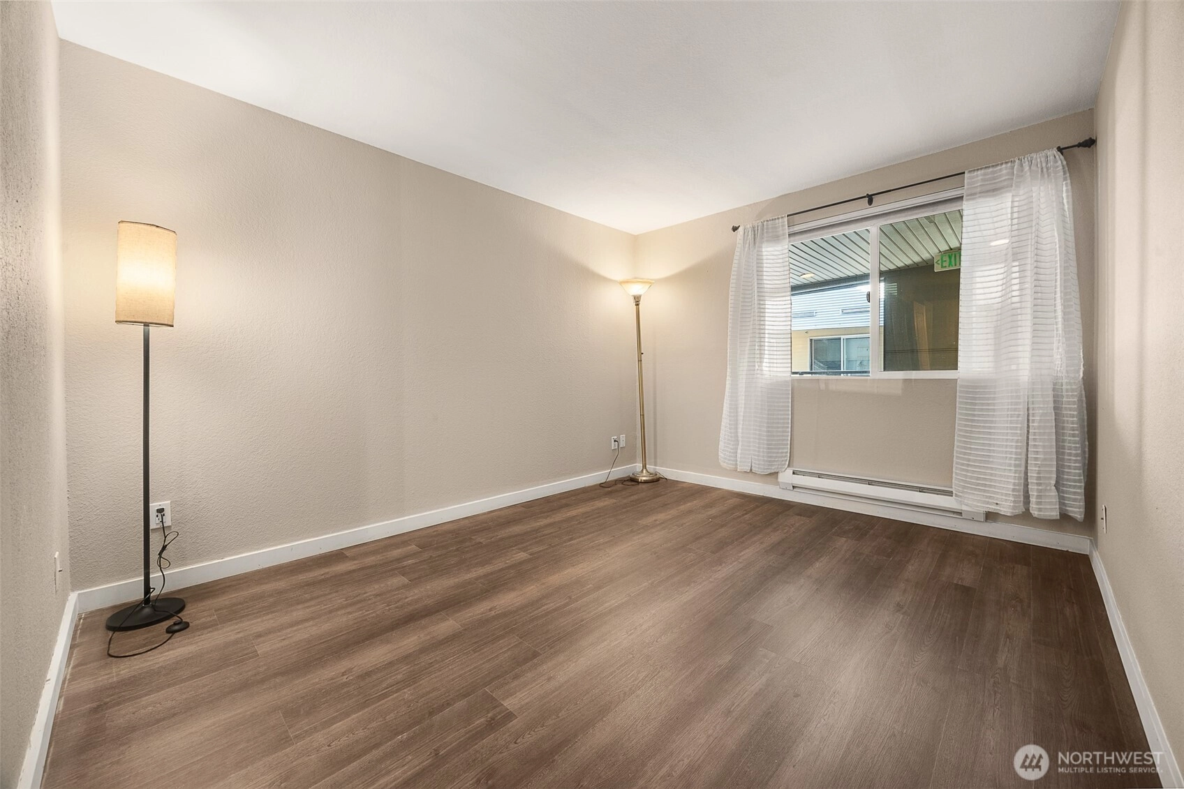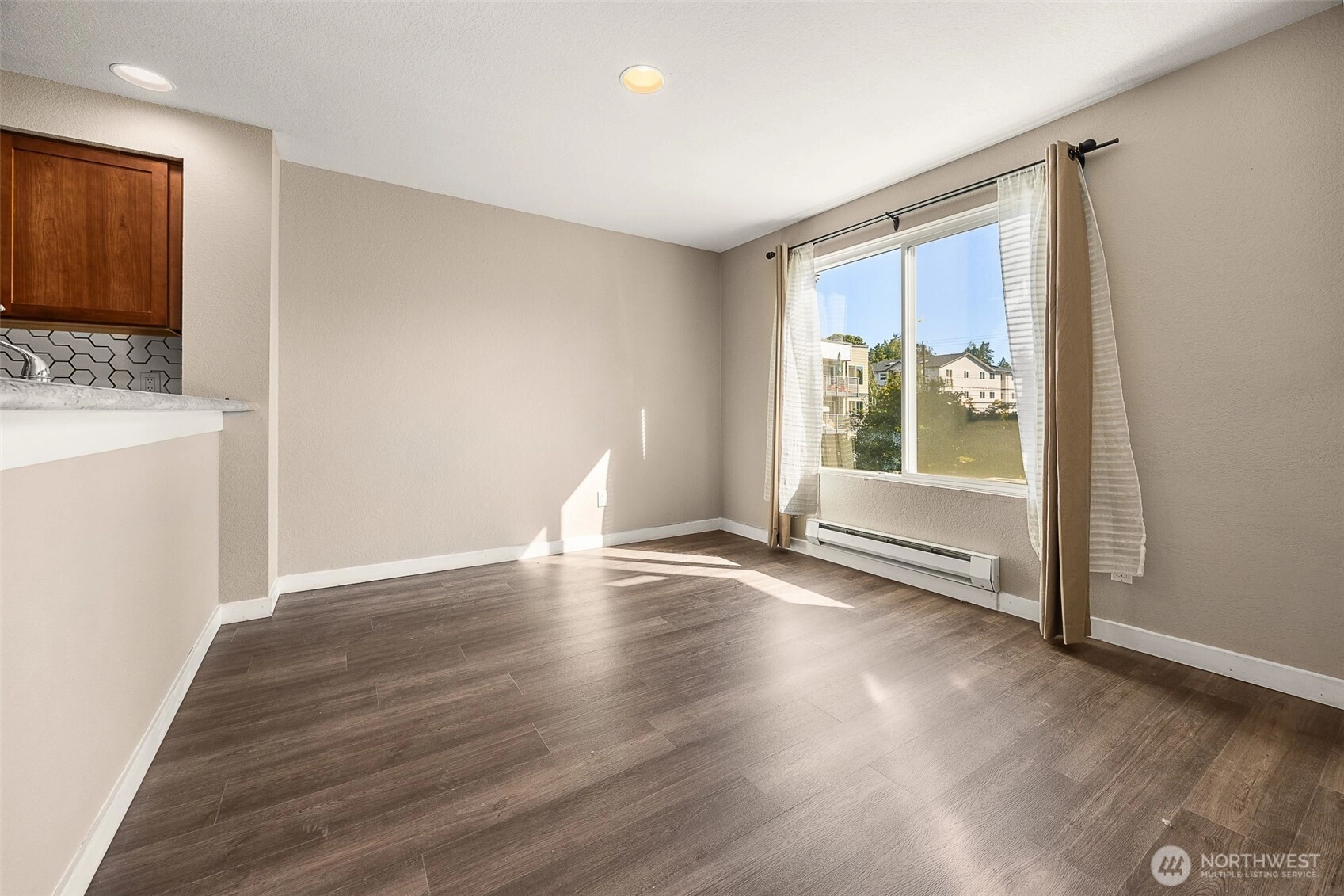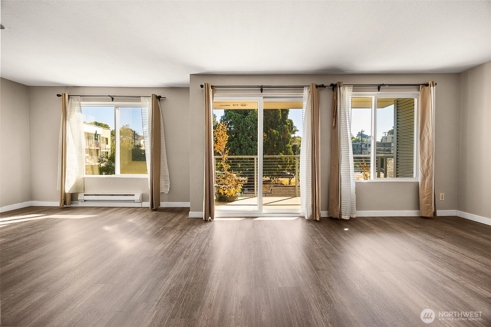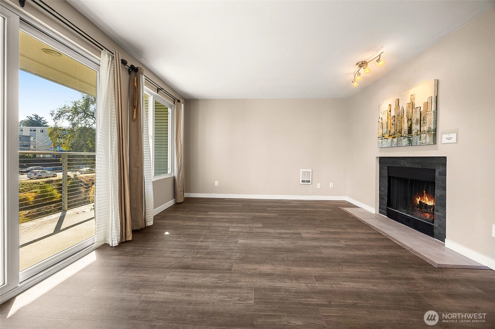 Brand New Luxury Vinyl Plank Floors! Welcome home to a charming two bedroom home located in the Harwood condominiums. This home features eastern exposures with territorial views of the area including the club house and swimming pool. Move-in ready spacious 2 bedroom condo with functional 931 sqft layout. Large living room has sliding glass door to the balcony, wood burning fireplace, kitchen w / breakfast bar, stainless steel appliances, and granite counters. Master bedroom w/ granite vanity sink and gracious walk-in closets. Secure garage parking, Clubhouse w/ pool and easy access to transit, trails and parks. Easy commute to Downtown, I-5, I405, Capitol Hill, Cherry Hill and International District.