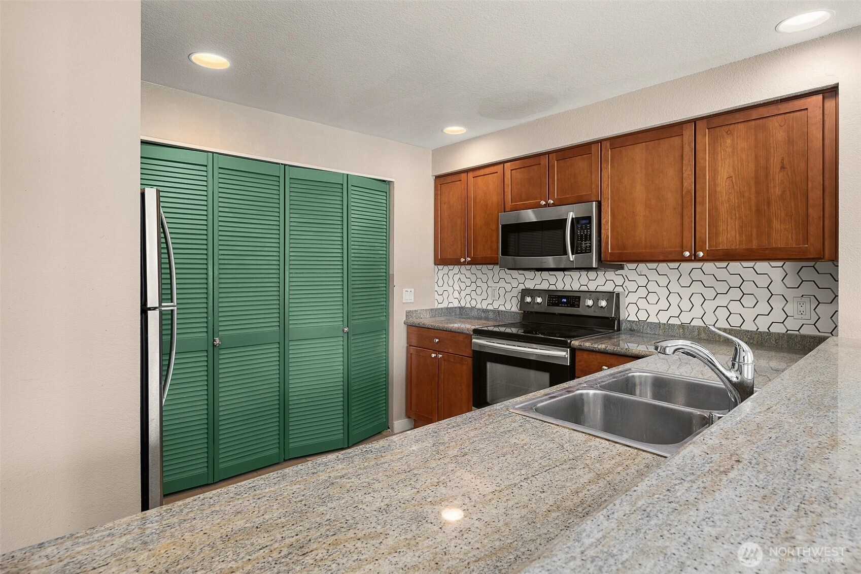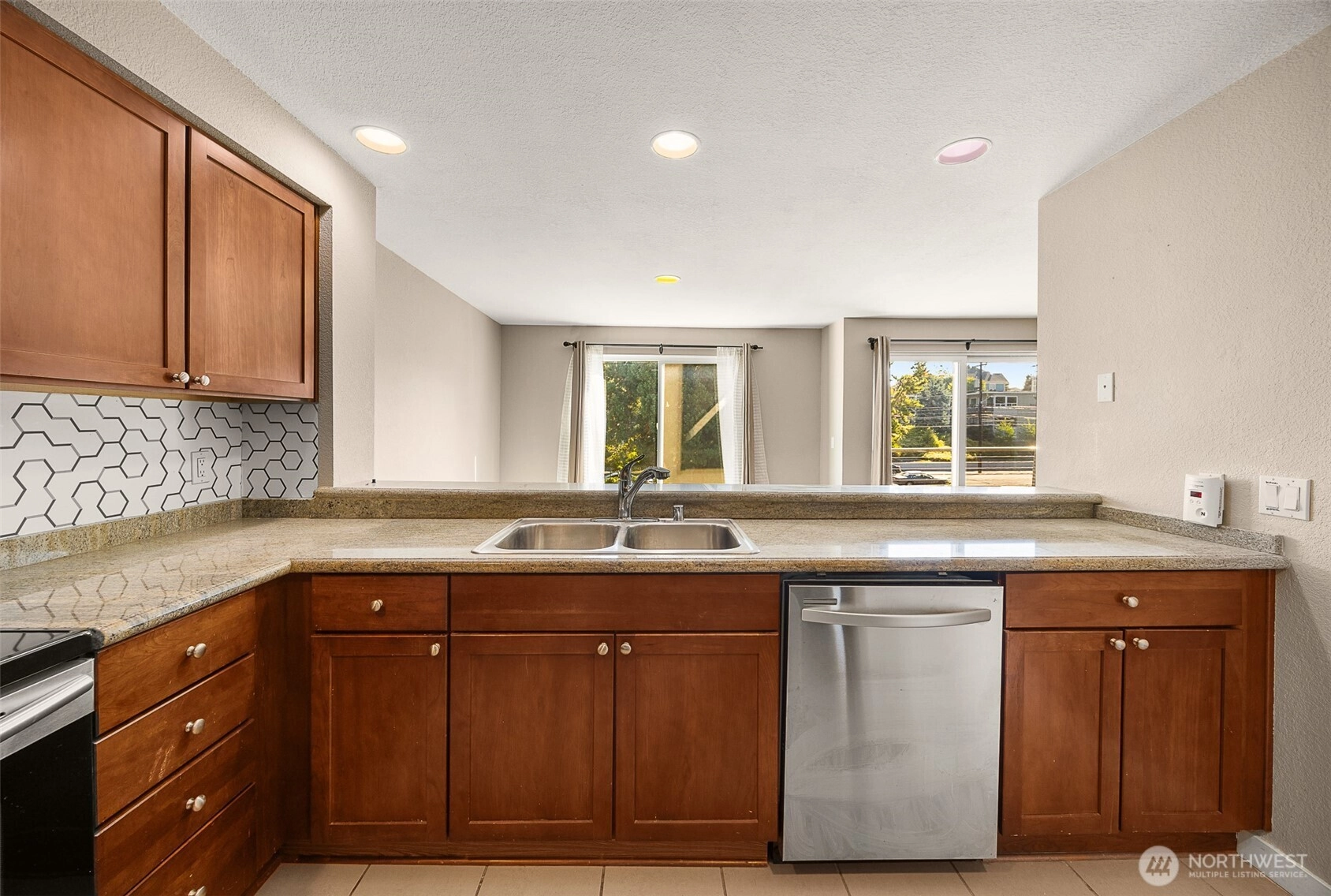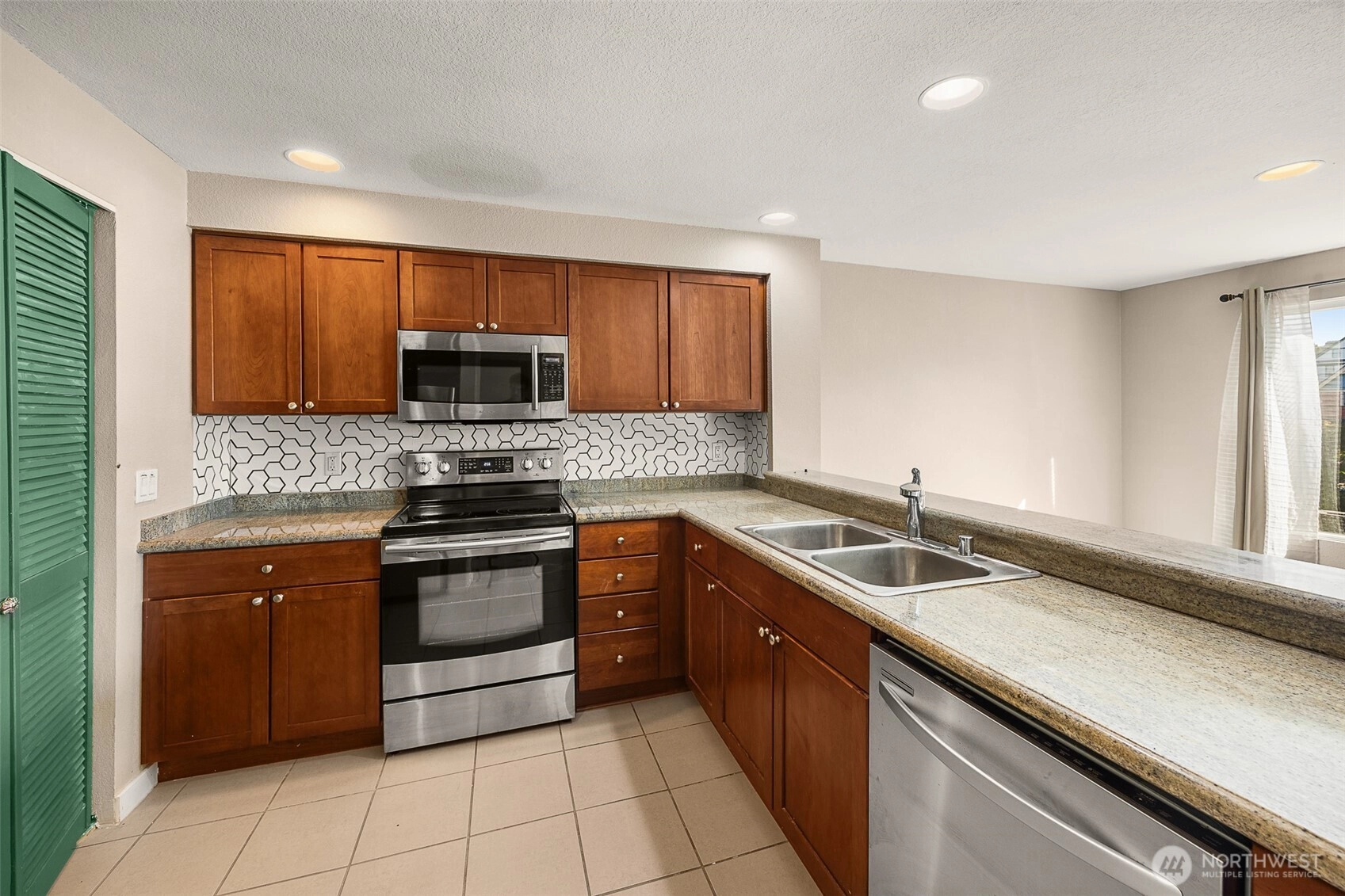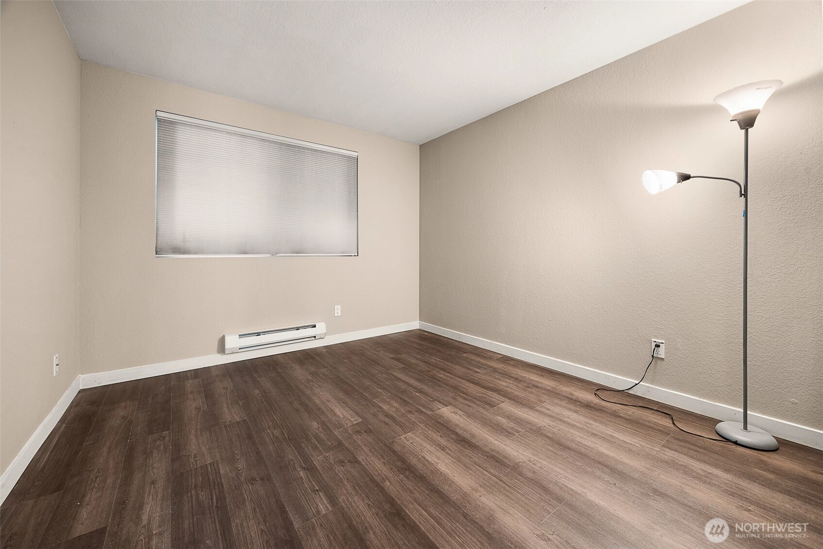 Brand New Luxury Vinyl Plank Floors! Welcome home to a charming two bedroom home located in the Harwood condominiums. This home features eastern exposures with territorial views of the area including the club house and swimming pool. Move-in ready spacious 2 bedroom condo with functional 931 sqft layout. Large living room has sliding glass door to the balcony, wood burning fireplace, kitchen w / breakfast bar, stainless steel appliances, and granite counters. Master bedroom w/ granite vanity sink and gracious walk-in closets. Secure garage parking, Clubhouse w/ pool and easy access to transit, trails and parks. Easy commute to Downtown, I-5, I405, Capitol Hill, Cherry Hill and International District.