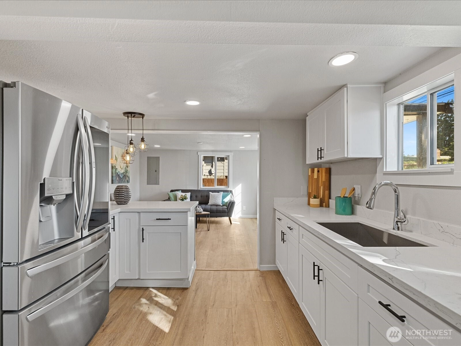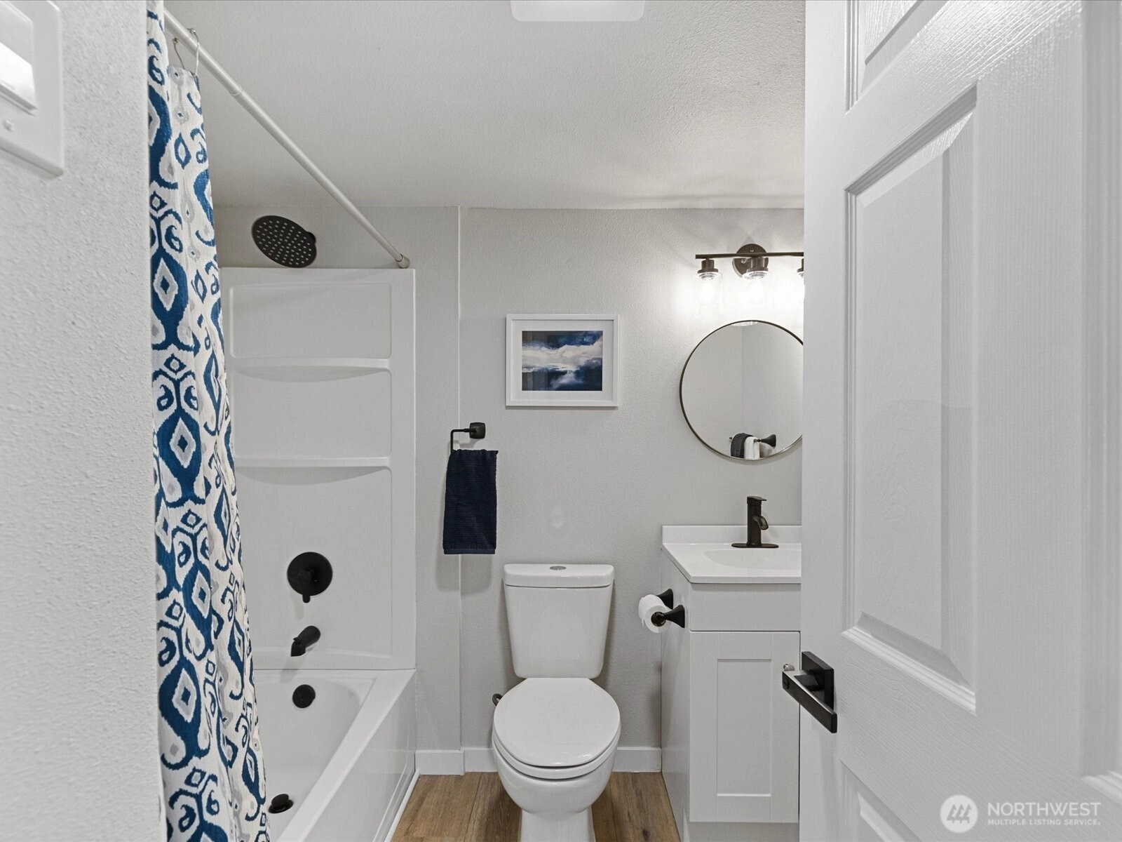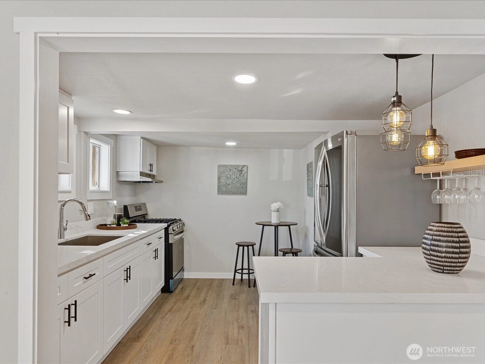Step inside this beautifully remodeled home featuring brand-new LVP flooring, custom cabinetry, sleek quartz countertops, and stainless steel appliances. Fresh interior paint and updated lighting create a bright, modern feel throughout. A convenient washer and dryer are included, making this home truly turn-key. Enjoy outdoor living on the spacious back deck—perfect for entertaining or relaxing evenings. Freshly laid sod enhances the curb appeal out front of your private yard. Ideally located near a park, with quick access to I-5, shopping, and dining, this home combines style, comfort, and convenience. Ask about the rate buy down for qualified buyers when using the preferred lender. Make this move in ready home yours today!