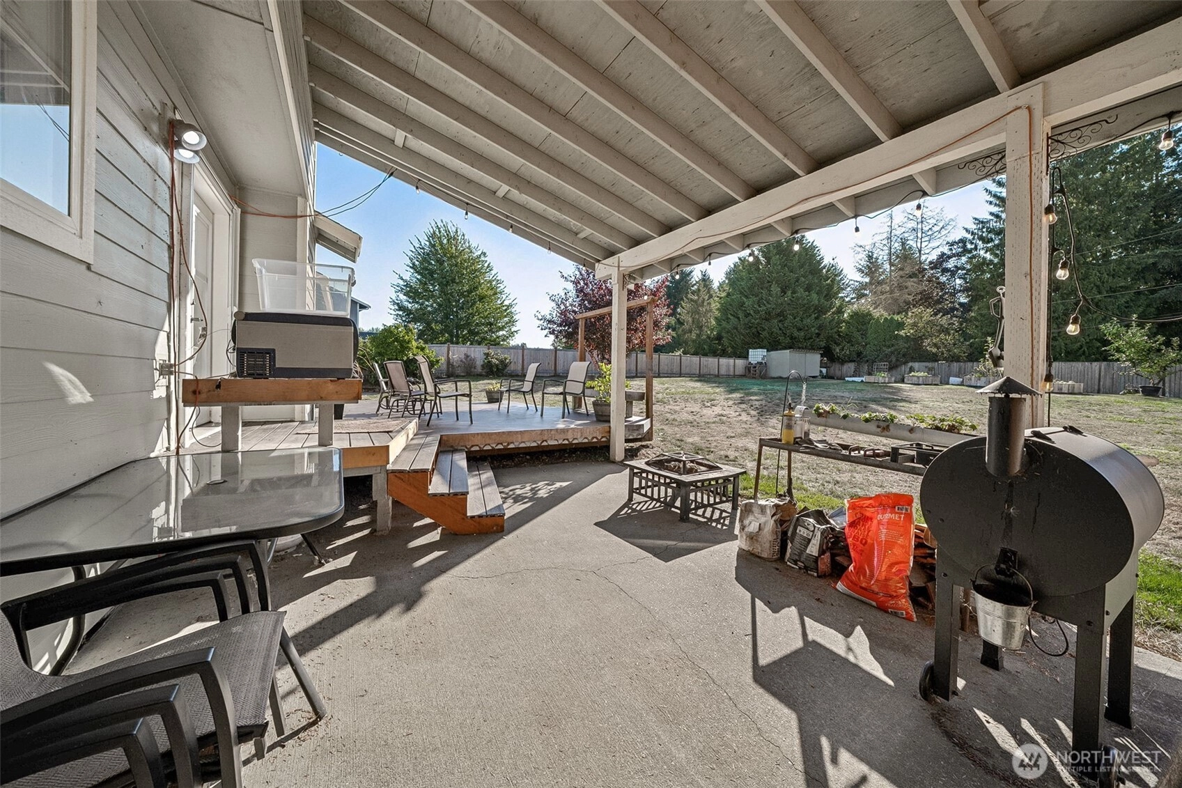In the gated community of Foothills Estates, this Amazing Home sits on a shy 1/2 acre lot & is a rare find! The fully fenced backyard features newer Trex Deck 2023, raised garden beds, covered patio, fruit trees, fire pit area, and lg outbuilding. Downstairs features a large family room w/gas FP, LVP, and French doors to the backyard. The kitchen features an eat in bar, SS fridge, and lg pantry w/flex space to use however you need. Upstairs features lg primary suite W/full bath, walk in closet +2 guest rooms, & full guest bath. 3-car garage features shop/hobby room + 220V electrical for elec car or generator. Only 2 blocks from Foothills Elementary, Centrally located near shopping, entertainment, dining + easy access to HWY 410 & 167