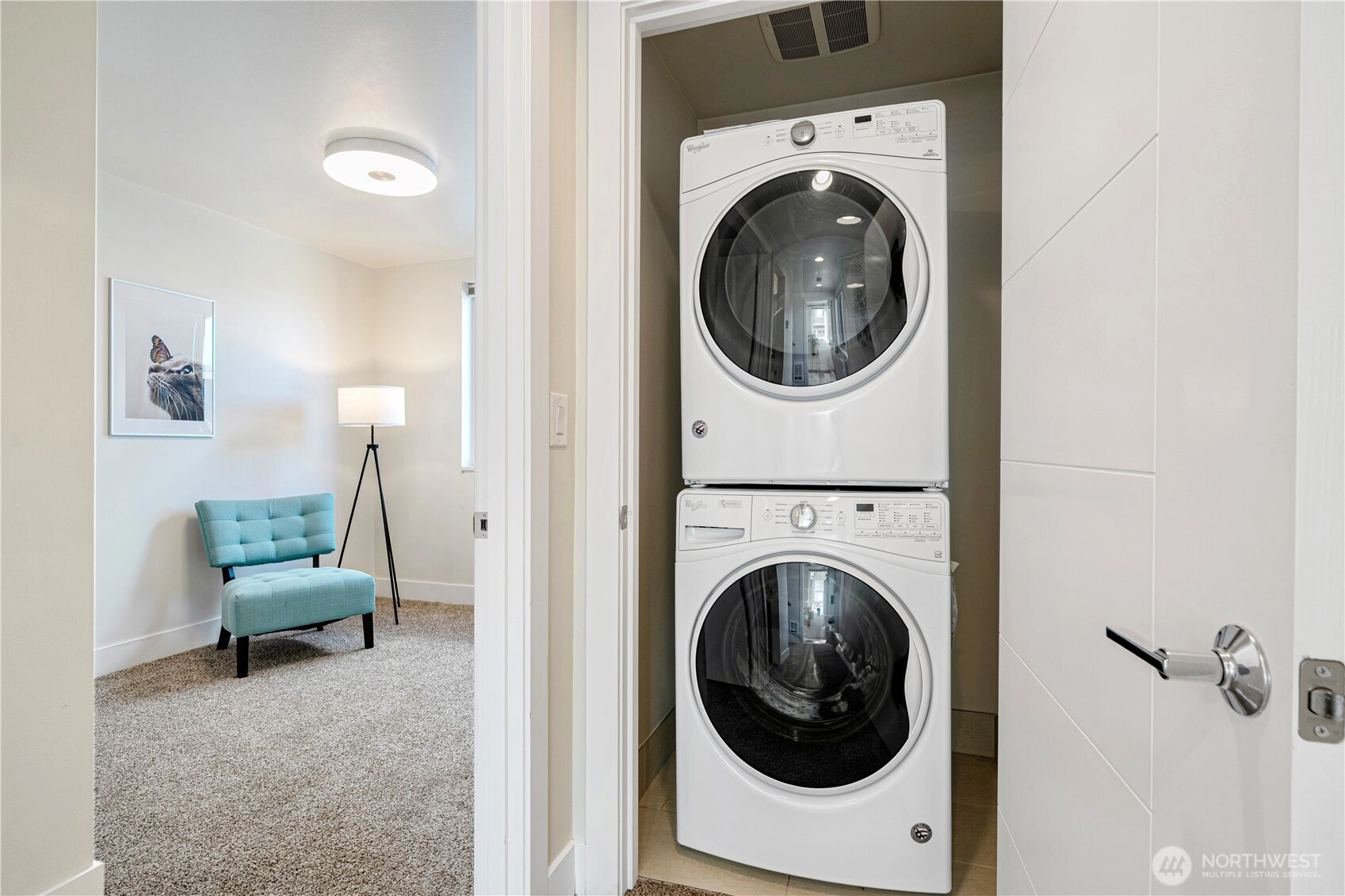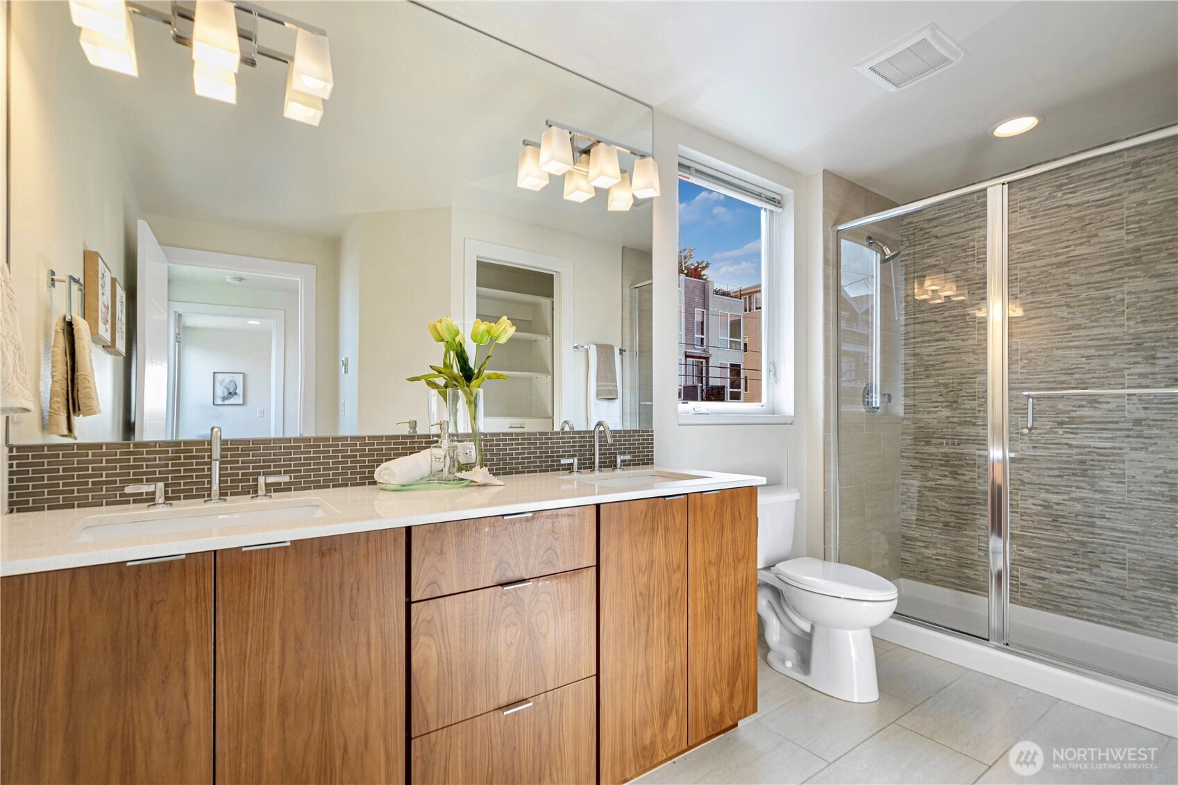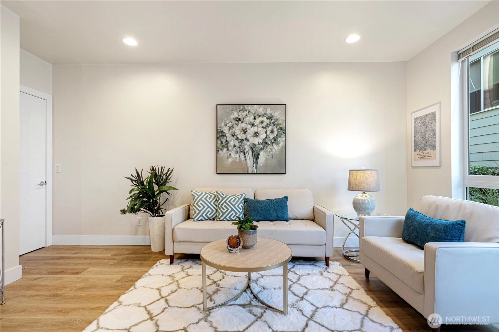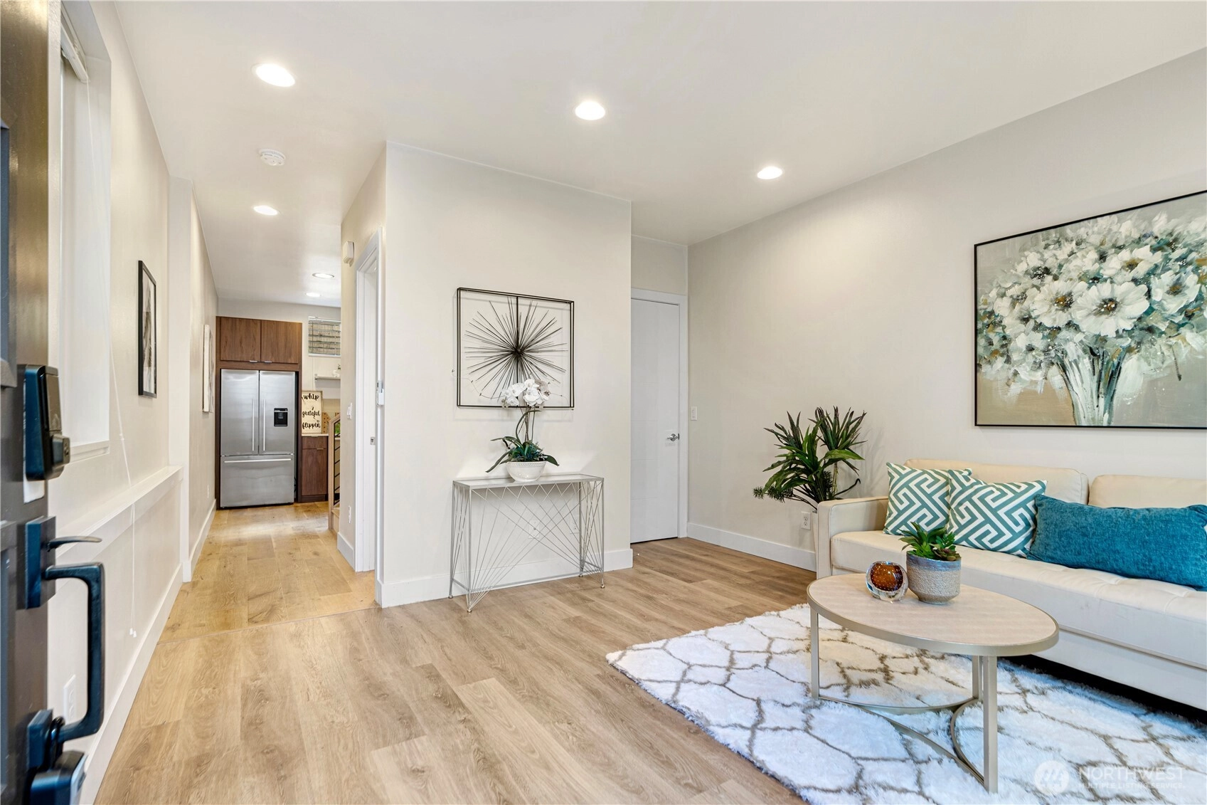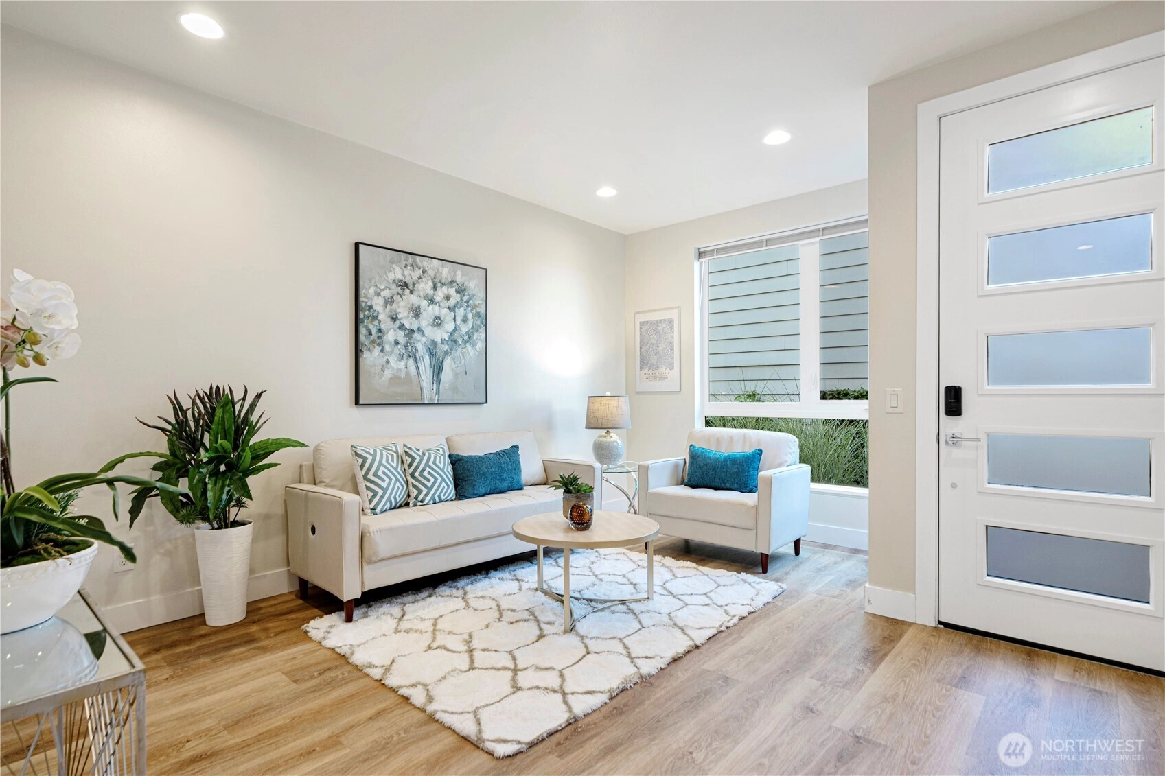 Welcome to this serene end-unit residence, crafted by Murray Franklin and boasting stunning views of Lake Union and the downtown skyline. The primary bedroom offers beautiful views of the scenery in the distance. Ideally situated in the sought-after Eastlake neighborhood, this home offers quick access to Downtown Seattle, the University of Washington, I-5, and Highway 520. It complemented by brand-new carpeting and fresh interior paint. The primary suite includes a walk-in closet for added convenience. A dedicated parking space is provided in the rear alley. Built by Berkshire Hathaway in 2017 and never before offered on the market, this well-maintained home is being sold "As Is."