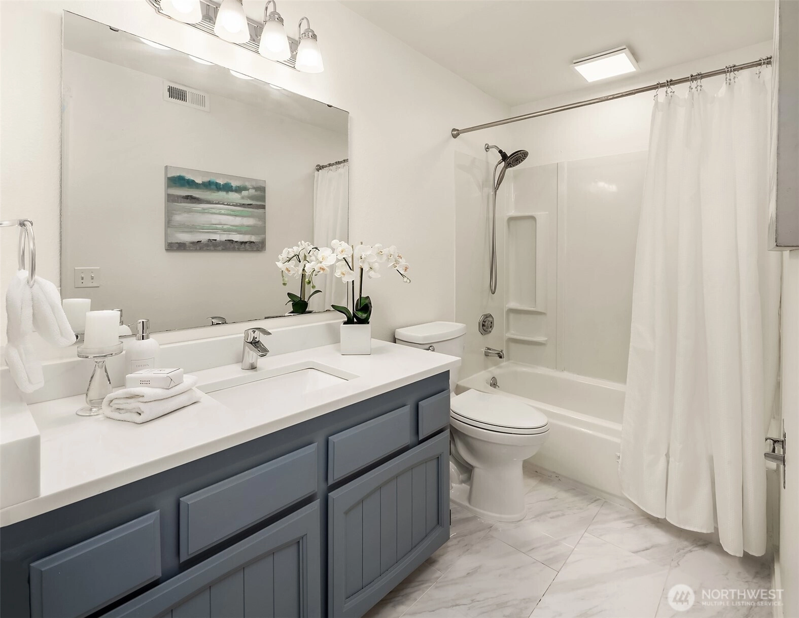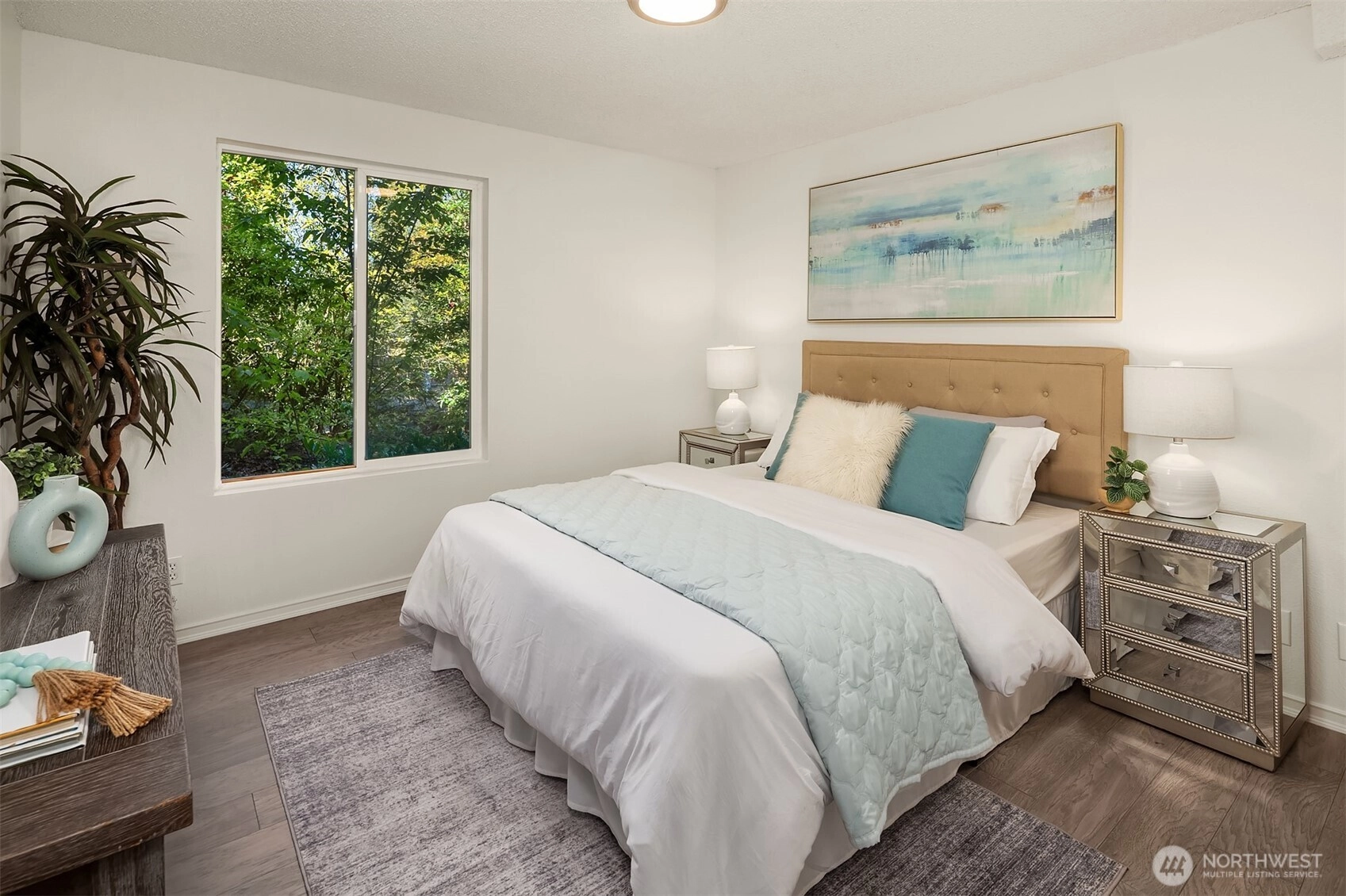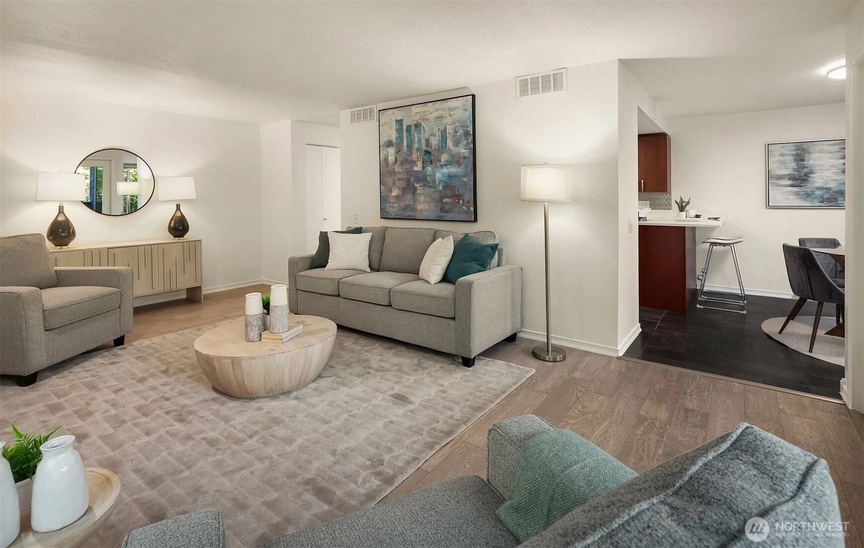 Welcome to effortless condo living in the heart of Shoreline. Recently updated & freshly painted this 2-bedroom condo sits in a vibrant, amenity-rich community. An inviting living room centers around a stone fireplace & flows to a covered deck for year-round use. The remodeled kitchen with SS appliances & breakfast bar anchors the main living space, while the primary suite features a spa-like ensuite with heated floors. The 2nd bedroom offers flexible use for guests, office, or hobbies. Enjoy the ease of in-unit laundry, ample storage, & a well-run HOA offering: sauna, community p-patch, + dedicated covered parking. With easy access to downtown, transit, & Shoreline’s parks + amenities, this condo blends comfort, convenience, & community.