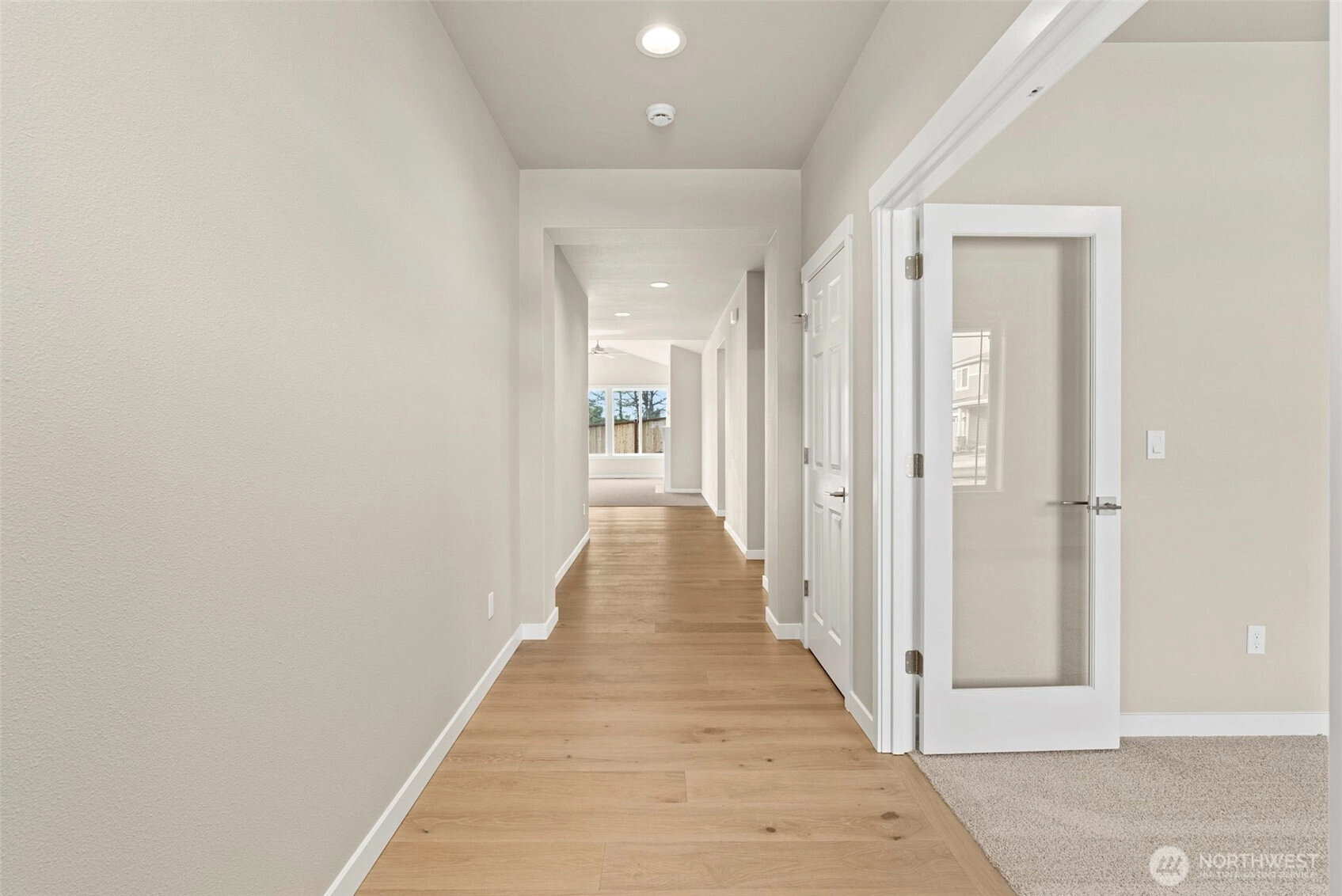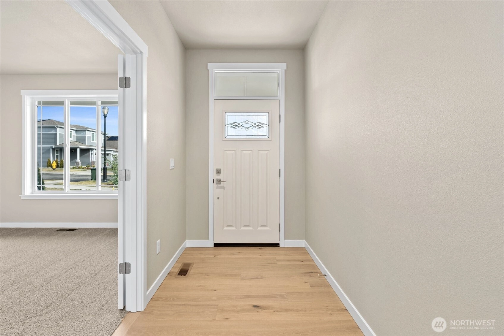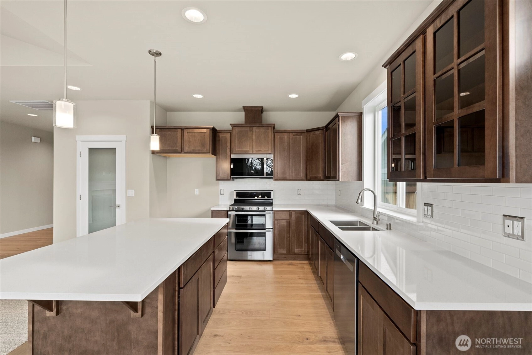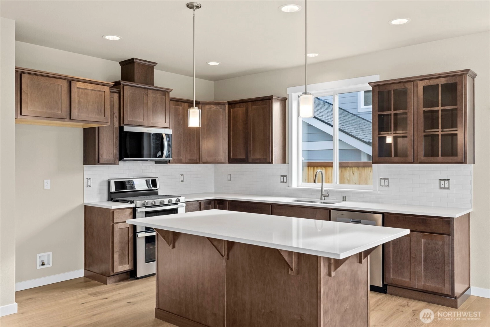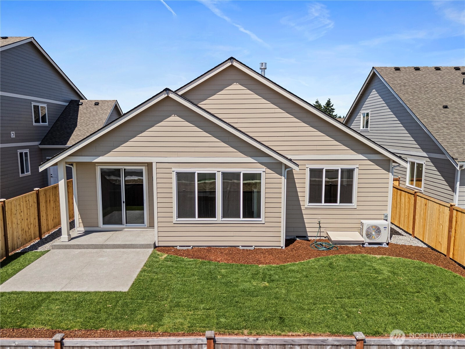 Under construction, est. completion Nov. 2025. Discover The Hemlock, a thoughtfully designed rambler that spans 1,856 sf, featuring 3 beds & 2 baths. An open great room seamlessly connects to kitchen calling attention to the Cocoa-stained Maple cabinetry w/soft close drawers & full extension guides & accent backsplash. SS appliances include a double gas oven, dishwasher & microwave. Designer details include pendant lights, hardwood flooring, & French doors. Primary suite w/5-piece bath, tile flooring & tub surround. Quartz countertops throughout. Fully fenced & landscaped. Energy-efficient features including a heat pump, solar panels, & an electric hybrid water heater Photos virtually staged or of a previously built home w/similar finish.