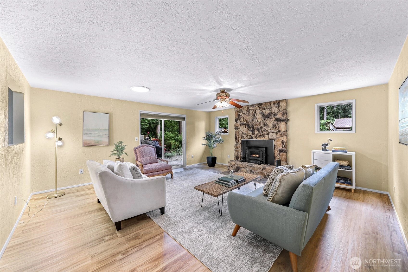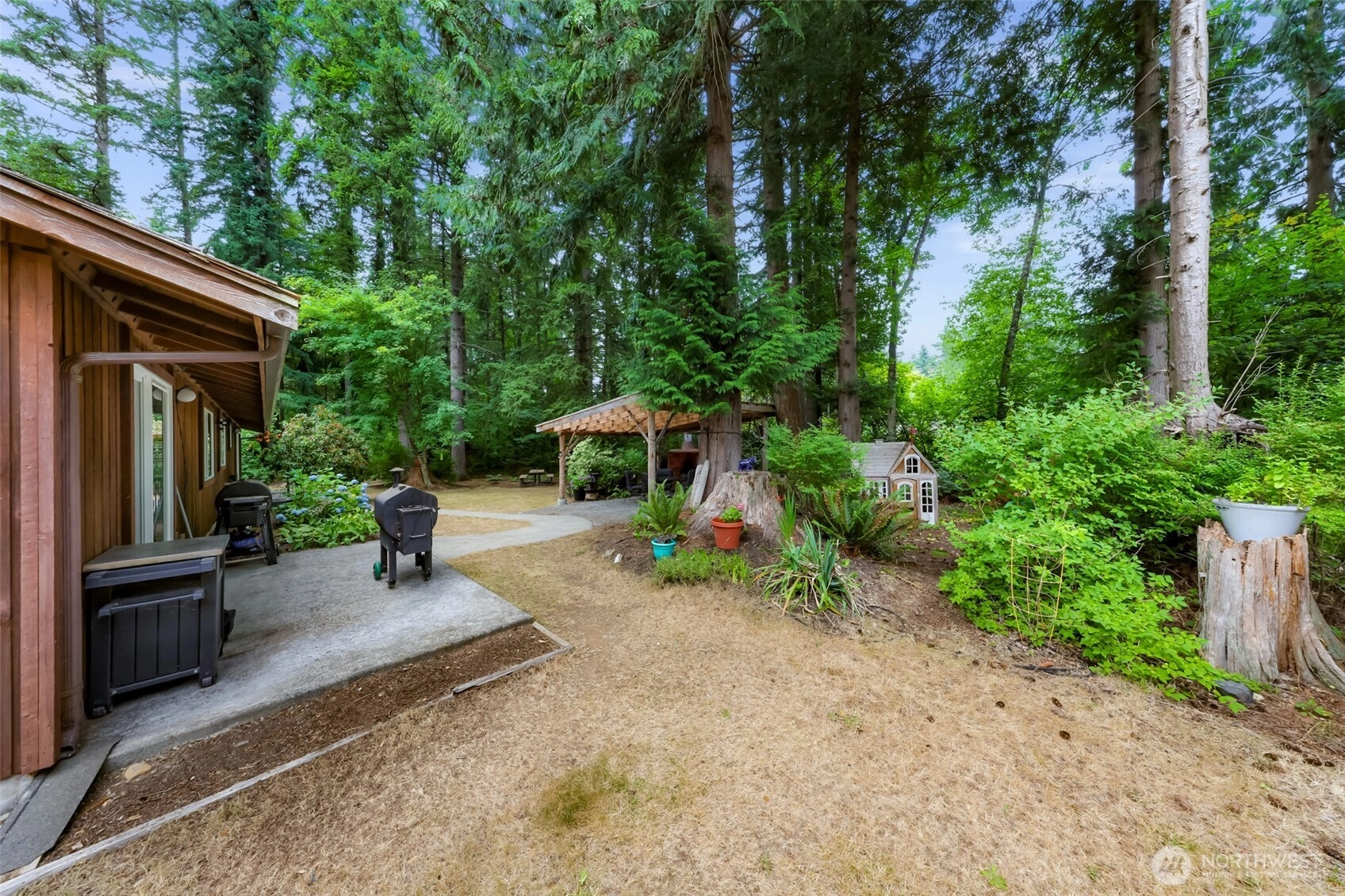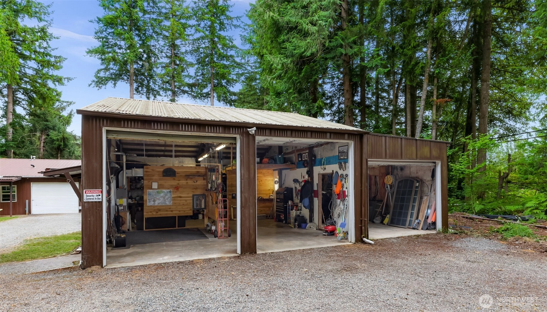 Incredible park-like setting with two shops on 1.3 usable acres! The 1,600 sqft single level main home features 3 beds, 2 baths, living & family rooms, brand new luxury vinyl plank throughout & new carpet in the bedrooms. Open concept kitchen and dining, new windows, cozy woodburning stove, heat pump & AC. A large mudroom walks out to the attached 2-car garage. The general purpose building is 720 sqft with 2 beds, 1 bath, and its own 2-car garage. The property also includes a private patio, covered outdoor space, picnic area, a 30x48 3-bay shop & covered RV/boat parking for more income potential. Prime location between Burlington and Bellingham and absolutely turnkey.