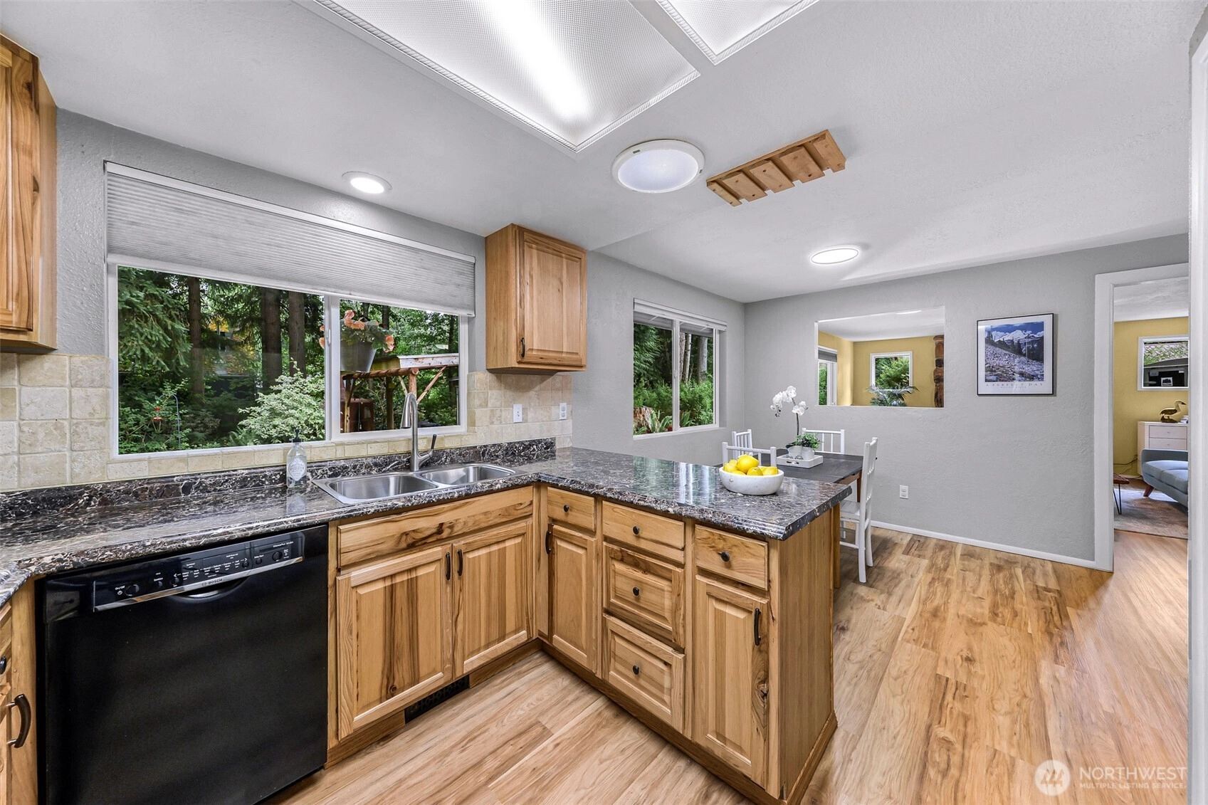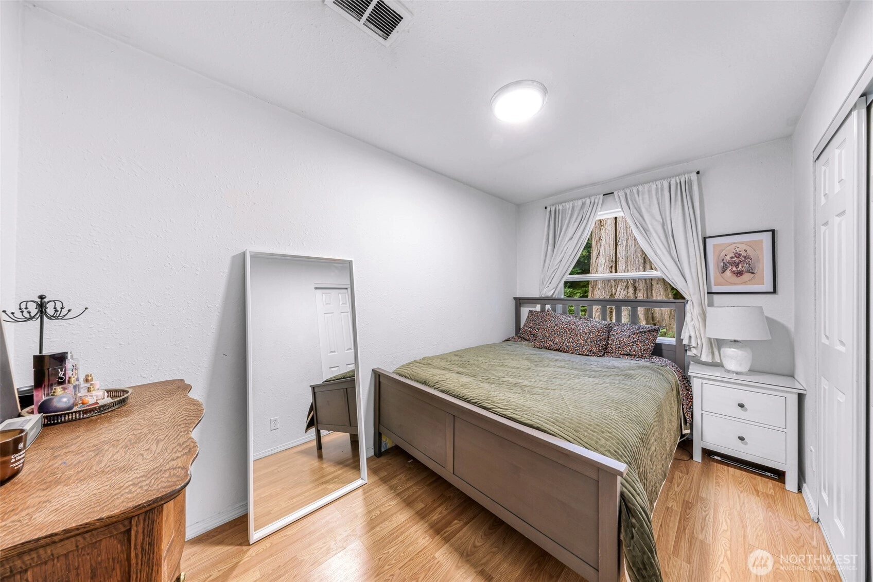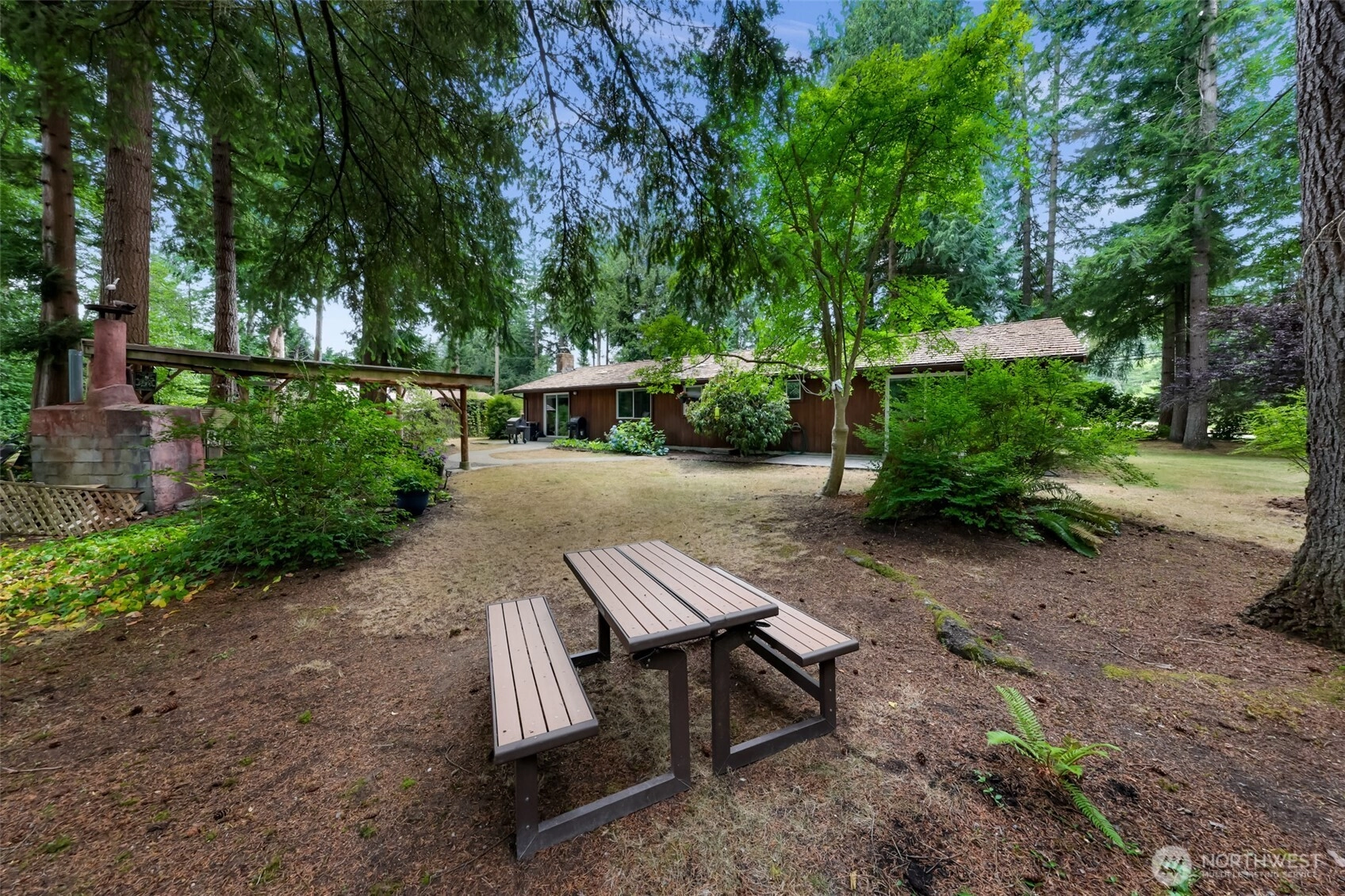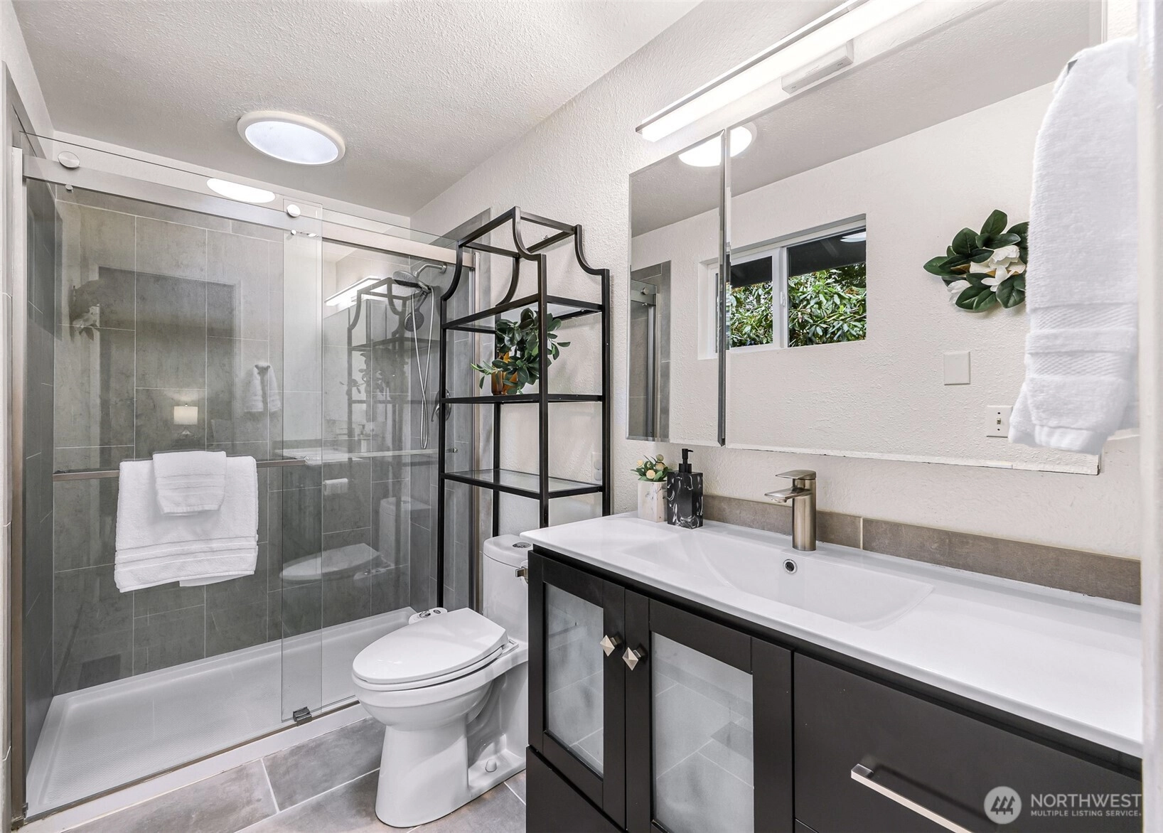 Incredible park-like setting with two shops on 1.3 usable acres! The 1,600 sqft single level main home features 3 beds, 2 baths, living & family rooms, brand new luxury vinyl plank throughout & new carpet in the bedrooms. Open concept kitchen and dining, new windows, cozy woodburning stove, heat pump & AC. A large mudroom walks out to the attached 2-car garage. The general purpose building is 720 sqft with 2 beds, 1 bath, and its own 2-car garage. The property also includes a private patio, covered outdoor space, picnic area, a 30x48 3-bay shop & covered RV/boat parking for more income potential. Prime location between Burlington and Bellingham and absolutely turnkey.