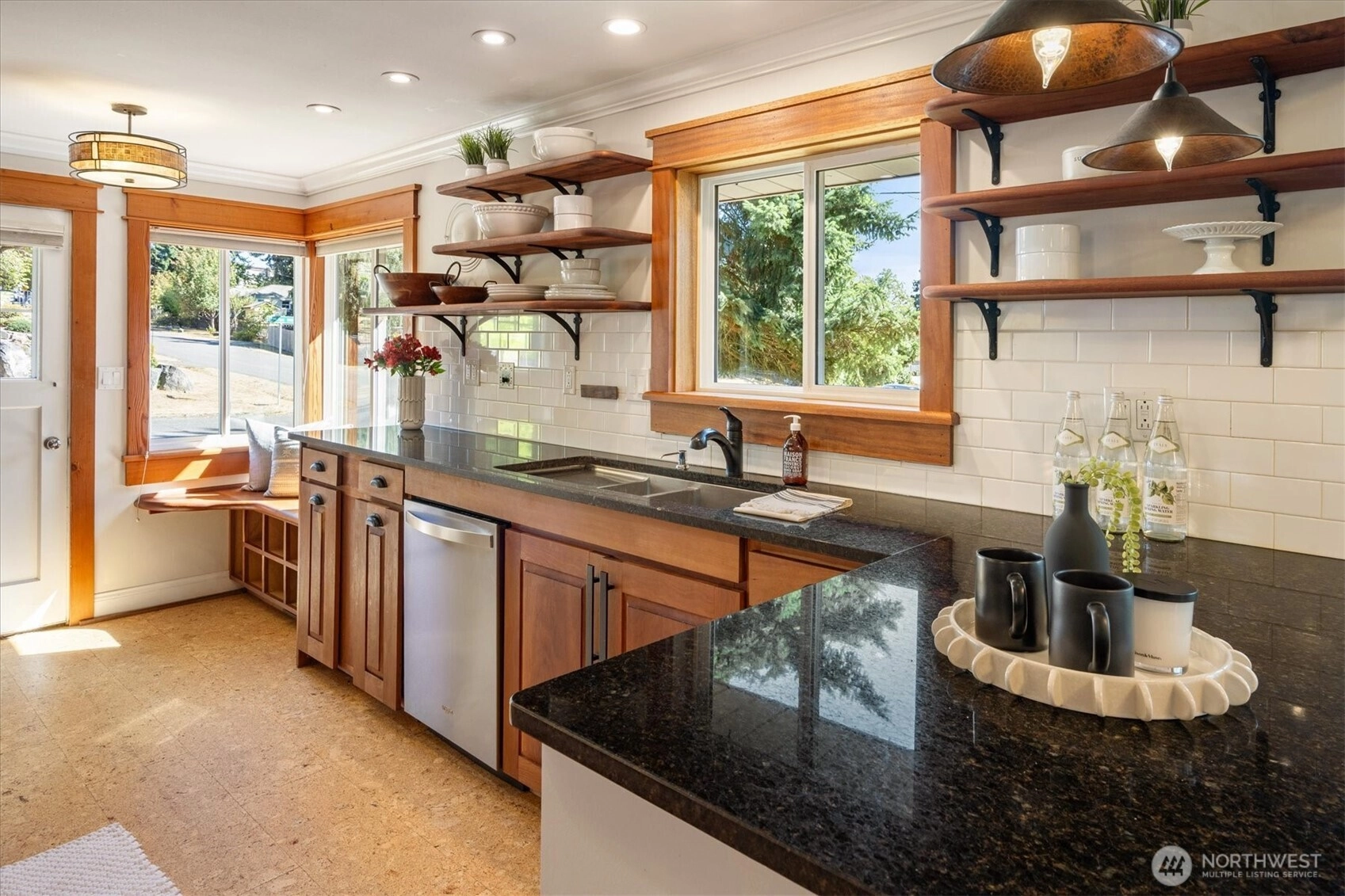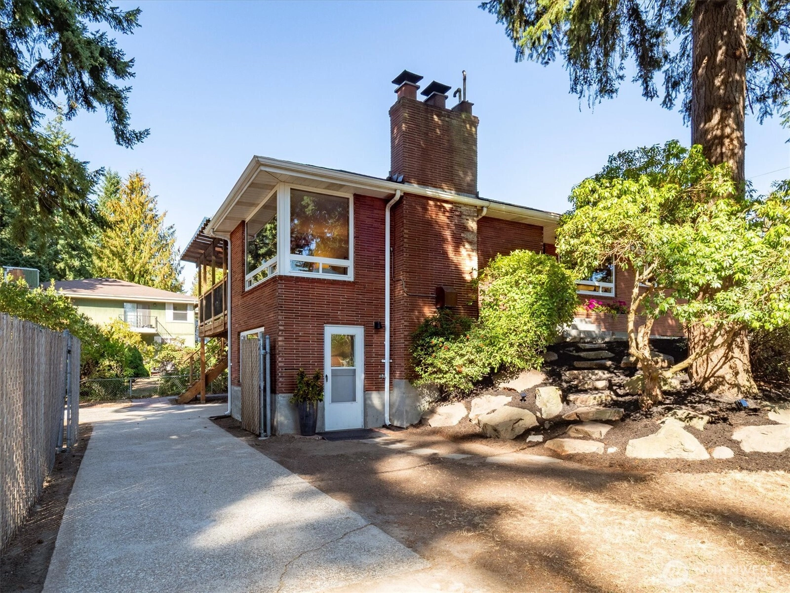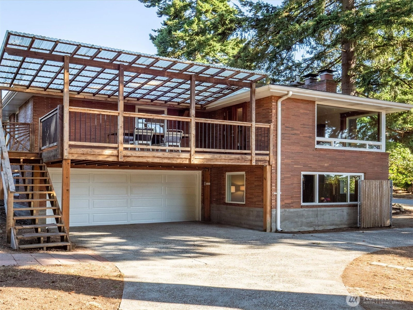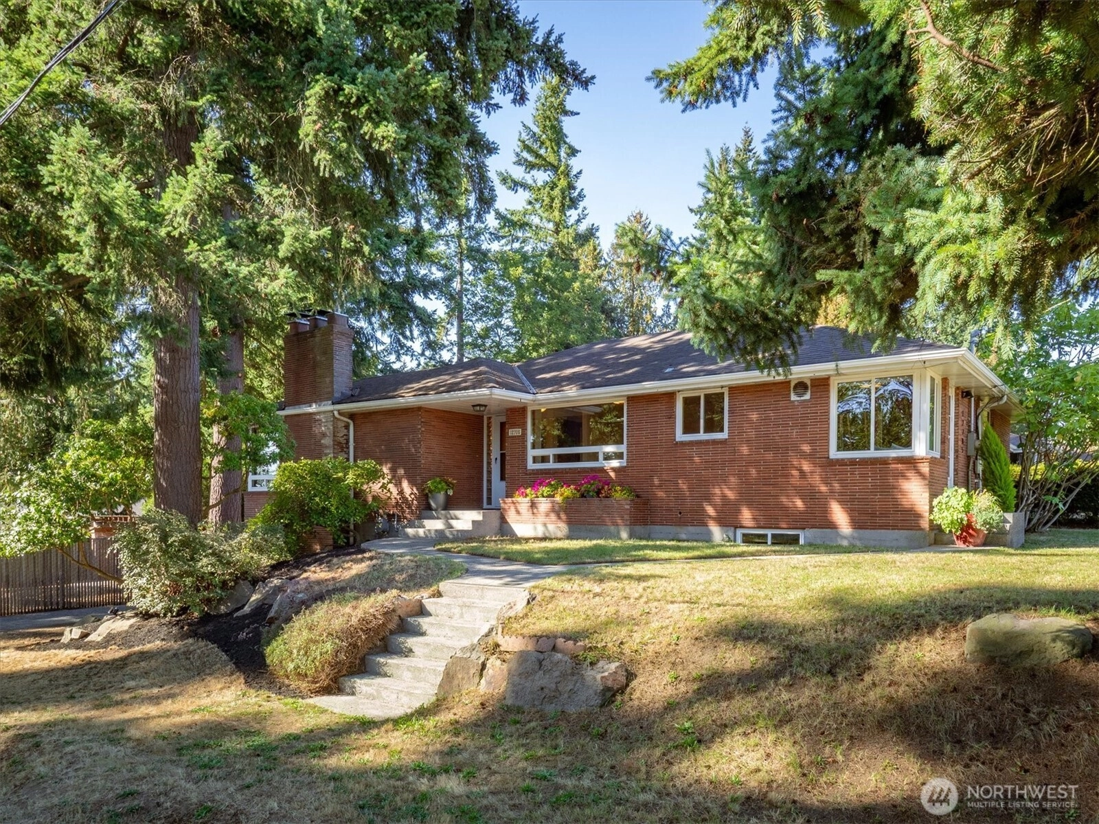 Remodeled by a master carpenter, this unique mid-century home blends timeless craftsmanship with thoughtful modern updates. Rich natural wood accents bring the PNW inside, while large windows invite natural light and partial Puget Sound & mountain views. The main level features 3 bdrms, full bath, sunny kitchen, dining & living spaces with warm hardwoods. The freshly renovated daylight lower level includes a spacious 2nd kitchen, 3/4 bath & additional bdrm—ideal for guests, multigenerational living or potential income-generating ADU. Spacious level backyard w/room to garden or play. 400sf attached garage w/220-amp subpanel. Updated plumbing & electrical, newly lined sewer. A truly special home where character, function & potential converge.