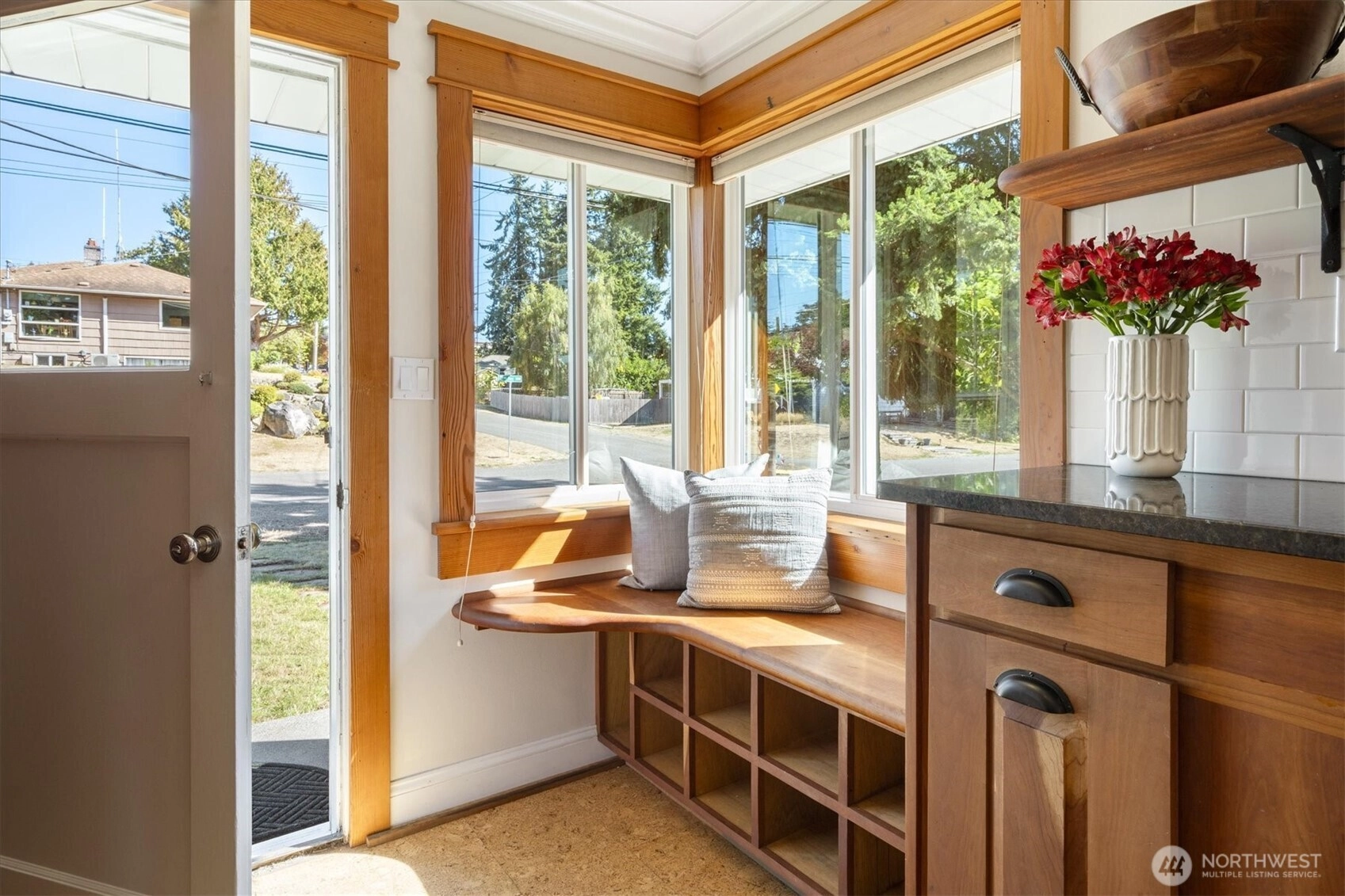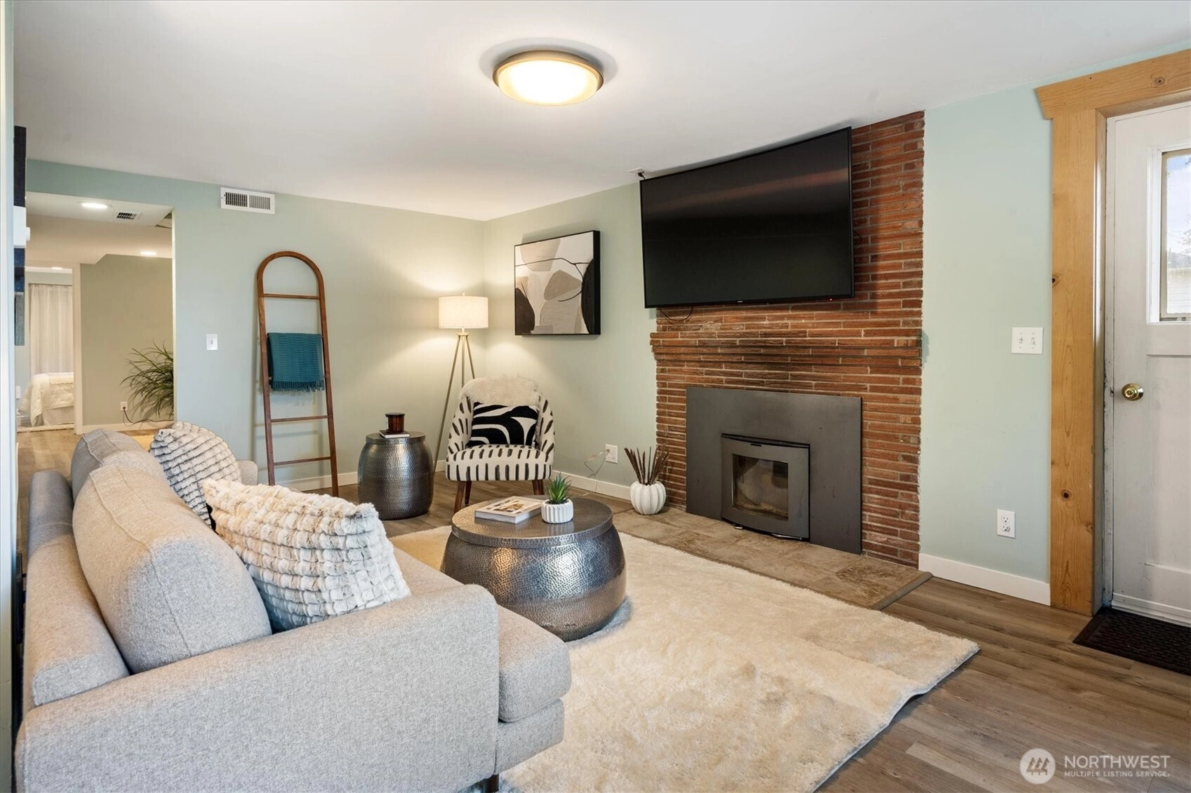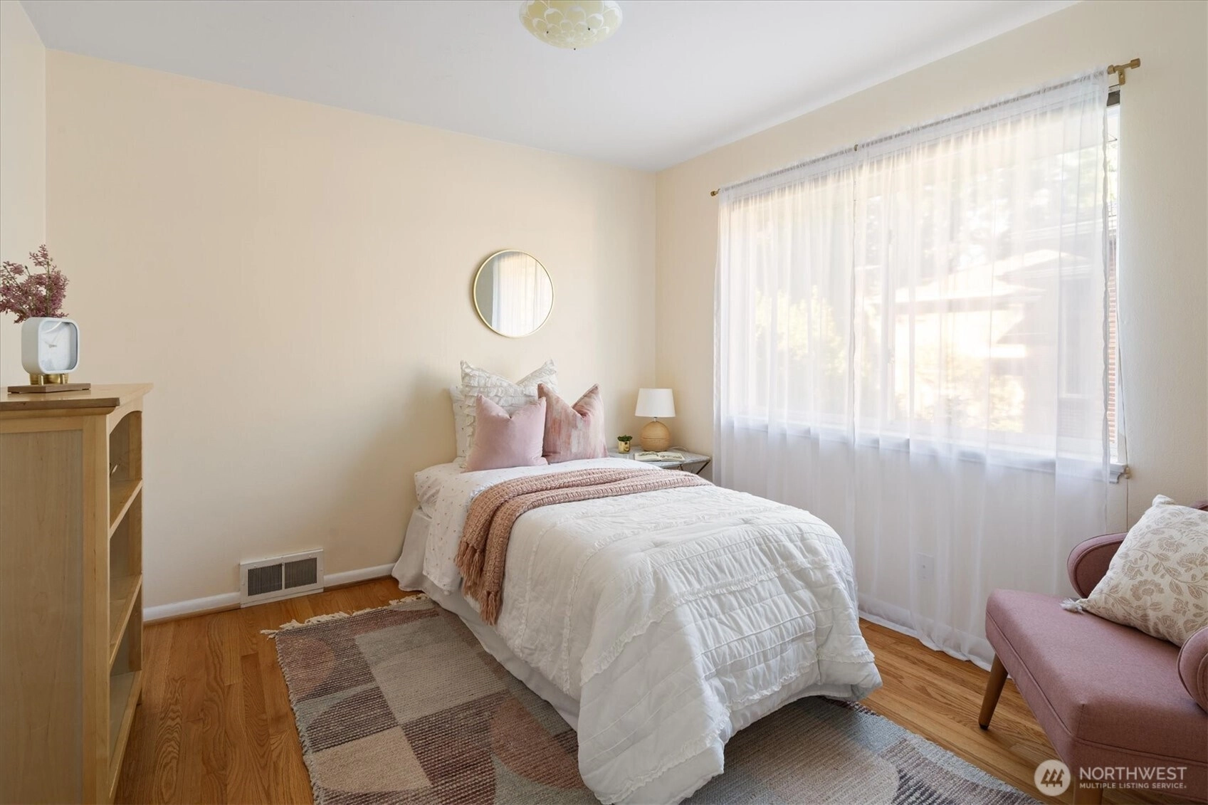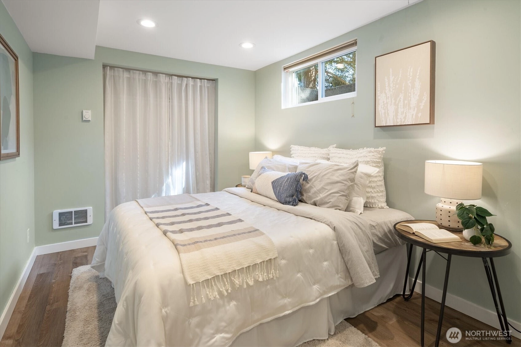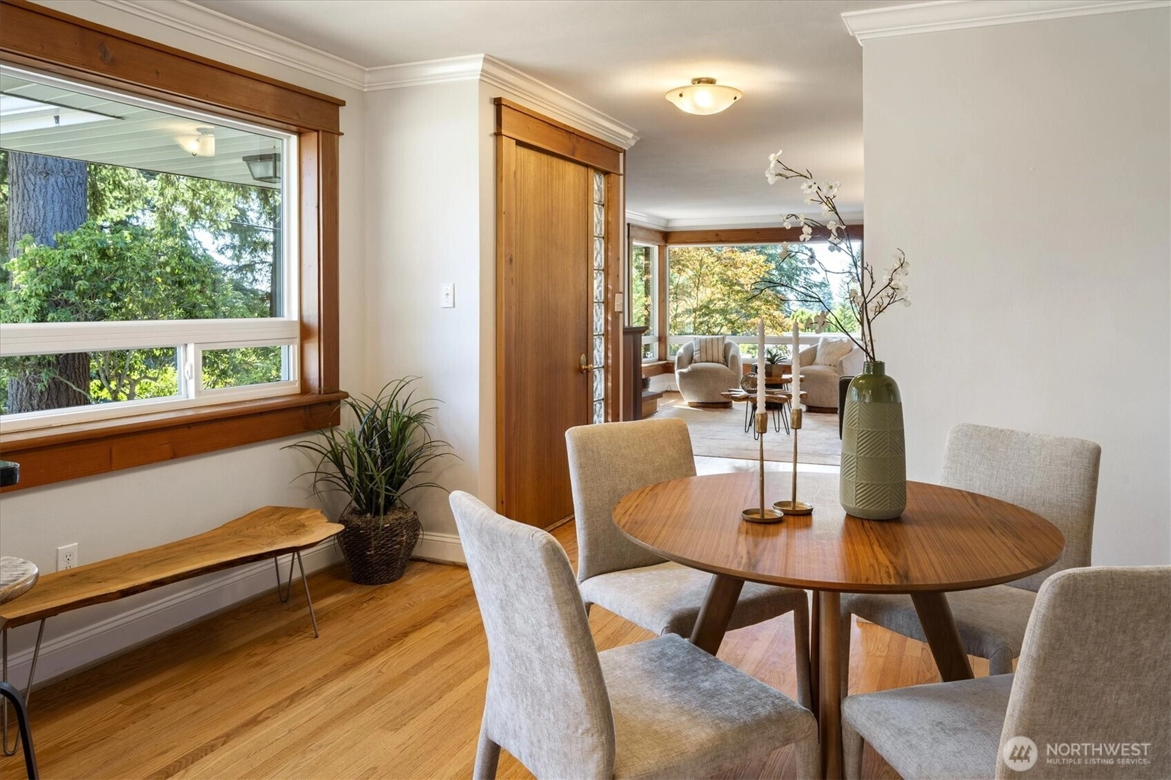 Remodeled by a master carpenter, this unique mid-century home blends timeless craftsmanship with thoughtful modern updates. Rich natural wood accents bring the PNW inside, while large windows invite natural light and partial Puget Sound & mountain views. The main level features 3 bdrms, full bath, sunny kitchen, dining & living spaces with warm hardwoods. The freshly renovated daylight lower level includes a spacious 2nd kitchen, 3/4 bath & additional bdrm—ideal for guests, multigenerational living or potential income-generating ADU. Spacious level backyard w/room to garden or play. 400sf attached garage w/220-amp subpanel. Updated plumbing & electrical, newly lined sewer. A truly special home where character, function & potential converge.