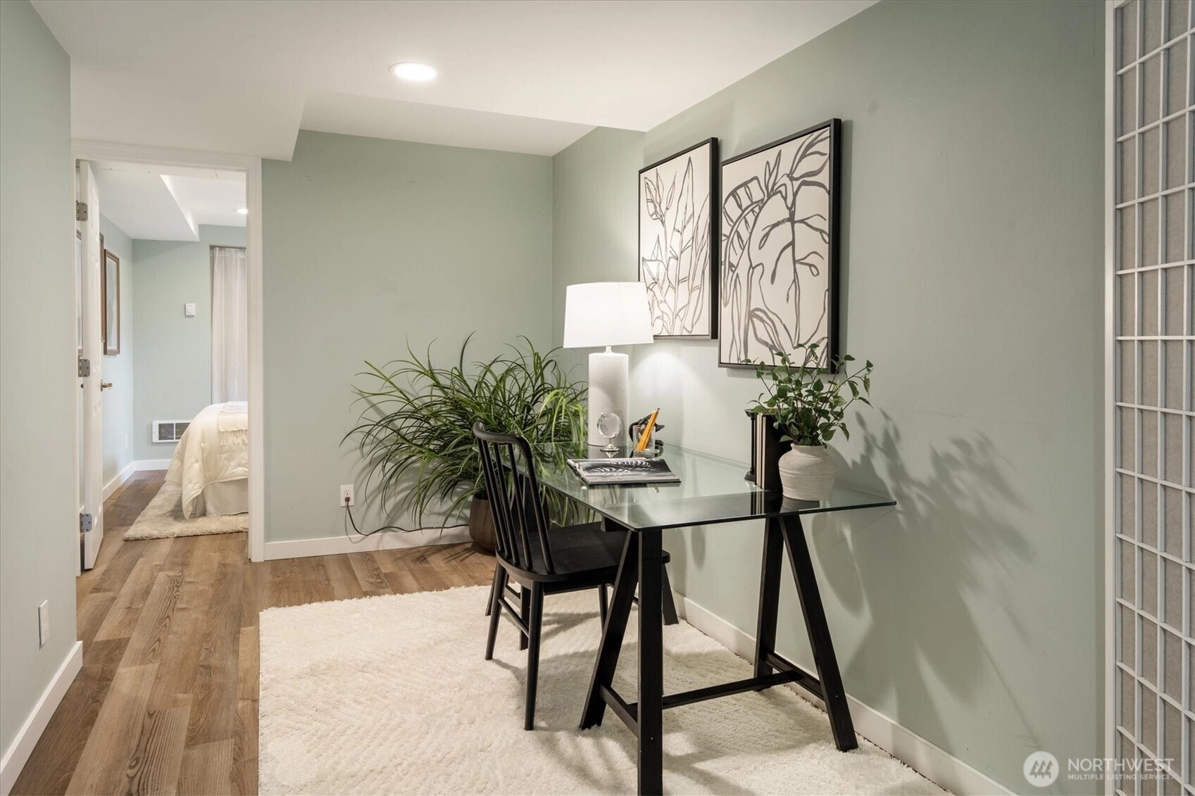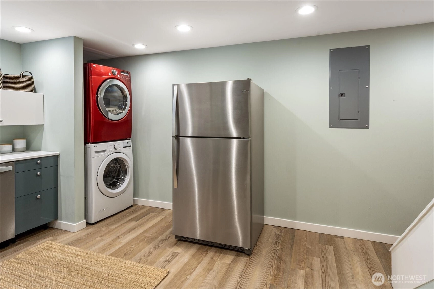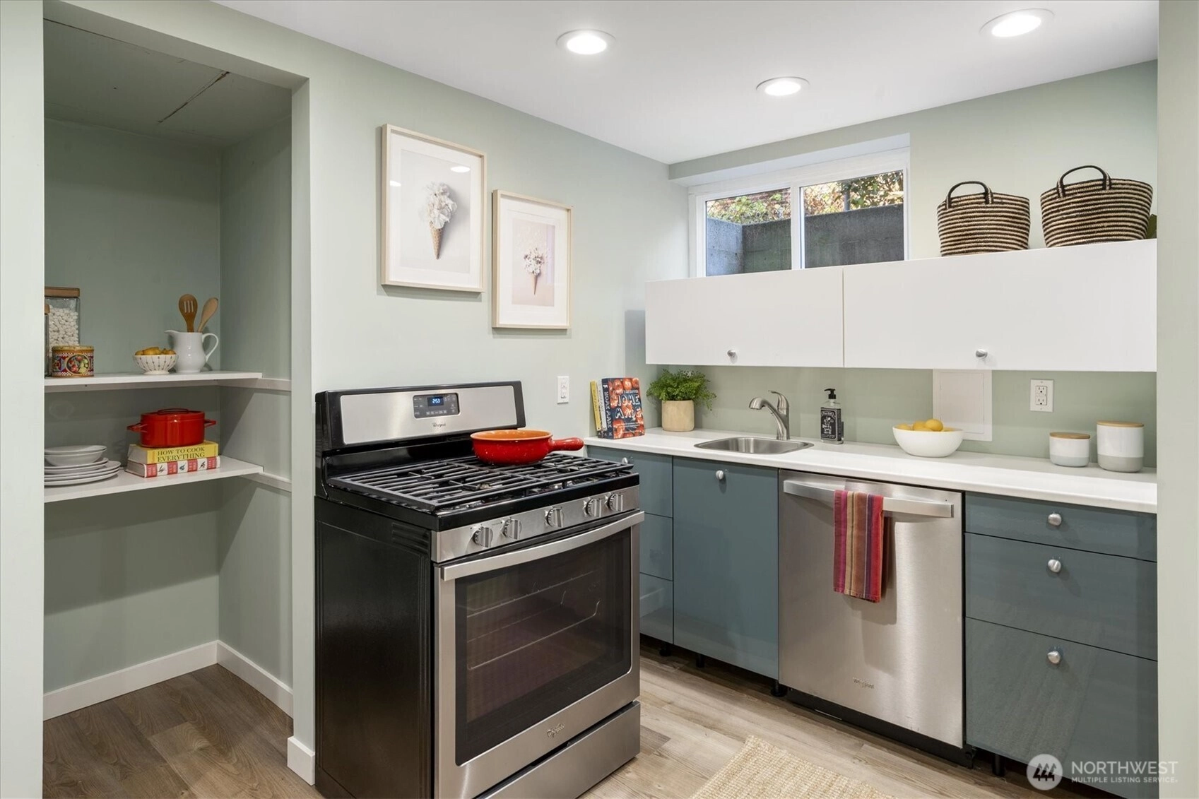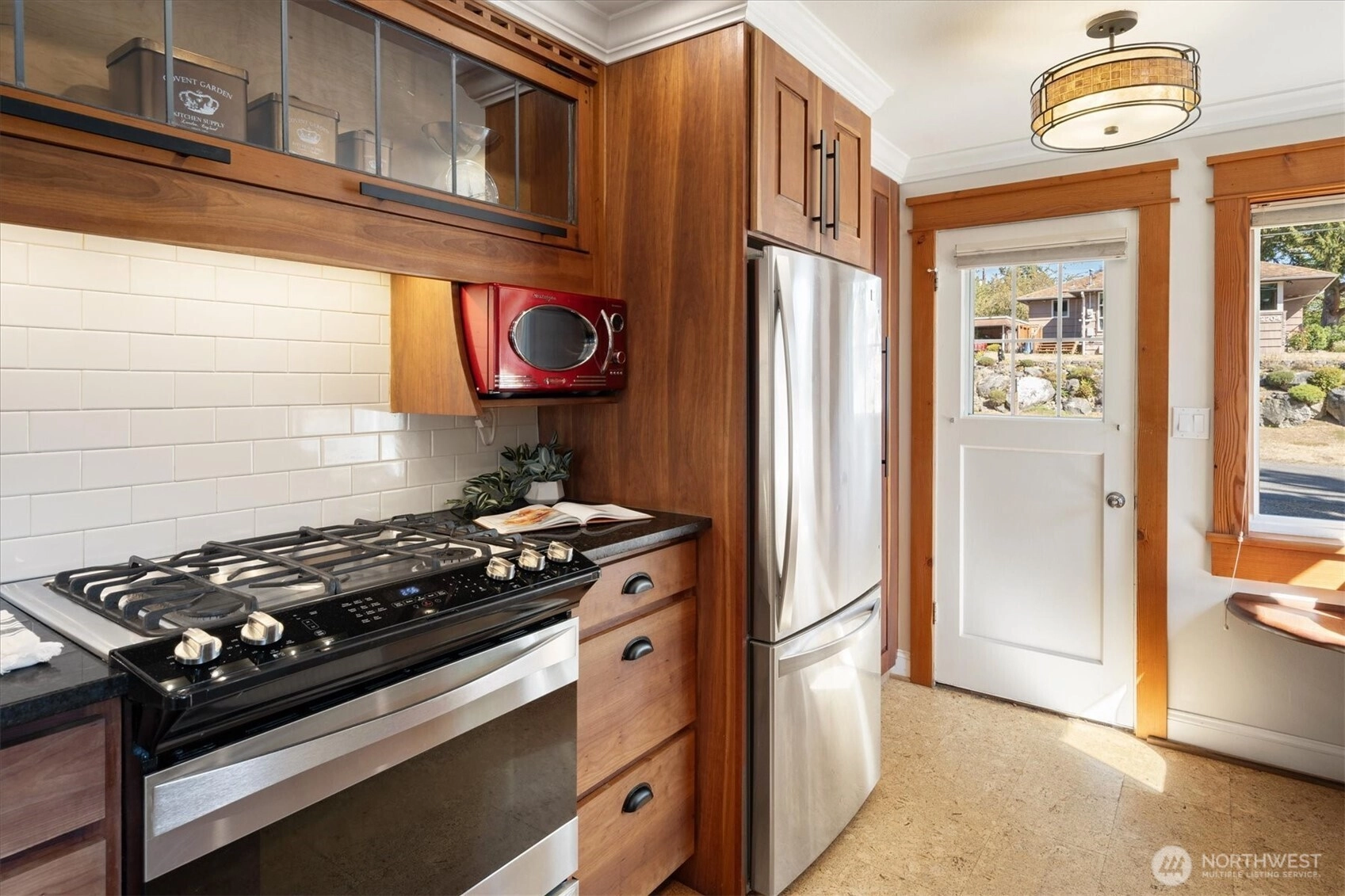 Remodeled by a master carpenter, this unique mid-century home blends timeless craftsmanship with thoughtful modern updates. Rich natural wood accents bring the PNW inside, while large windows invite natural light and partial Puget Sound & mountain views. The main level features 3 bdrms, full bath, sunny kitchen, dining & living spaces with warm hardwoods. The freshly renovated daylight lower level includes a spacious 2nd kitchen, 3/4 bath & additional bdrm—ideal for guests, multigenerational living or potential income-generating ADU. Spacious level backyard w/room to garden or play. 400sf attached garage w/220-amp subpanel. Updated plumbing & electrical, newly lined sewer. A truly special home where character, function & potential converge.