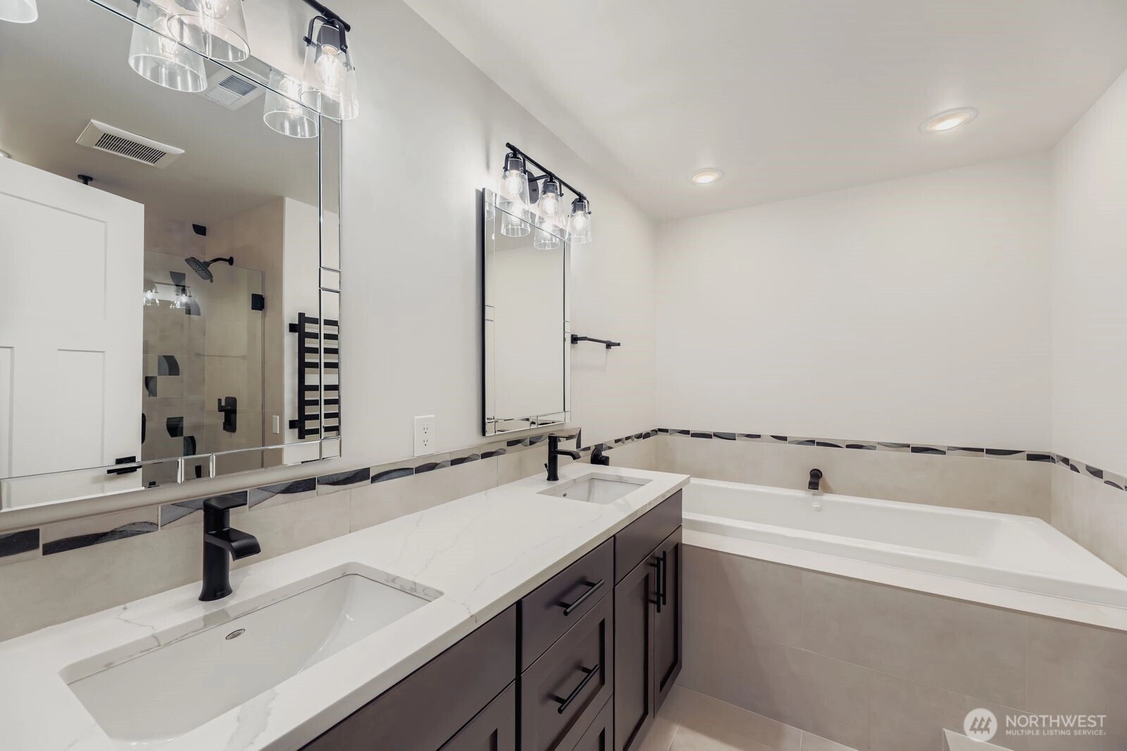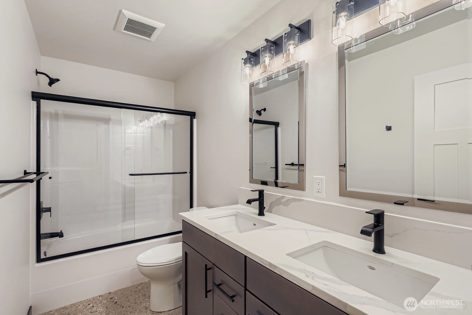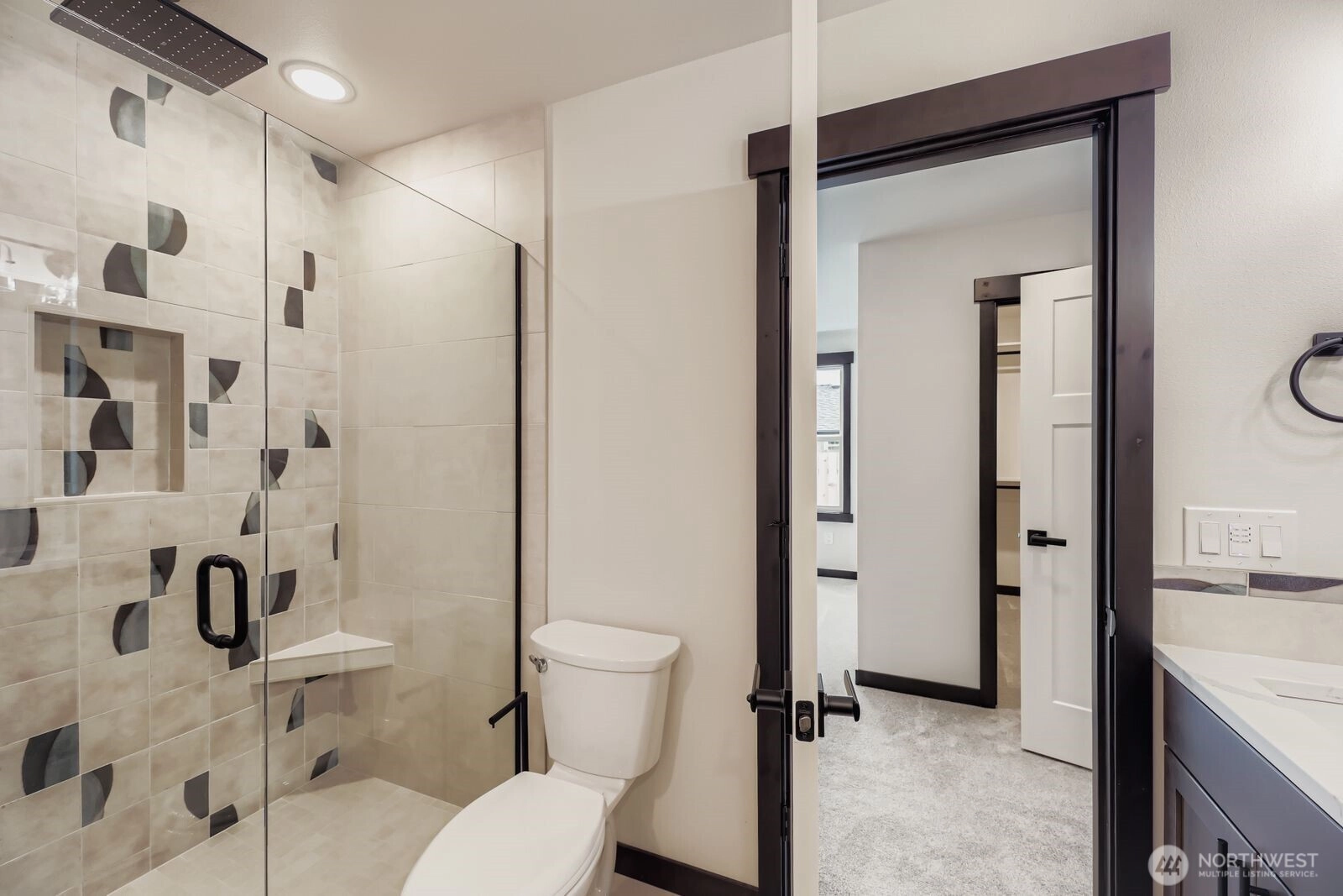 Experience modern comfort in this custom-built Lake Stevens home featuring 4 bedrooms & 2.5 baths with premium craftsmanship & stylish design. Open-concept great room boasts 8’ ceilings, wide-plank floors, built-ins, fireplace, & a gourmet kitchen with quartz counters, shaker cabinets, double oven, TopZero sink, stainless appliances, island, pantry, & under-cabinet lighting. Main-floor primary offers a walk-in closet & spa-like 5-piece bath with heated jetted tub, rain shower, dual sinks, & heated towel rack, plus a powder room for guests. Upstairs includes a loft, bonus room, 3 bedrooms, full bath, built-in desk, & laundry. Not to be missed is an oversized insulated garage, EV charger, covered porch, & A/C. Near schools, parks, & shopping.