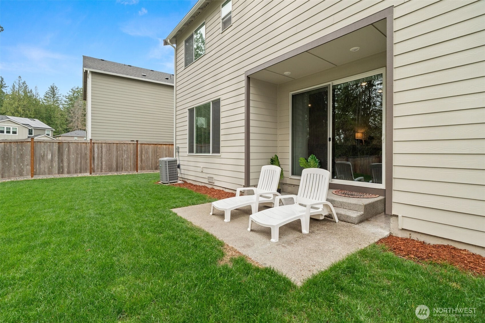 Tucked on a quiet street this beautiful home offers the perfect blend of comfort, space, and privacy. With 4 spacious bedrooms, central A/C, and a bright open-concept layout, it’s designed for both everyday living and easy entertaining. The main floor welcomes you with a generous living area, dining space, and a modern kitchen that opens right into the heart of the home. Upstairs, you’ll find large bedrooms, including a relaxing primary suite with a walk-in closet and ensuite bath. Step outside to a fully fenced backyard that backs to a lush greenbelt—offering privacy, and no rear neighbors. Whether you’re enjoying morning coffee on the patio or watching the seasons change, this yard is your private retreat.