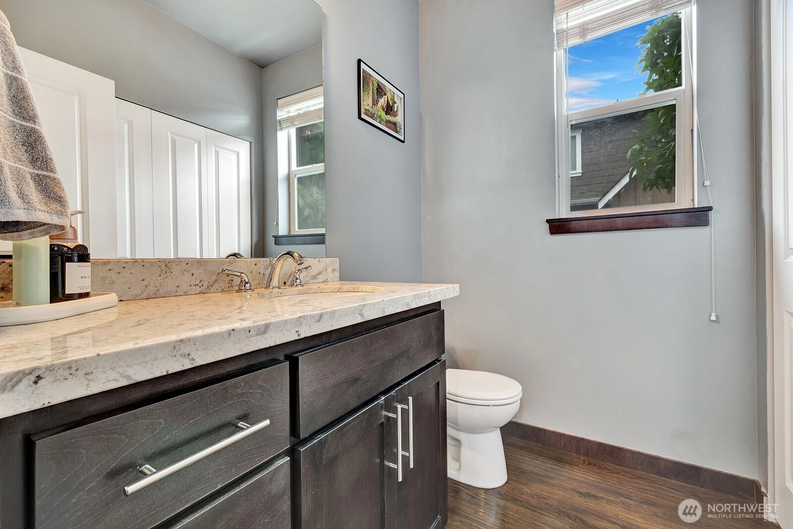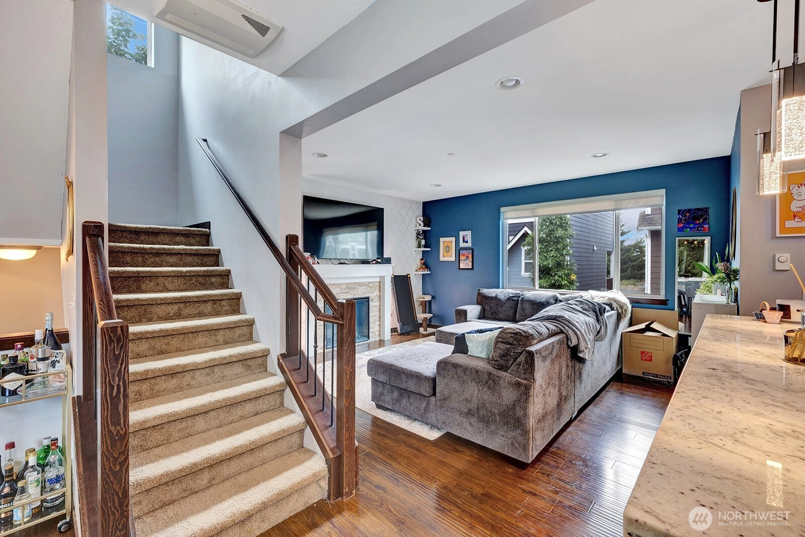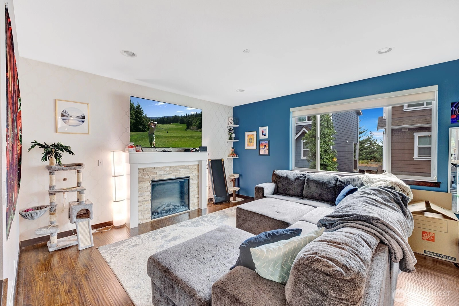 This stand-alone townhouse offers the perfect blend of comfort and convenience in a quiet, well-kept community. The open layout is filled with natural light form oversized windows and a cozy electric fireplace in the living room. The modern kitchen included granite counters, stainless steel appliances, and an open concept dining area that leads to a covered balcony. Upstairs, you will find the spacious primary suite with a walk-in closet and bath, as well as two additional bedrooms that share a full bath. Enjoy an attached 2-car garage, abundant storage, and low HOA dues. I-5, Alderwood Mall, and transit centers all nearby!
