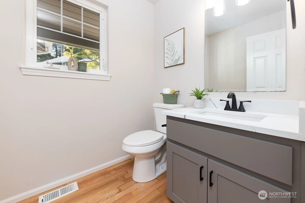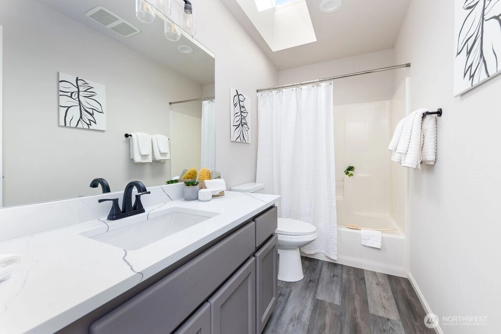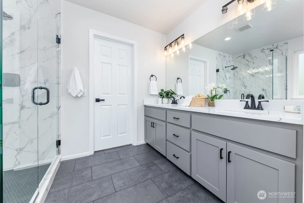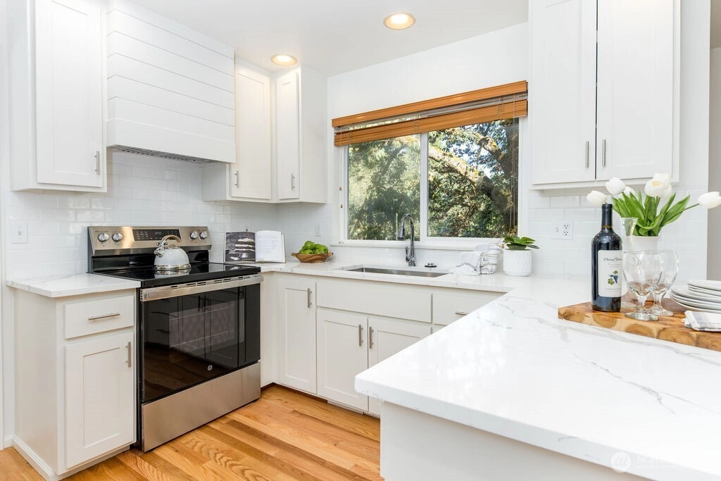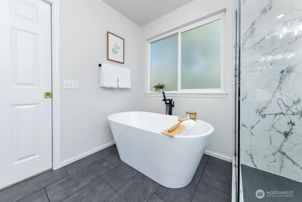 Beautifully updated North Bend home in highly coveted Forster Woods neighborhood! Newly remodeled kitchen features quartz counters, breakfast bar, new appls, & stylish finishes. Refinished hardwoods, new paint & carpet thru-out, plus fully remodeled bathrooms. Luxurious primary suite offers soaking tub & custom enclosed glass shower + walk in closet. Great rm w/ cozy fireplace opens to deck & has a built in workspace. Formal dining area off living rm —ideal for gatherings 3 bedrooms + den & 2.5 baths provide flexible living. Outdoor living shines w/ new TimberTech deck, sweeping Mt. Si views, custom landscaping, new fence, new Hardi plank siding & new roof. Close to trails, parks, & year-round recreation —move-in ready & stunning!