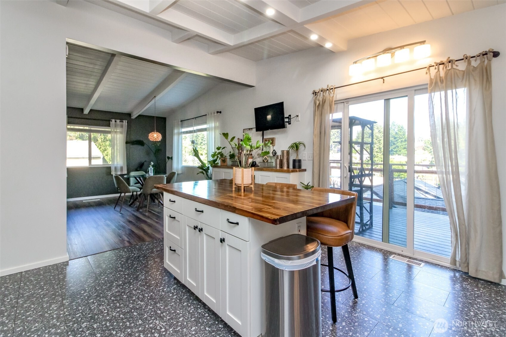 Enjoy the beauty of the trees as you overlook the rooftops from your new picture window in the cutest home that has been transformed into a cozy oasis. New luxury vinyl plank throughout the first floor flows into the kitchen that has been updated with new tile floors, cabinet hardware, the addition of a vent above the stove and a warm, wooden backsplash that compliments the island crafted with the original wood from the 1960's. Upper deck off the kitchen leads to a spacious backyard that can be accessed from a separate entrance to the fully-finished basement that is perfect for roommates or extra income as an Airbnb. New roof installed in the spring and fresh exterior paint, electrical panel, washer & dryer make this home move-in ready!