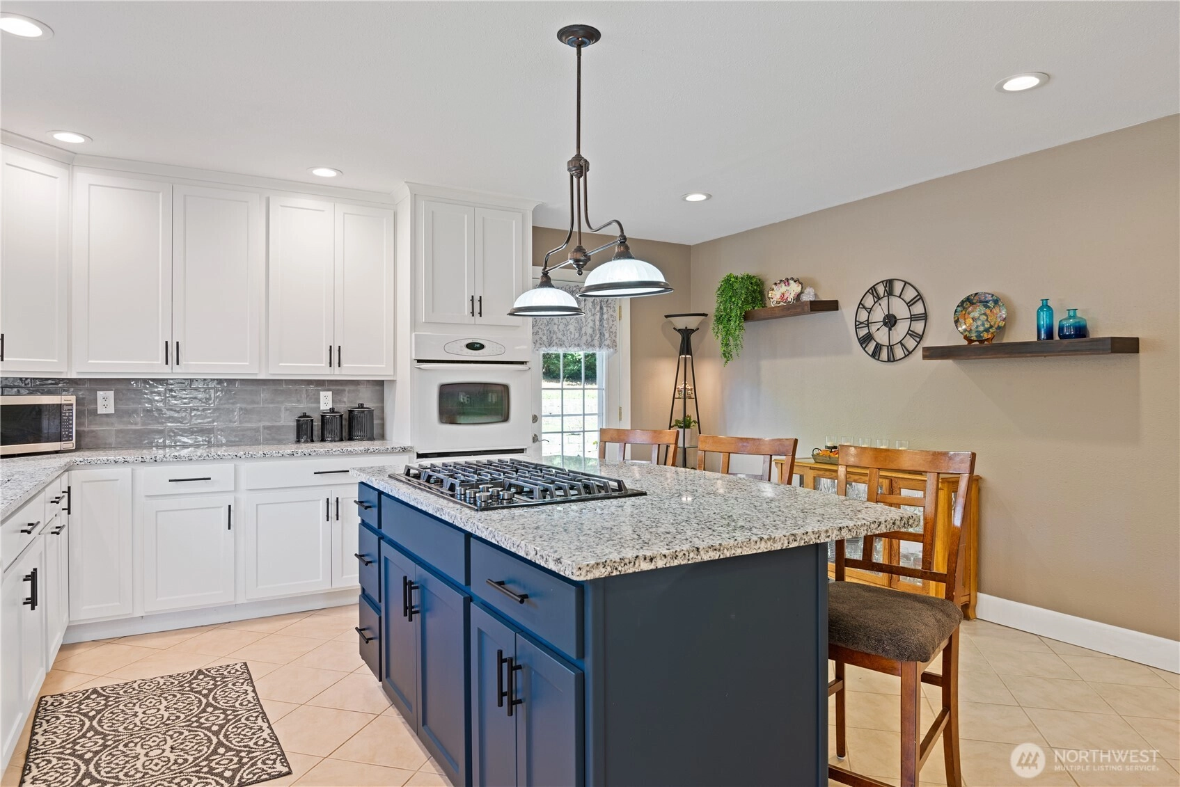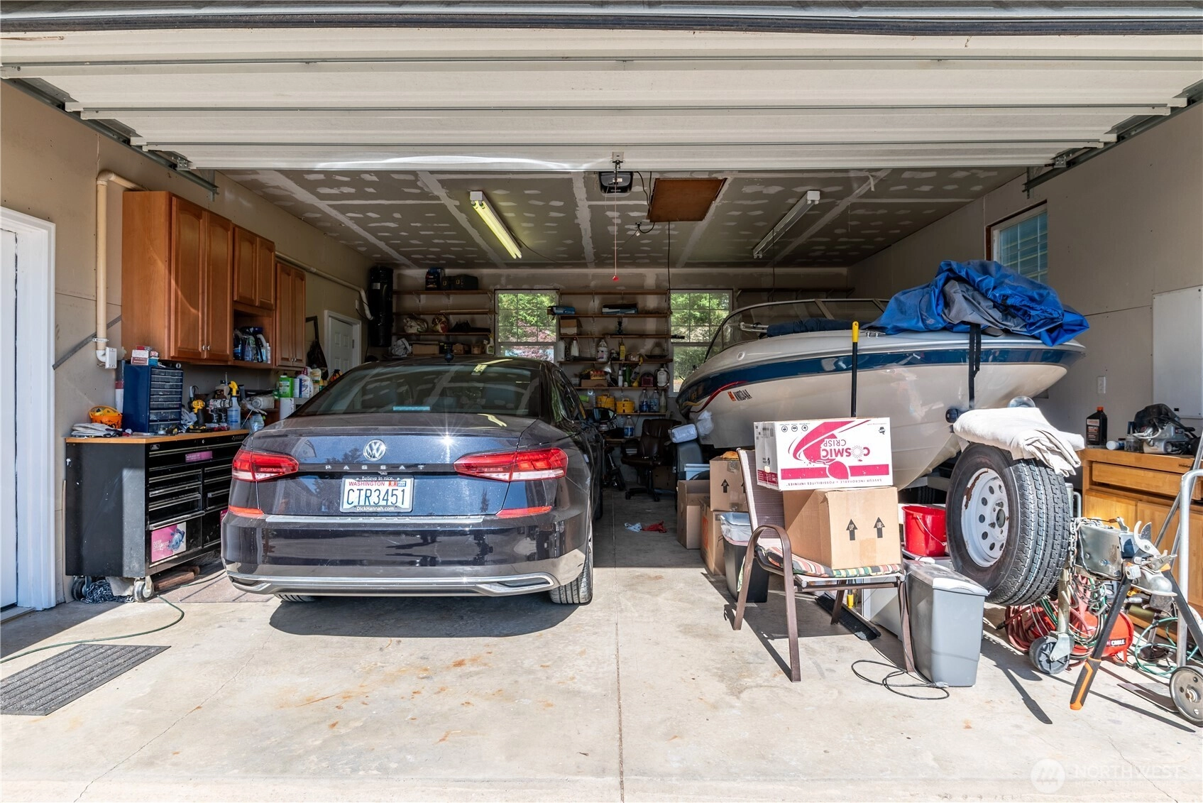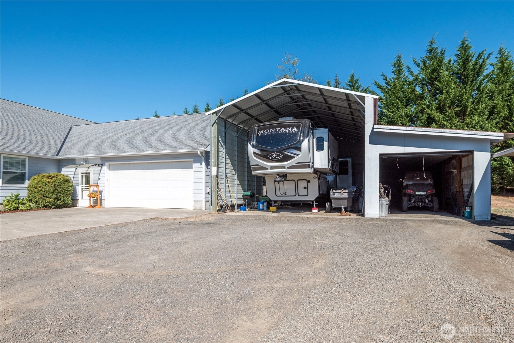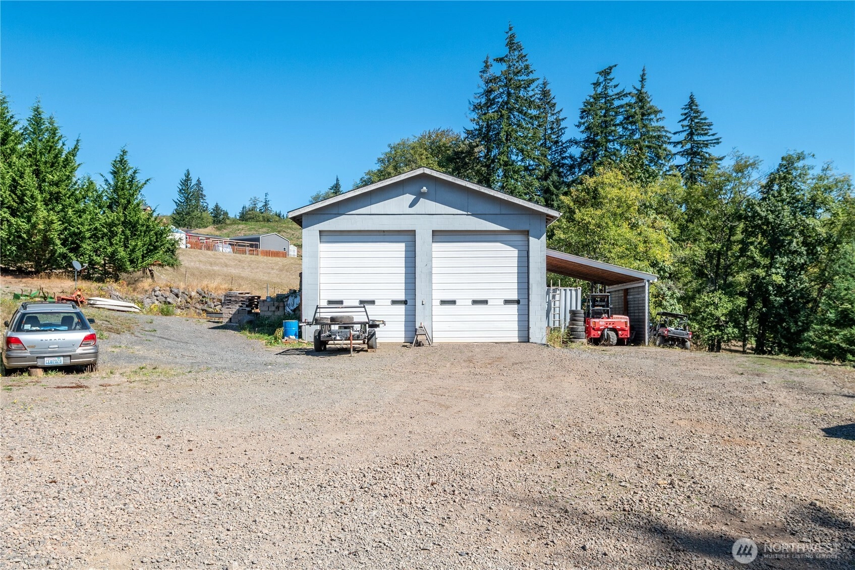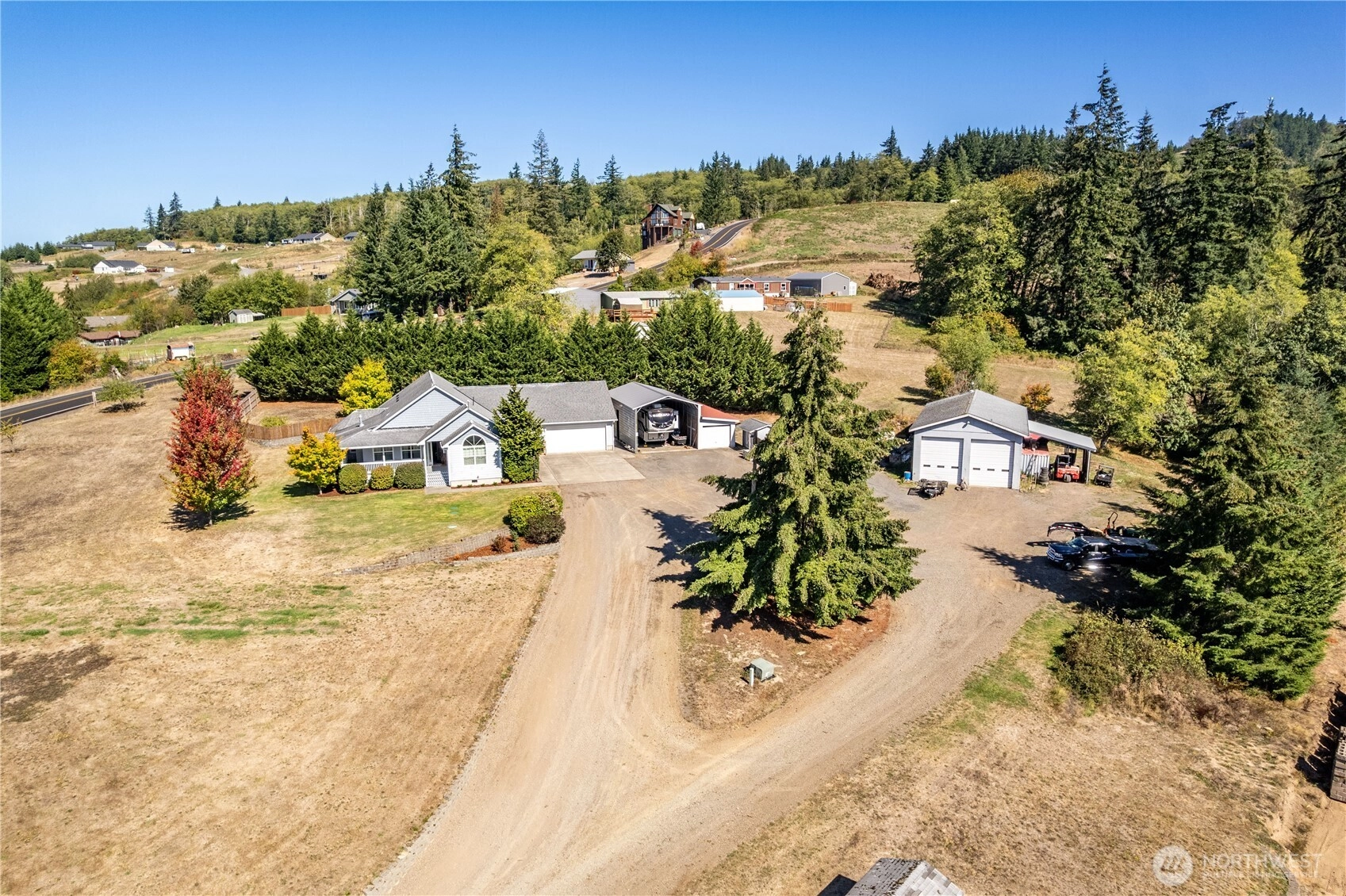 Discover this stunning home featuring a wrap-around covered deck with stylish lighting, set on 2.010 acres of serene landscape.With 2,451 sq ft of living space,this home offers three spacious bedrooms and two full baths. The inviting living room boasts a gas fireplace, while the kitchen impresses with granite countertops, a large island with a cooktop,soft-close drawers, and beautiful white cabinetry. Enjoy double ovens, a walk-in pantry, and tile flooring throughout the kitchen.The primary suite features LVP flooring, a walk-in closet, and a luxurious double-headed tile shower with a heated tile floor.Outside a 30 x 60 shop with a commercial air compressor and car hoist awaits, along with an RV shed equipped with Electrical septic hookups.