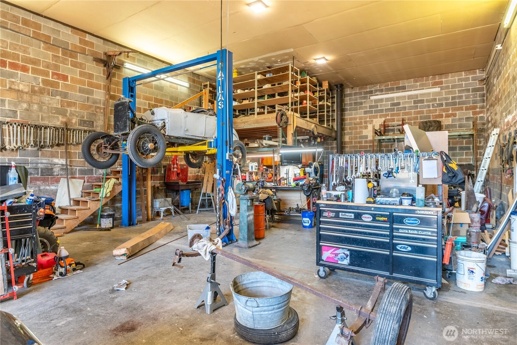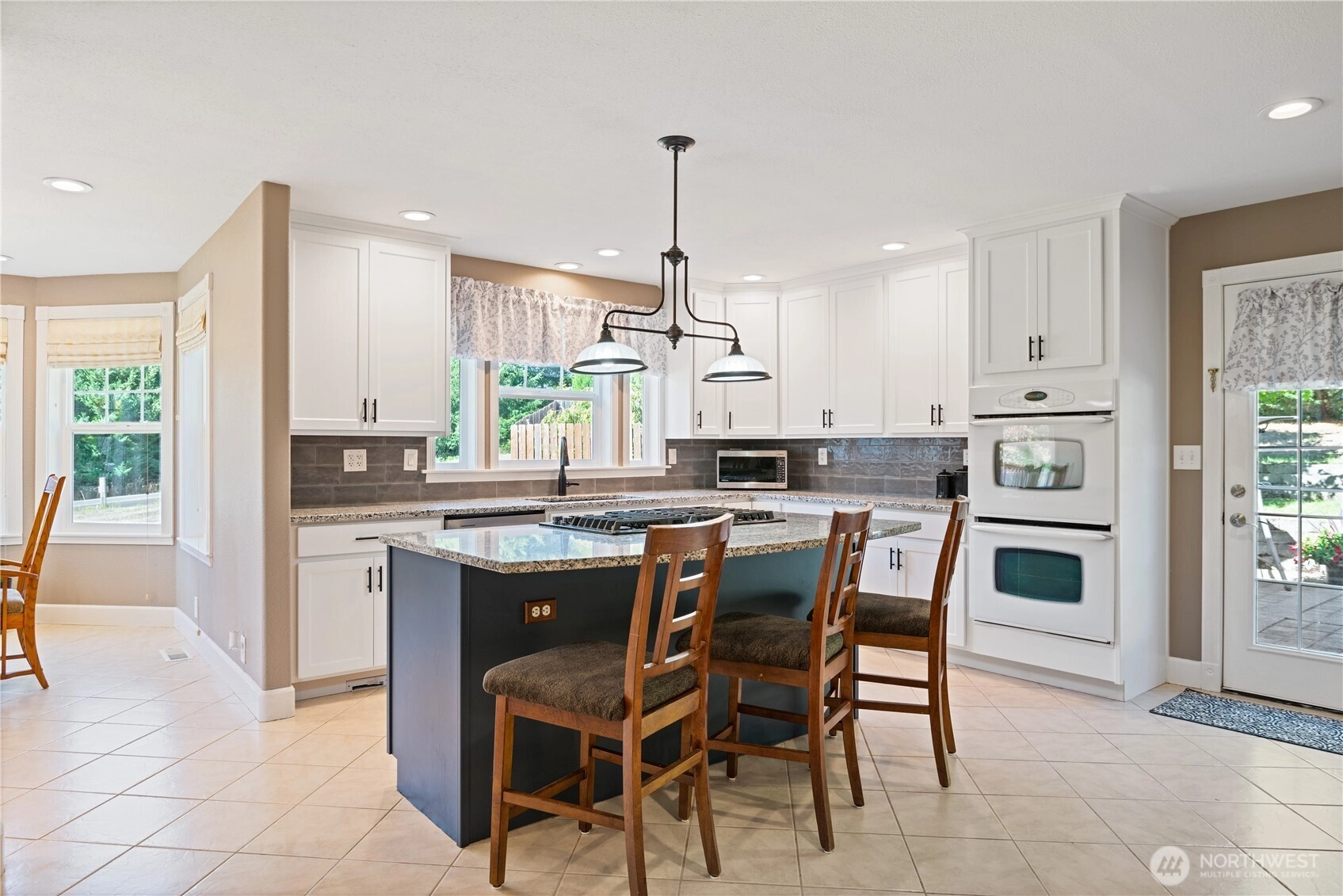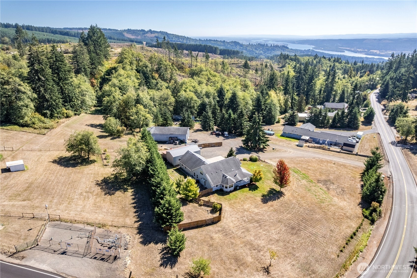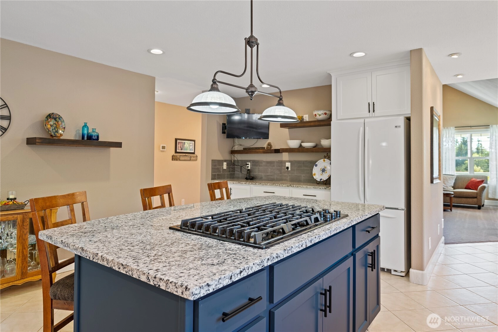 Discover this stunning home featuring a wrap-around covered deck with stylish lighting, set on 2.010 acres of serene landscape.With 2,451 sq ft of living space,this home offers three spacious bedrooms and two full baths. The inviting living room boasts a gas fireplace, while the kitchen impresses with granite countertops, a large island with a cooktop,soft-close drawers, and beautiful white cabinetry. Enjoy double ovens, a walk-in pantry, and tile flooring throughout the kitchen.The primary suite features LVP flooring, a walk-in closet, and a luxurious double-headed tile shower with a heated tile floor.Outside a 30 x 60 shop with a commercial air compressor and car hoist awaits, along with an RV shed equipped with Electrical septic hookups.
