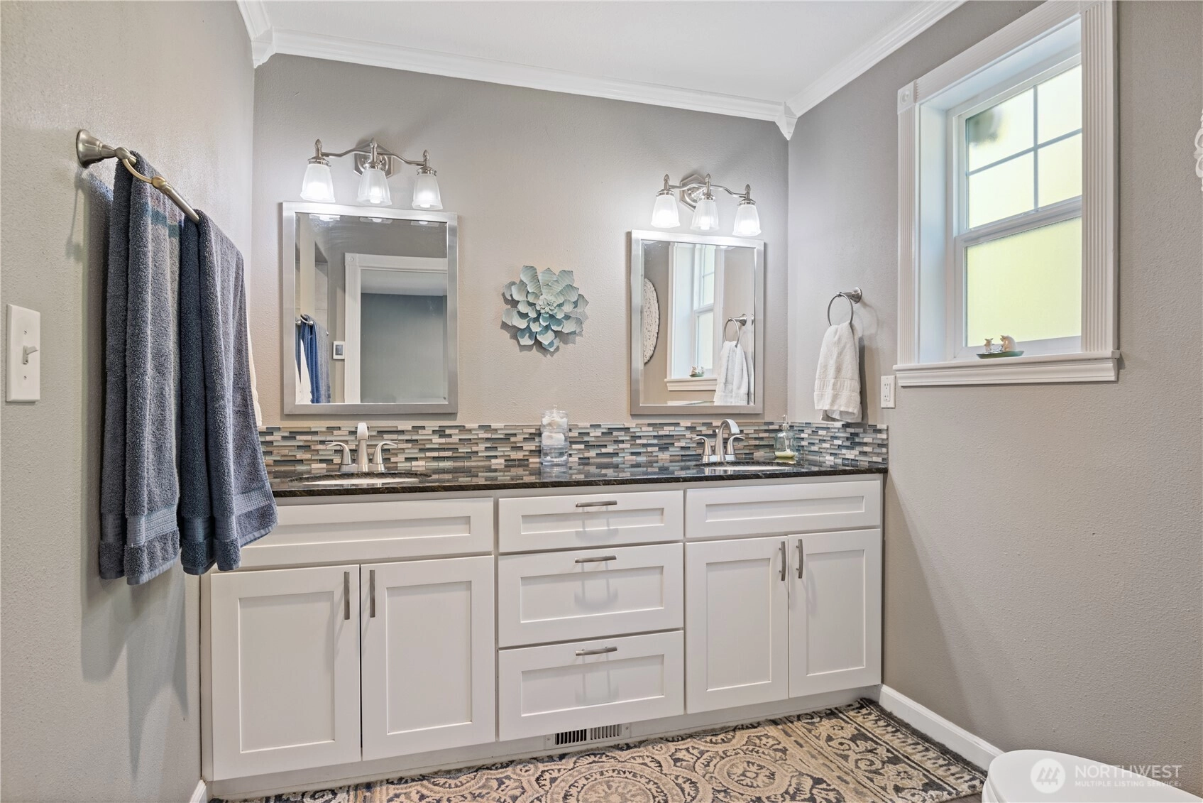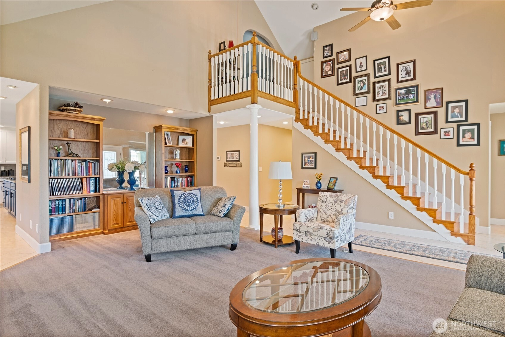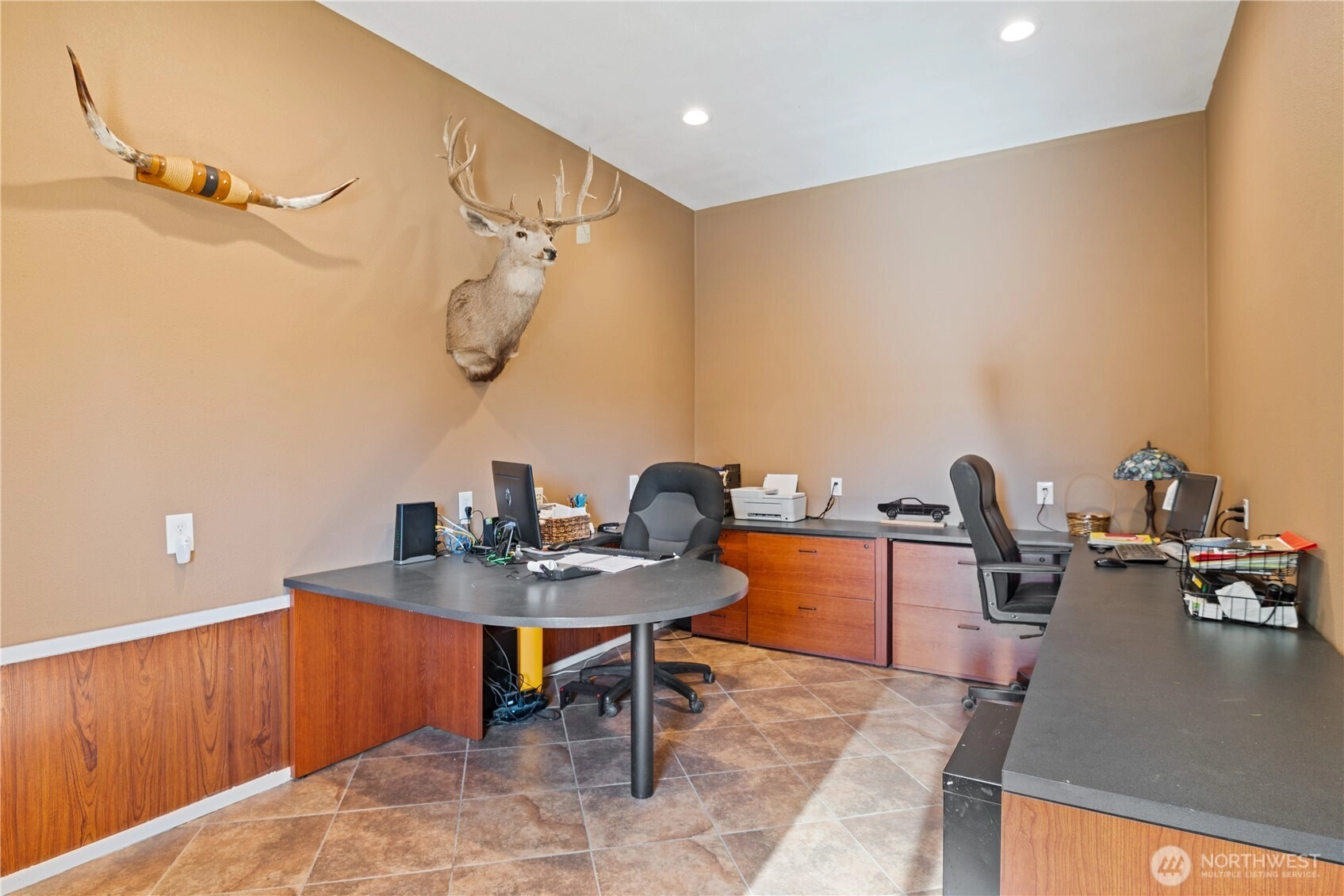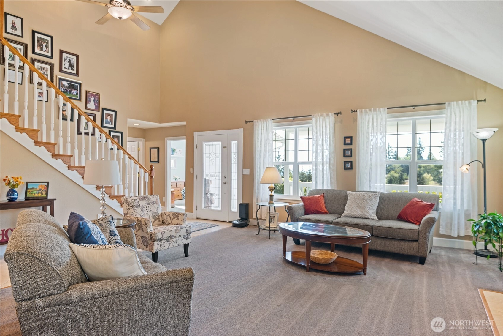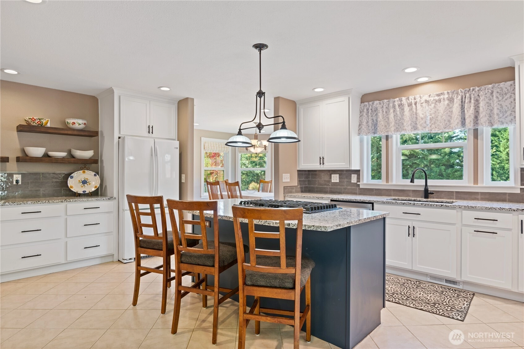 Discover this stunning home featuring a wrap-around covered deck with stylish lighting, set on 2.010 acres of serene landscape.With 2,451 sq ft of living space,this home offers three spacious bedrooms and two full baths. The inviting living room boasts a gas fireplace, while the kitchen impresses with granite countertops, a large island with a cooktop,soft-close drawers, and beautiful white cabinetry. Enjoy double ovens, a walk-in pantry, and tile flooring throughout the kitchen.The primary suite features LVP flooring, a walk-in closet, and a luxurious double-headed tile shower with a heated tile floor.Outside a 30 x 60 shop with a commercial air compressor and car hoist awaits, along with an RV shed equipped with Electrical septic hookups.