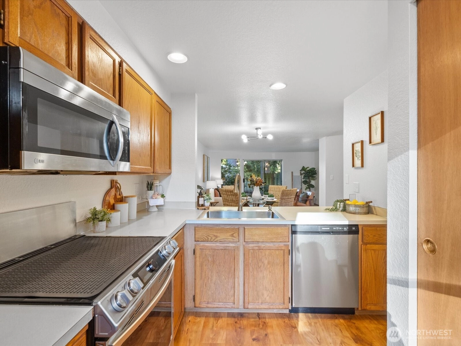 *IMPROVED PRICE!* Discover the peaceful atmosphere of this Townhome style condo. Vacant, well-maintained, move-in-ready, waiting for you to make it your own! Natural lighting up + down, end-unit has just 1 shared wall. 7-unit complex situated on a private dead-end lane. Upper floor boasts 2 bedrooms with separate bathrooms, primary has its own. Interior freshly painted. Newer kitchen appliances, with Samsung induction range + oven! Living room opens onto private patio w/ locking storage shed - hangers await your bikes. 5 minutes to Trader Joe’s, just minutes to the unmatched Edmonds waterfront. Walk to schools + Edmonds College. Easy I-5 access, ample parking, cozy neighborhood feel. Inspection provided, well-managed HOA, cats allowed.