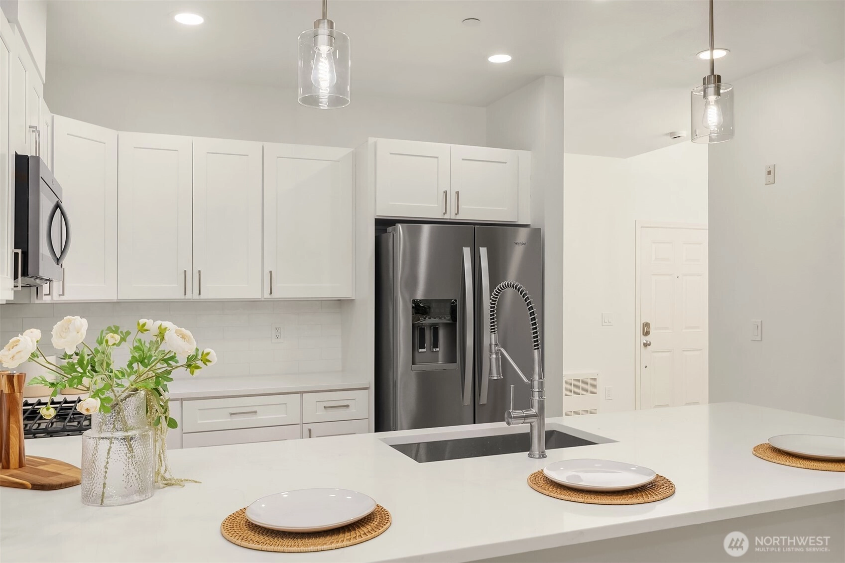 Beautifully updated 3 bd, 2.25 bath townhome in the gated Ashburn Community with 1,552 SF of stylish living space. Turnkey & move-in ready home features fresh interior paint, new vinyl flooring, & a sleek updated kitchen with quartz counters, gas range, oversized pantry, and brand-new stainless steel appliances. Upstairs, the primary suite boasts heated bathroom floors & walk-in shower, while the other 2 additional bedrooms provide comfort & flexibility. Step outside to your private backyard retreat overlooking the greenbelt. The attached garage includes extra storage. HOA amenities feature a clubhouse, sport court, & fitness center. Easy access to Hwy 167, I-405, SeaTac, Boeing, Costco, hospitals, & shopping. No rental cap & pre-inspected!