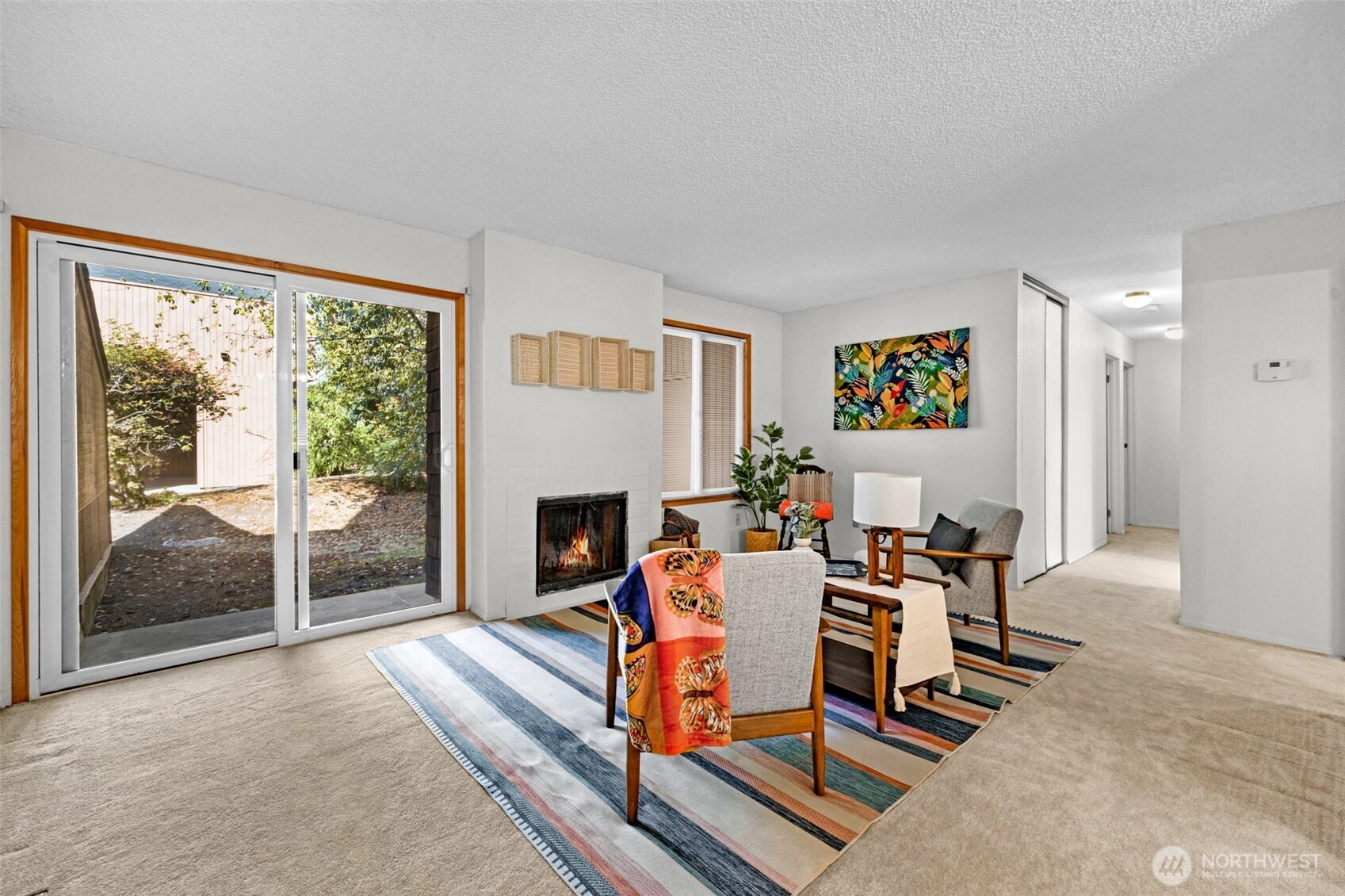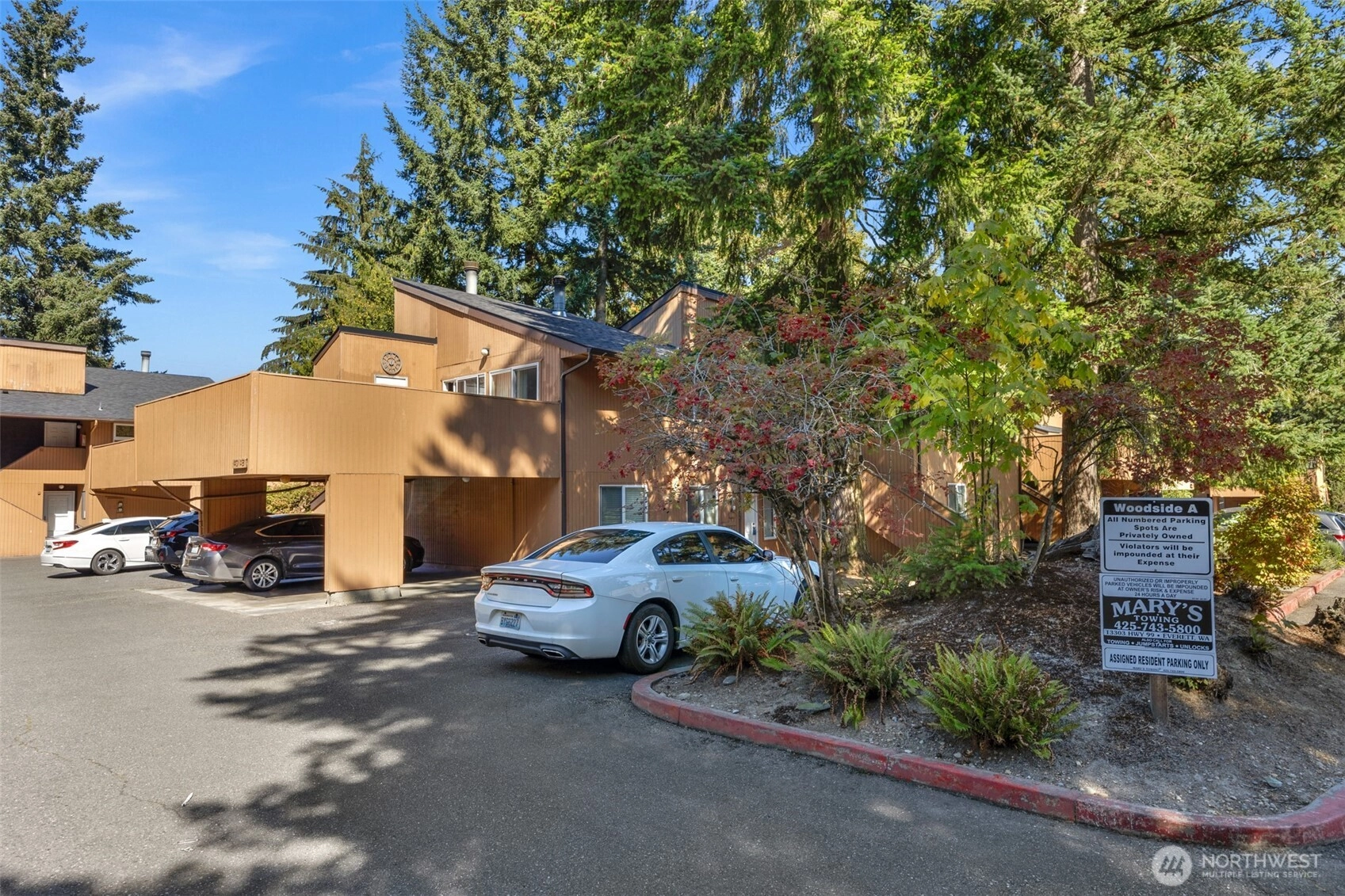 Absolutely perfect ground-level condo with a serene, woodsy vibe in the Mukilteo School District! Surrounded by mature landscaping, this home offers a peaceful setting paired with an open and airy layout. The kitchen, dining, and living areas flow seamlessly together, filled with natural light and centered around a cozy wood-burning fireplace. Thoughtfully designed with 3 bds (two primary)—one is tucked away for privacy, ideal for a guest or to rent. The HOA is exceptionally well-run, handling everything from chimney inspections to vent cleanings, making ownership low-maintenance and stress-free. With all your local amenities like Trader Joes, Costco and Silver Lk, this is an opportunity to enjoy comfort, convenience, and nature all in one.