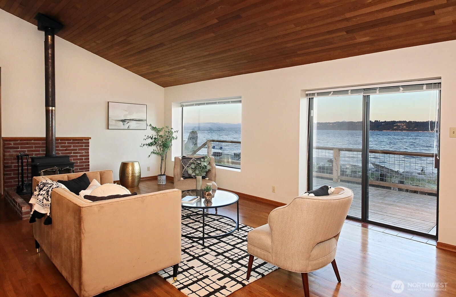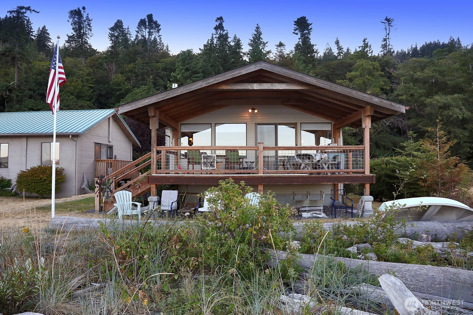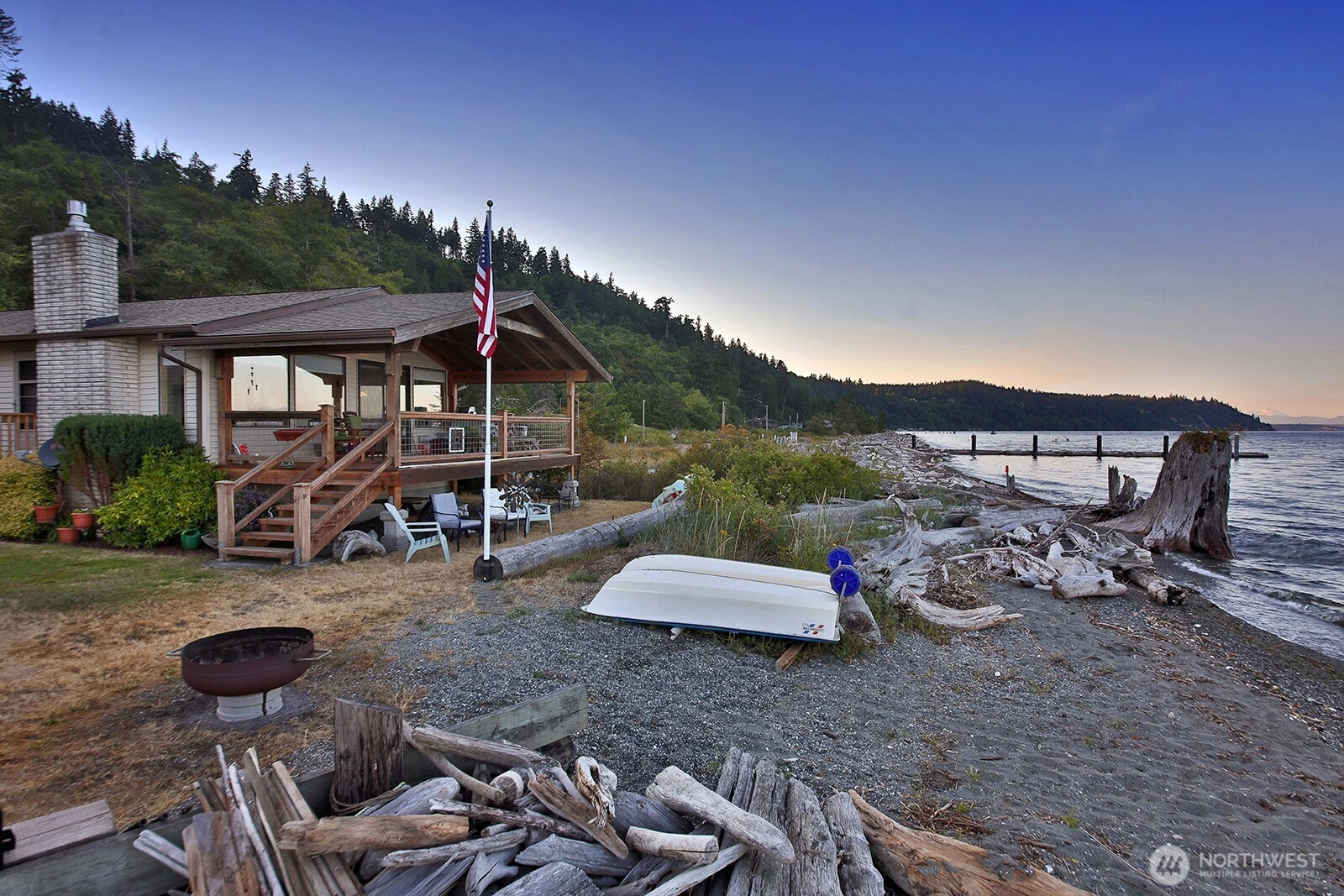 Unique Waterfront Estate with Historic Significance. This property, once the site of a 1910 dynamite factory, offers 165'+/- of private frontage & deeded tidelands. This no bank compound features four possible living areas on approx. 1.73 acres with panoramic views of the Cascades, Mt. Baker, & Mt. Rainier. Located next to a premier boat launch, perfect for boating, fishing, kayaking & beachcombing. The main residence includes a 1-bed apartment with separate entrance and full kitchen—ideal for rental income, guests, or multi-gen living. Also included is a charming two-bedroom cabin & a detached 3-car garage with plenty of storage, plus an unfinished 1-bed apartment above, ready to be customized. The various use combinations are endless!