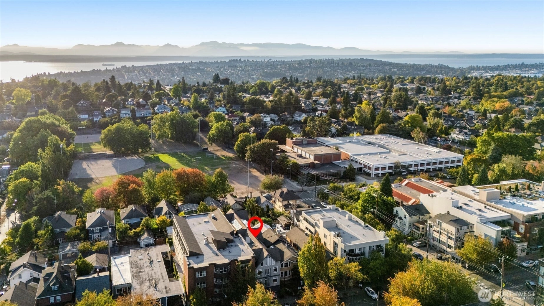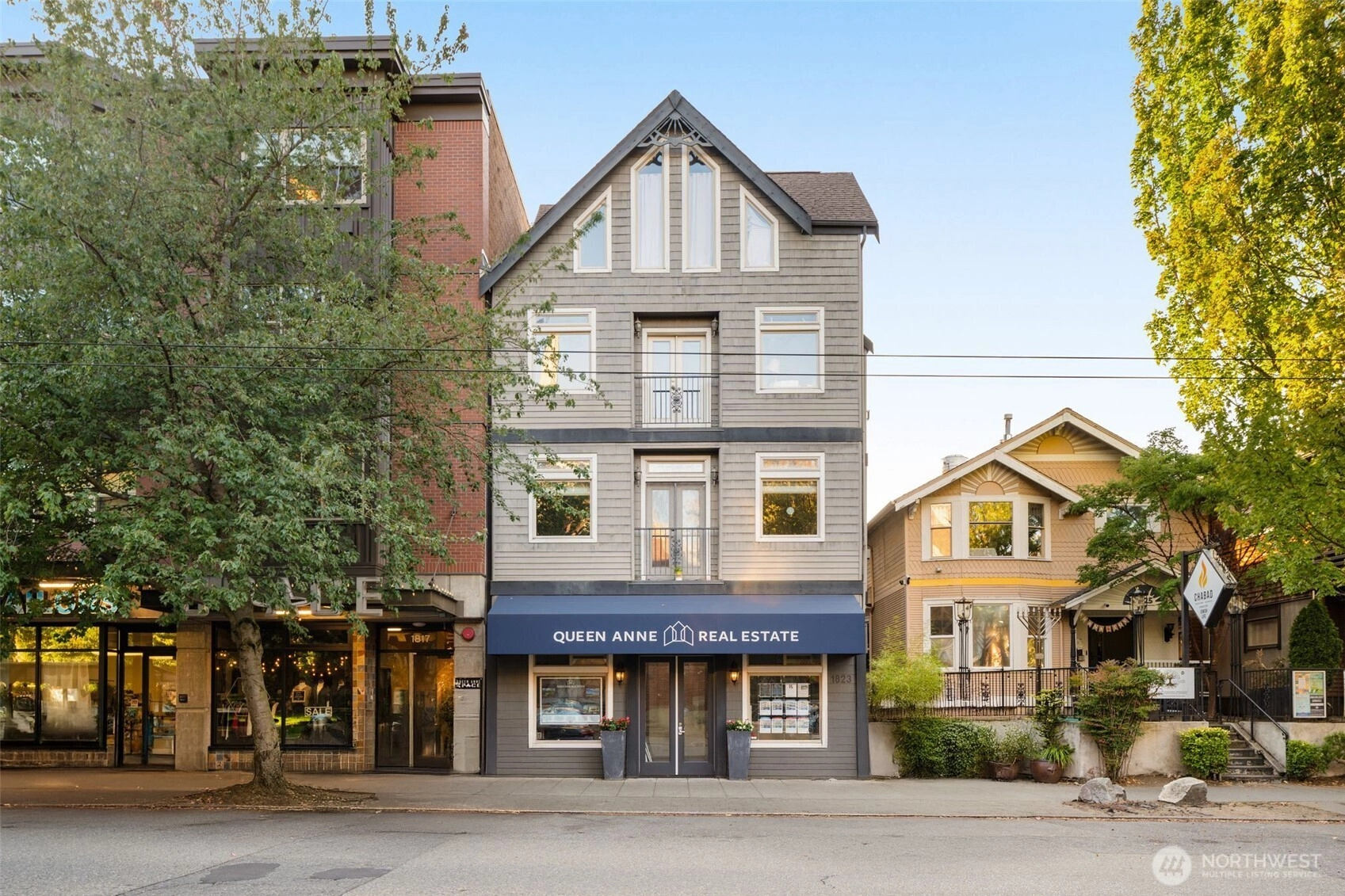 Stunning end unit showcasing designer spaces in a boutique building on the top of Queen Anne! Sited on the Avenue yet unit is in the quiet back half of the building. Spacious floorplan opens to Living room w 9' ceiling height, statement gas fireplace, oversized windows & west-facing Juliette balcony. Open kitchen design: chefs workspace includes abundant cabinetry, slab counters with waterfall peninsula. Dining room can fit a real table w effortless connectivity to both living & kitchen. Primary suite has walk-in closet & it's own 3/4 bath. Elevator, garage parking, storage unit, updated/refreshed baths, laundry in-unit & AC. Unparalleled top of QA location w a plethora of amenities right out your front door. Truly a cherished opportunity!