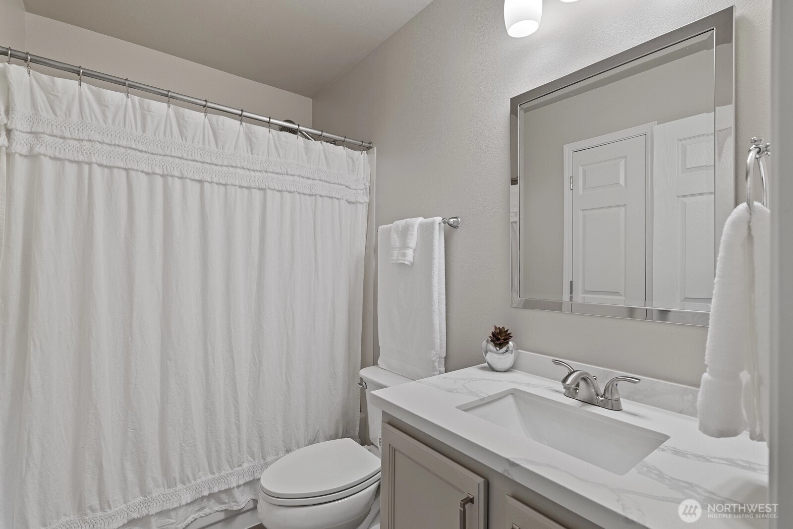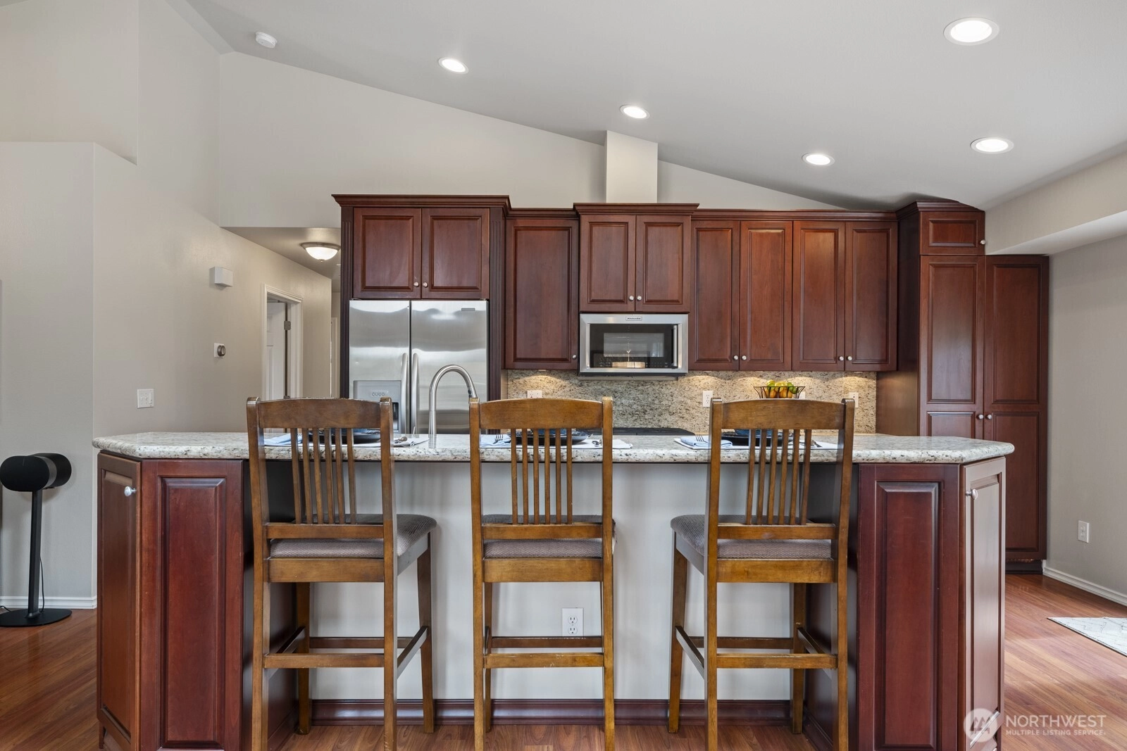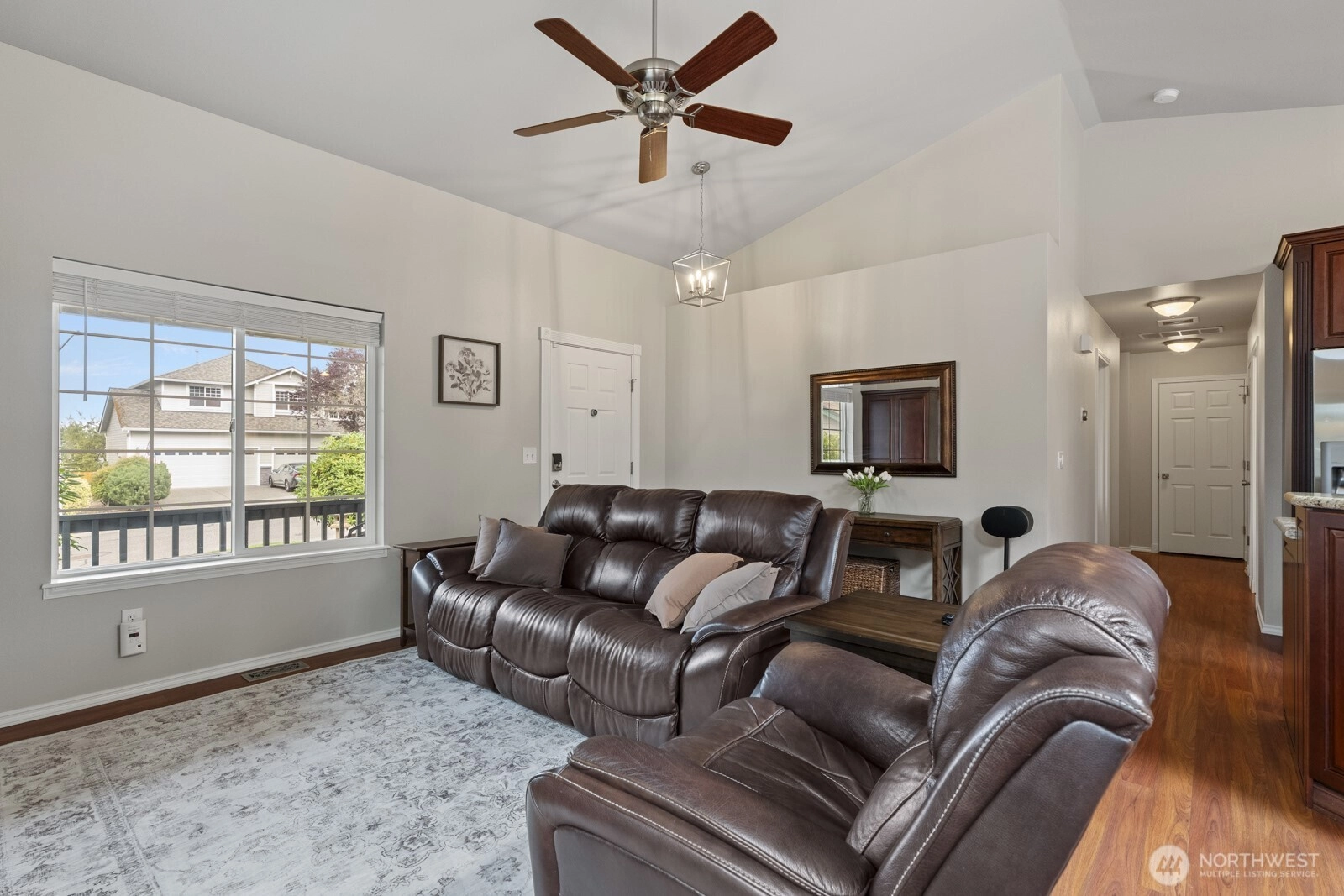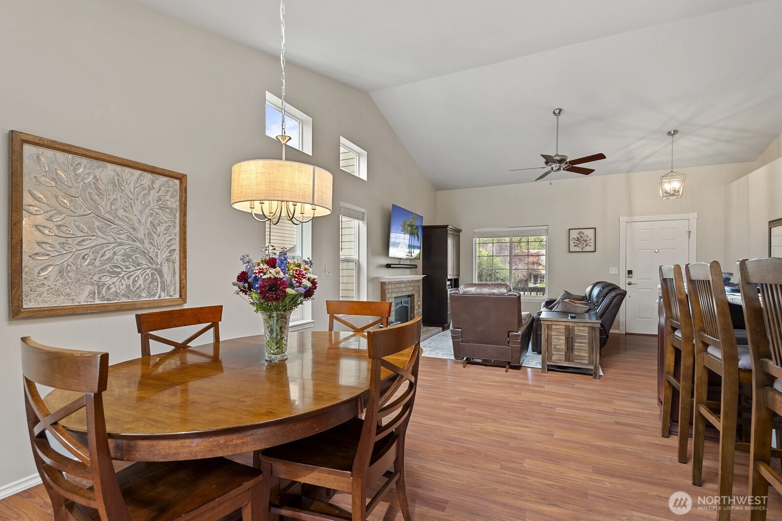 Welcome to Silver Firs! Fall in love with this one-level gem. Located on a quiet street and green belt lot. A covered porch greets you. This move-in ready home has been loving cared for and is ready for its next owner. Updates include fresh interior and exterior paint, presidential roof (approx 2021). New carpet throughout. Newer water heater. The open chef's kitchen offers ample work space and storage, granite counters and stainless appliances. Vaulted ceilings, skylights and an open floor plan provide an abundance of natural light. Cozy gas fireplace. 2 car garage. Entertain or relax in the fully fenced yard with patio. Quick access to shopping, freeways, transit, parks, and schools. Pre-inspected. This is the one!