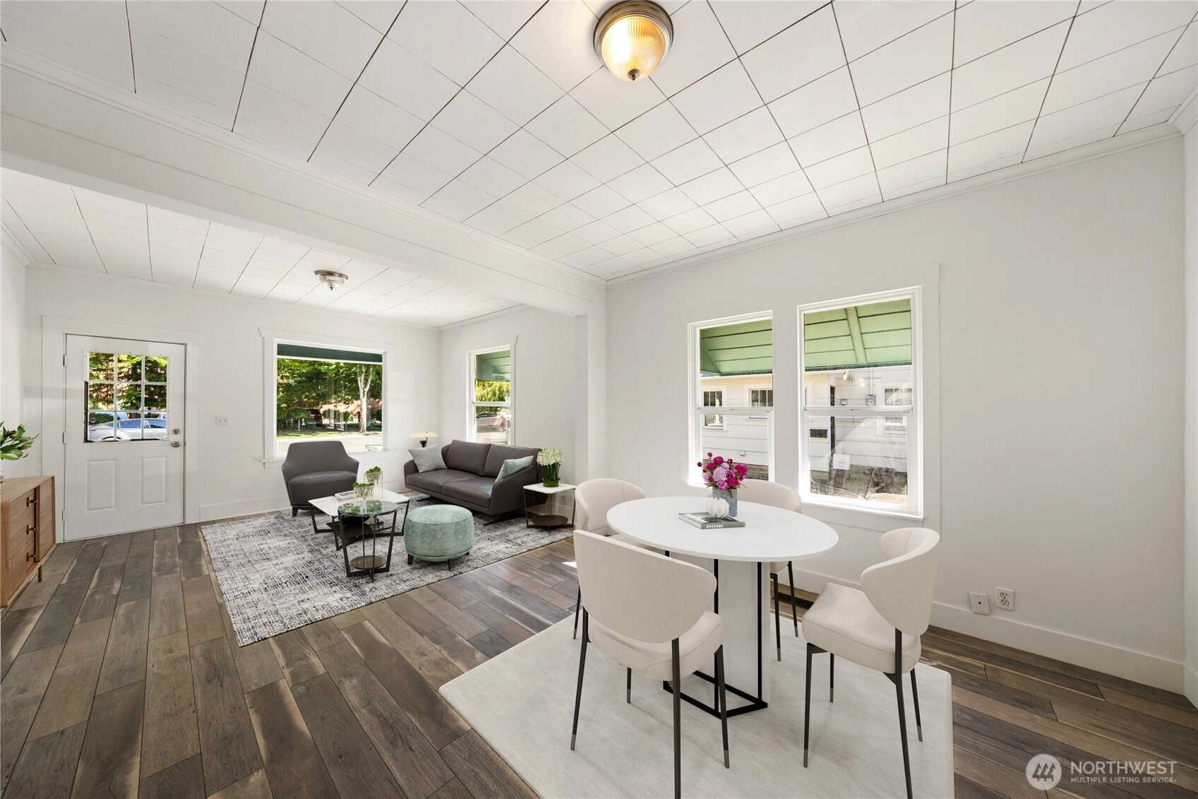 Welcome to this charming rambler in the heart of Sumner! Spacious living & dining rooms feature stylish LVP flooring, while the updated kitchen offers a new quartz countertop, gas stove, & abundant cabinet space. Generously sized bedrooms include built-in drawers, w/ vinyl windows throughout. All appliances convey. Outside, a massive driveway w/ RV parking & a large detached garage/shop with a brand-new roof provide excellent storage & flexibility. Stroll to local coffee shops, restaurants, & boutiques, or catch the nearby Sounder train for easy access to the city. This home blends small-town charm w/ modern convenience. Pre-inspected for peace of mind. A must-see! Don’t miss this opportunity to make this gorgeous house your very own HOME!
