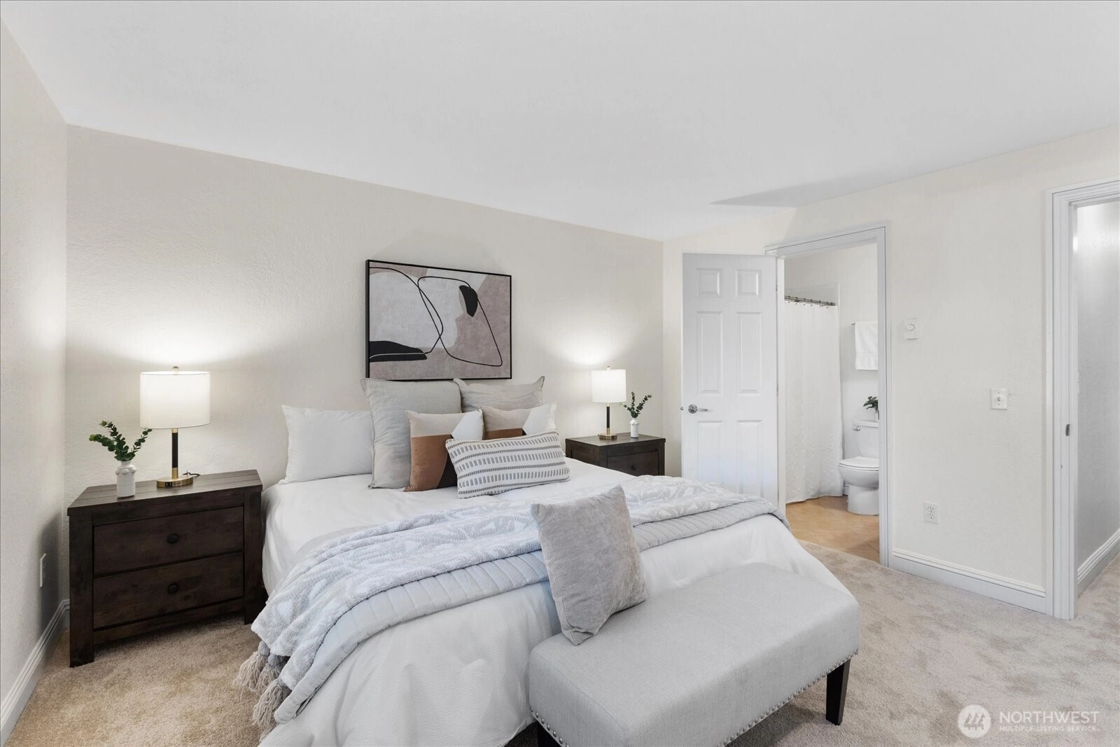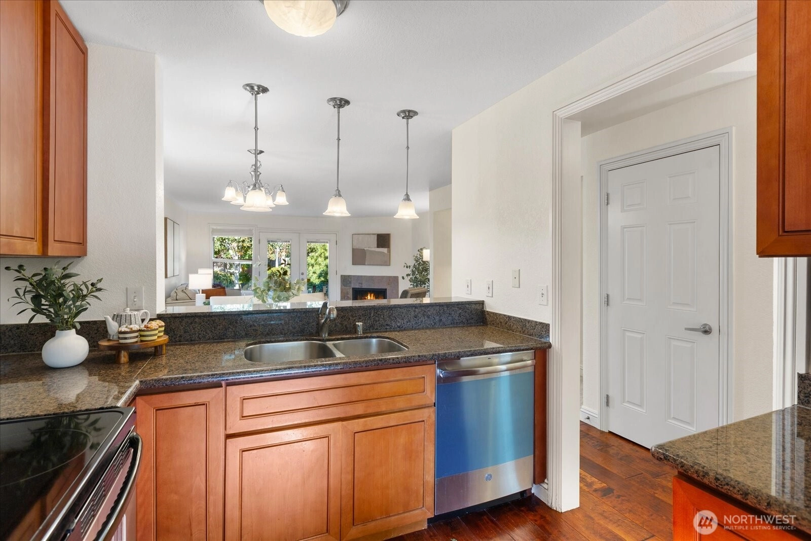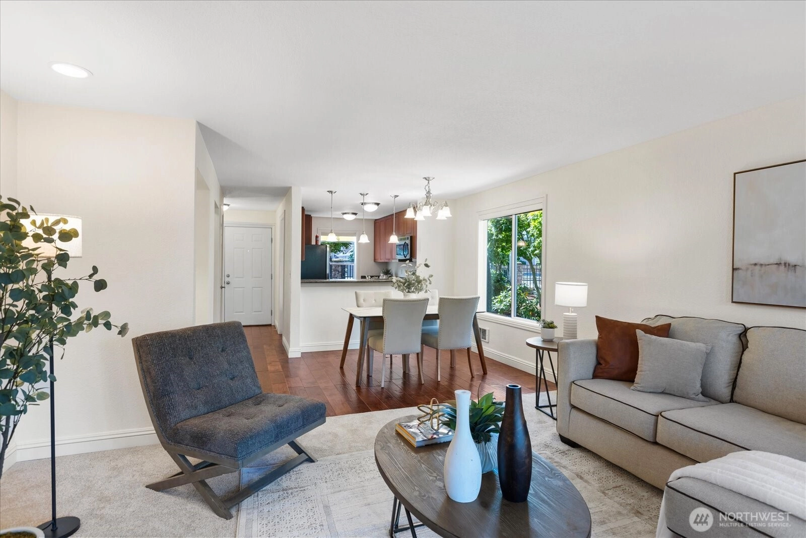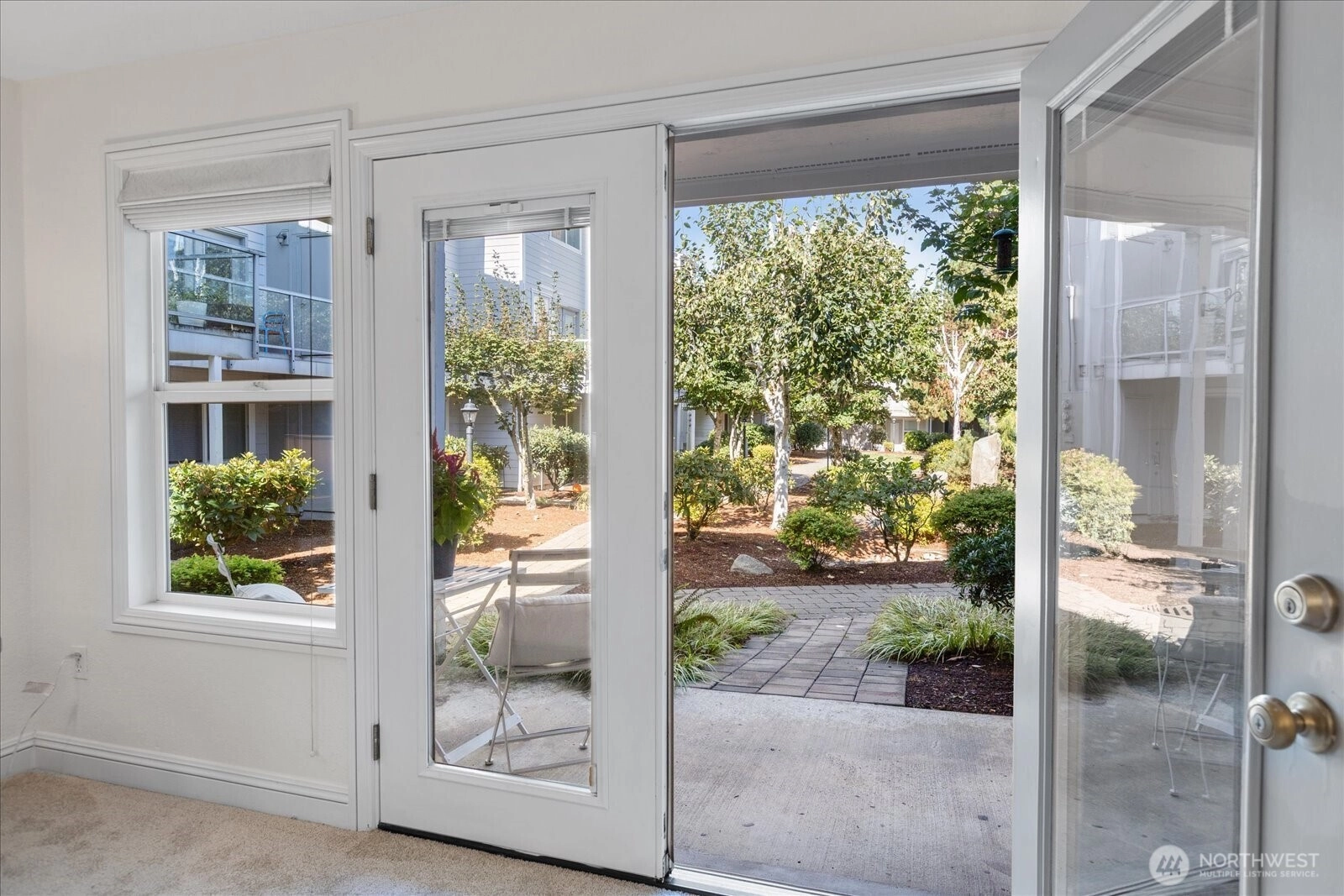 Conveniently located and affordably priced this freshly updated condo is ideal for first time buyers, downsizers (bottom floor, no step entry) or investors (no rental cap). This charming move-in ready home has hardwood floors, new carpet, and new paint. Enjoy preparing meals in your kitchen with granite counter tops, solid wood cabinets and stainless appliances. Living area spills out French doors to patio overlooking courtyard. Primary bedroom comes with ensuite and extra large closet. 2 dedicated parking spaces are close by in this well maintained gated community. Across from Walter Hall Park/Golf Course, easy commute to Boeing, Paine Field Airport, Freeway, shopping and dining. Low HOA dues, pet friendly. Make Memories Here!