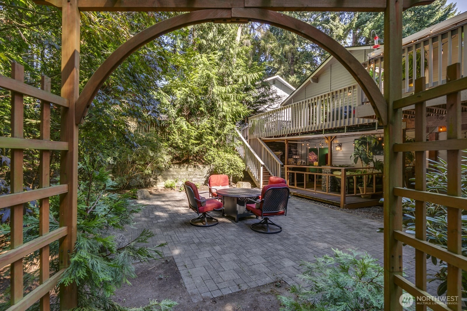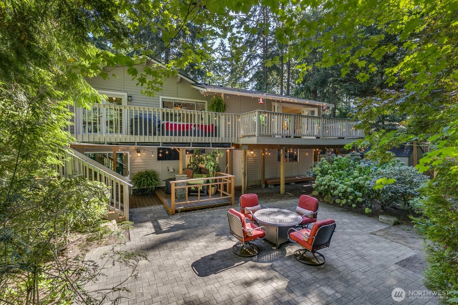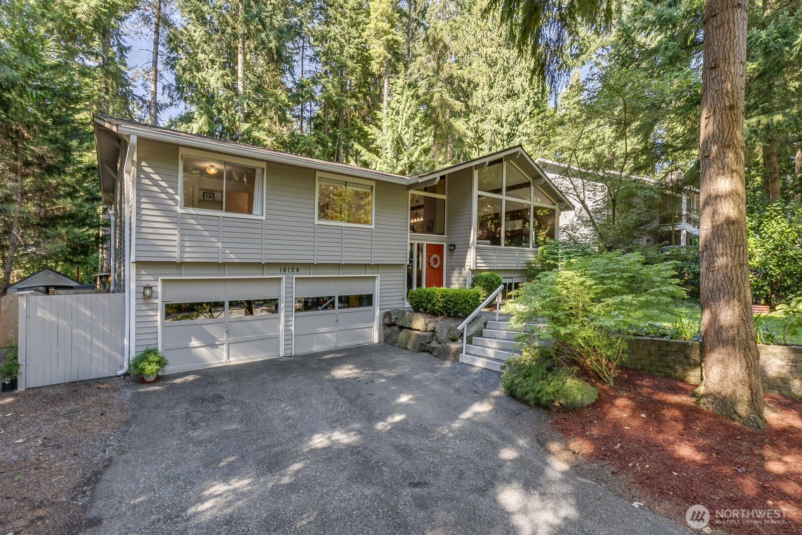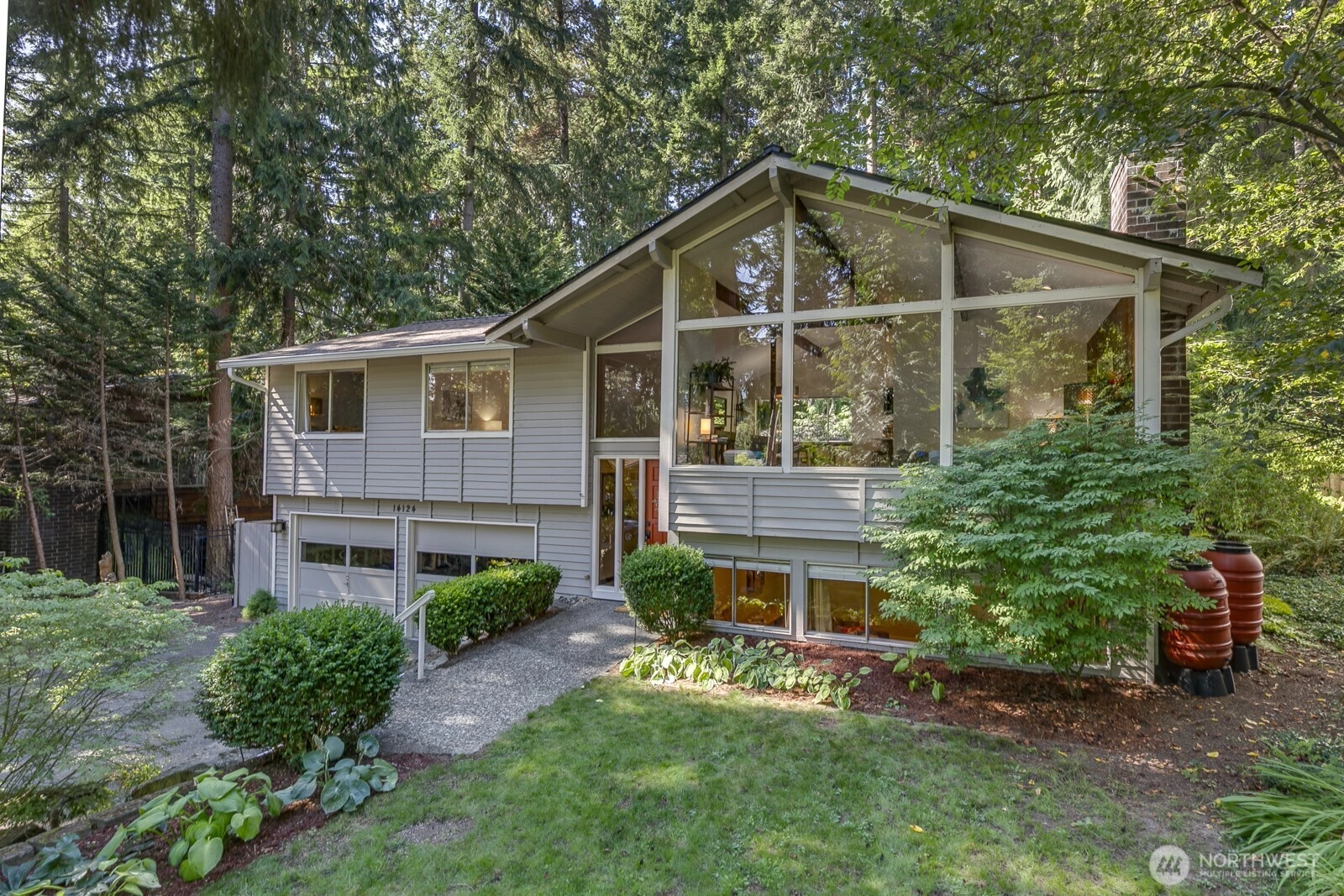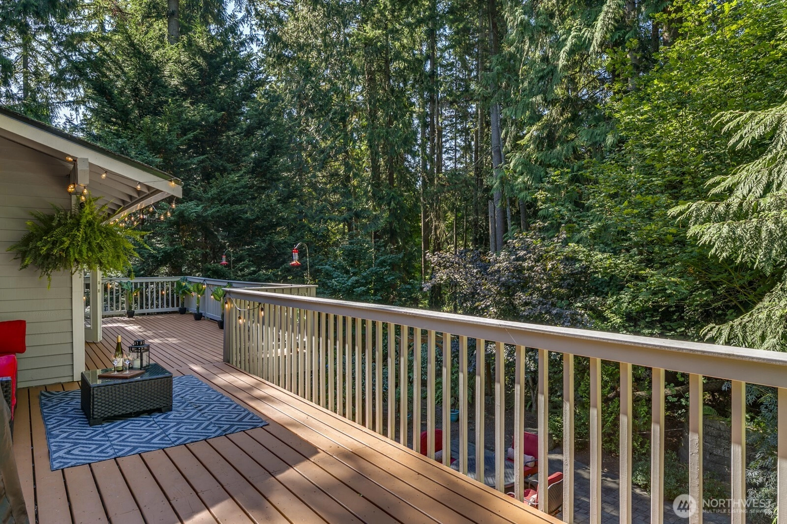 Welcome to this wonderful home in highly desirable Picnic Point. Nature lovers rejoice in this home set amongst the trees, backing to a green belt. Huge floor to ceiling windows & warm interior tones blend with the setting. Multiple French doors open to a full length back deck, outdoor entertainers come hither for the outdoor living space & hardscape complete with bar, TV & firepit. Meanwhile inside, this home features updated kitchen open to living room w/vaulted ceilings and plenty of windows. Downstairs has an awesome rec room & 4th bedroom/office. Neighborhood is highly walkable w/nature trails & arguably the best school in the district. No HOA. 5 mins to beautiful Picnic Point beach. EZ access to shopping centers and commuter lanes.