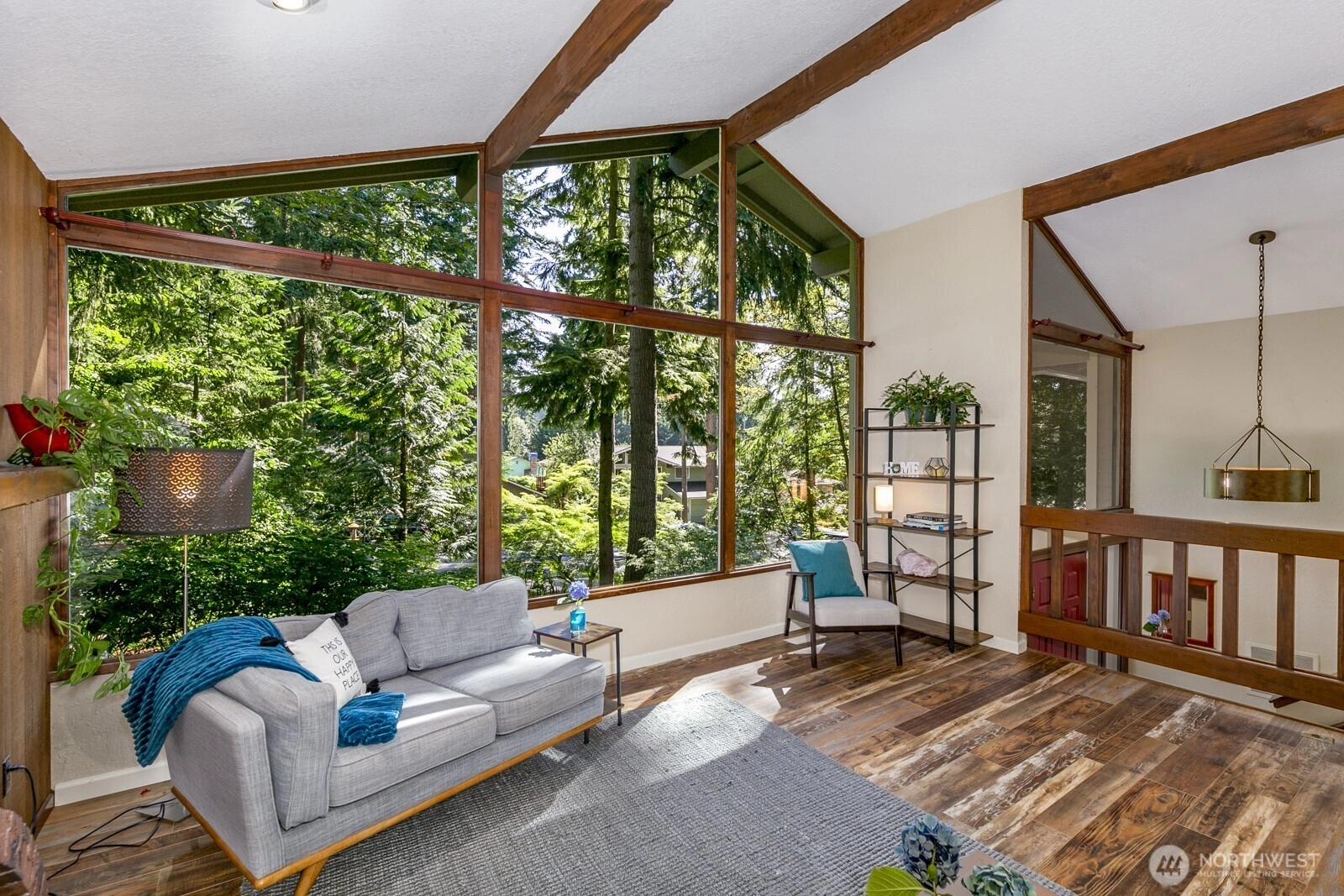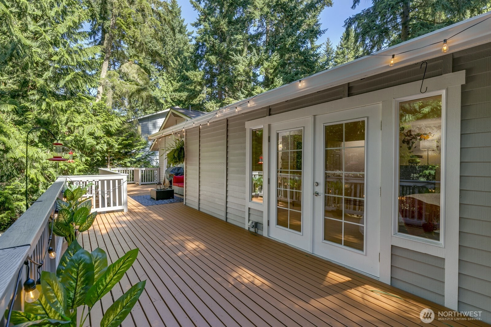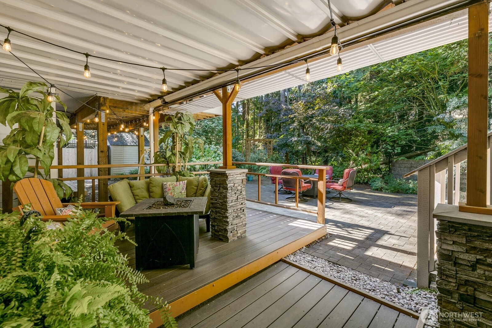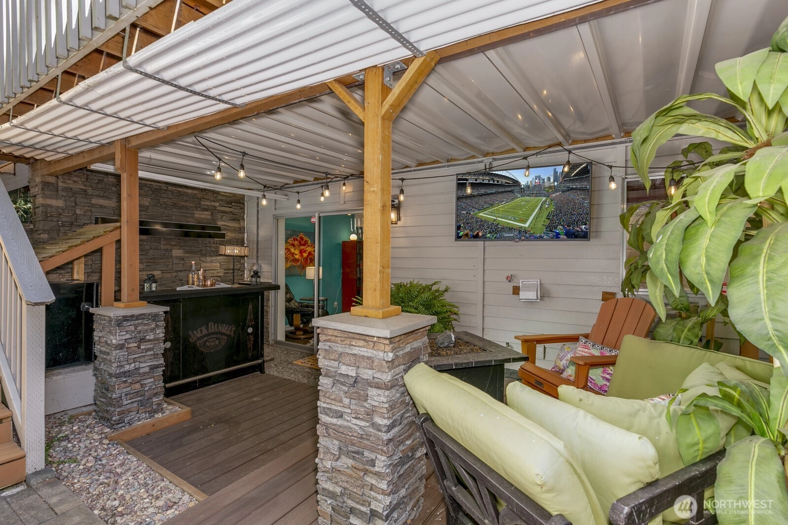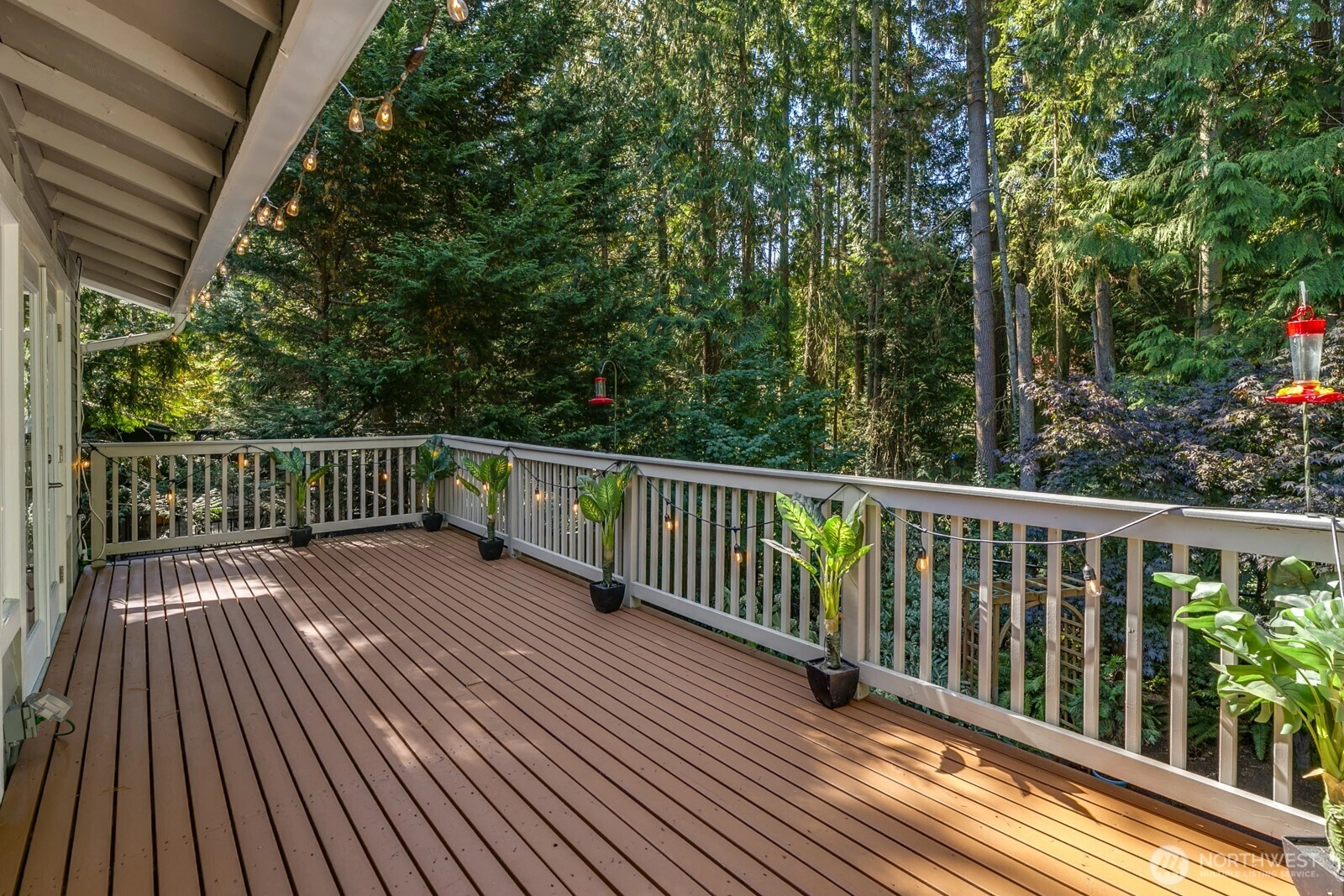 Welcome to this wonderful home in highly desirable Picnic Point. Nature lovers rejoice in this home set amongst the trees, backing to a green belt. Huge floor to ceiling windows & warm interior tones blend with the setting. Multiple French doors open to a full length back deck, outdoor entertainers come hither for the outdoor living space & hardscape complete with bar, TV & firepit. Meanwhile inside, this home features updated kitchen open to living room w/vaulted ceilings and plenty of windows. Downstairs has an awesome rec room & 4th bedroom/office. Neighborhood is highly walkable w/nature trails & arguably the best school in the district. No HOA. 5 mins to beautiful Picnic Point beach. EZ access to shopping centers and commuter lanes.