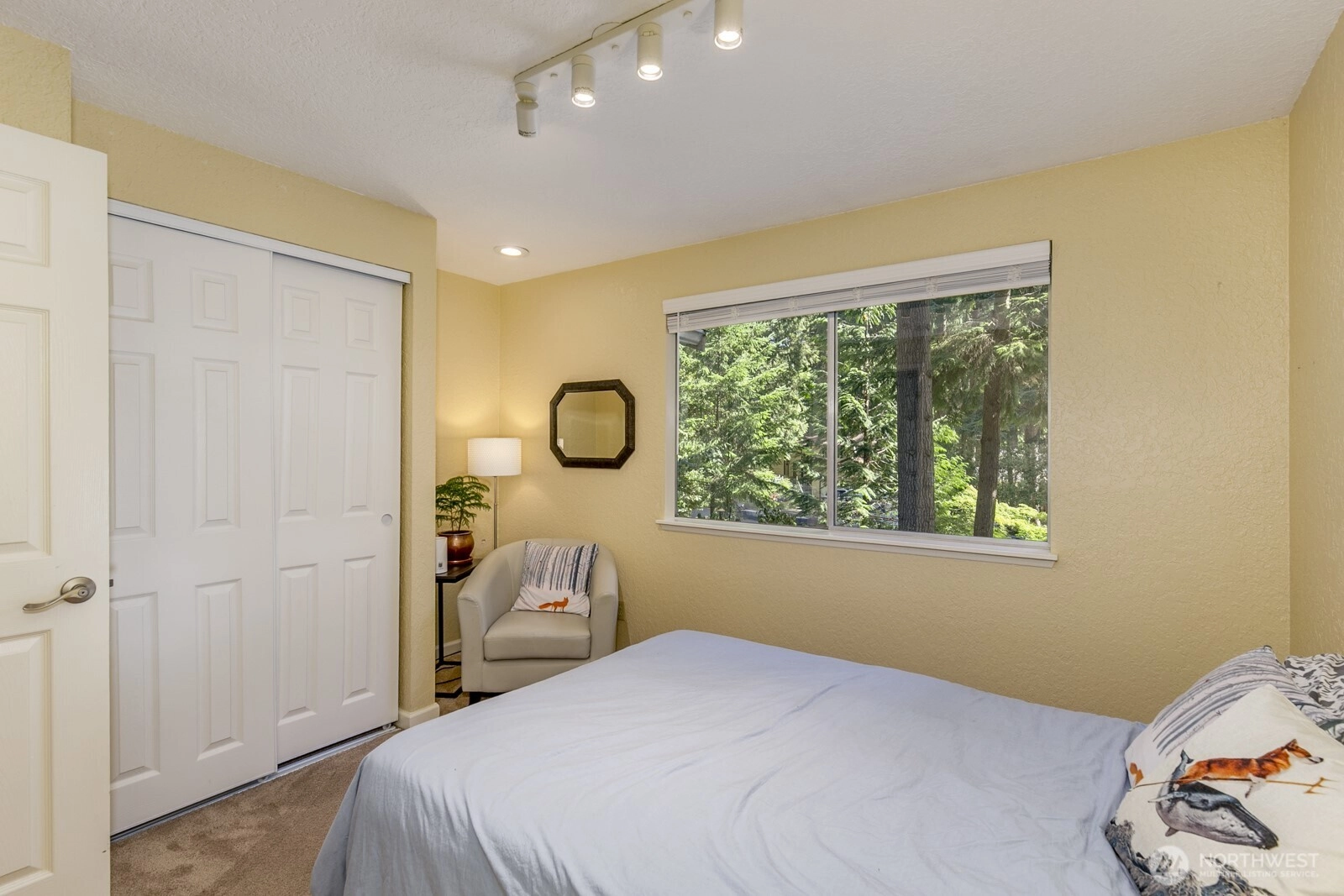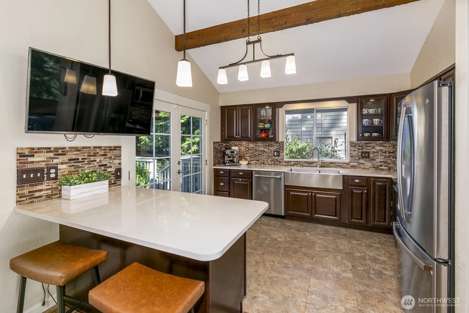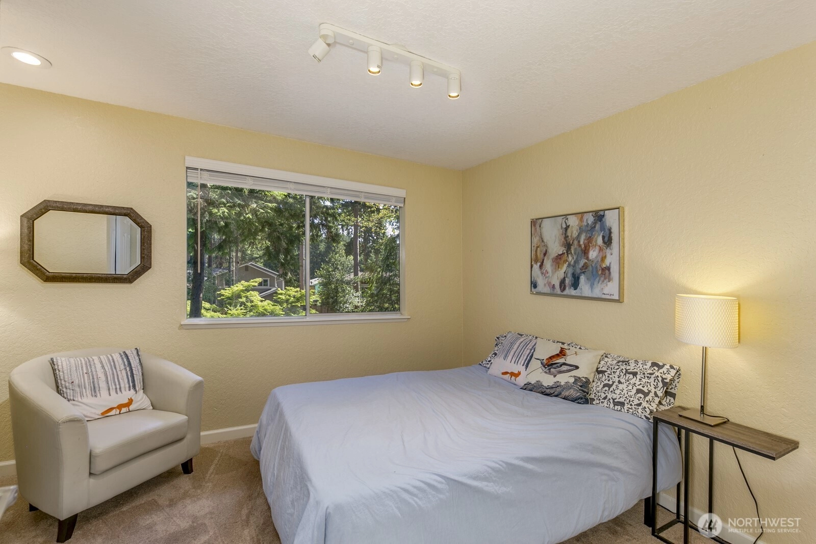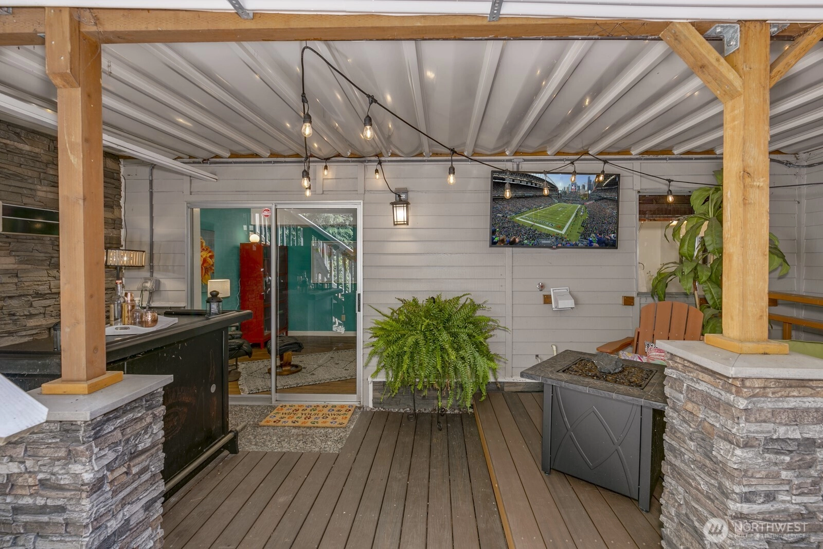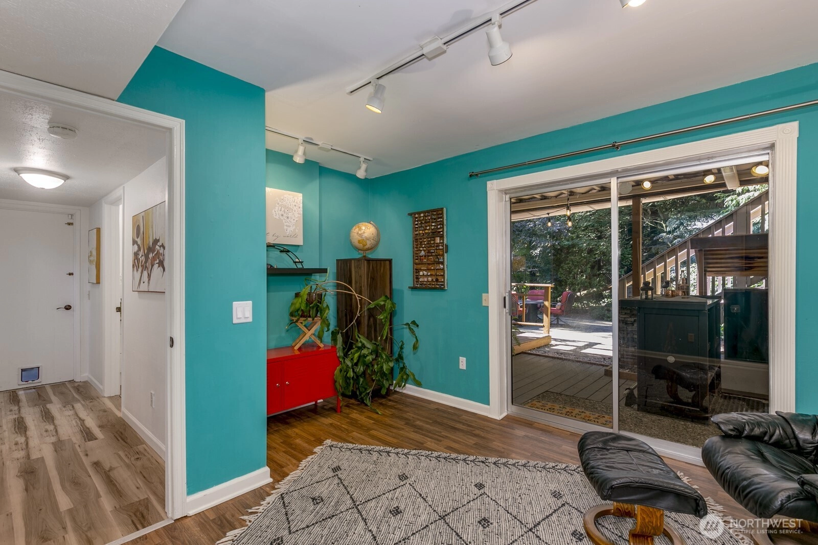Welcome to this wonderful home in highly desirable Picnic Point. Nature lovers rejoice in this home set amongst the trees, backing to a green belt. Huge floor to ceiling windows & warm interior tones blend with the setting. Multiple French doors open to a full length back deck, outdoor entertainers come hither for the outdoor living space & hardscape complete with bar, TV & firepit. Meanwhile inside, this home features updated kitchen open to living room w/vaulted ceilings and plenty of windows. Downstairs has an awesome rec room & 4th bedroom/office. Neighborhood is highly walkable w/nature trails & arguably the best school in the district. No HOA. 5 mins to beautiful Picnic Point beach. EZ access to shopping centers and commuter lanes.