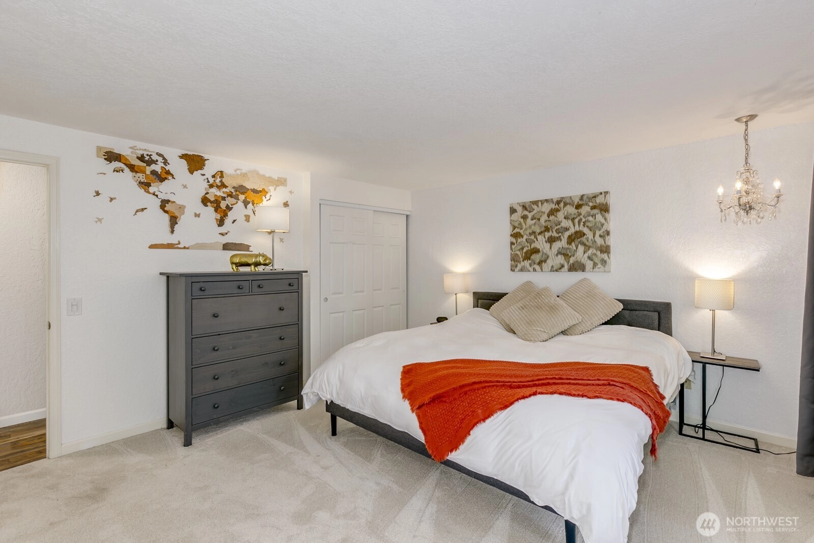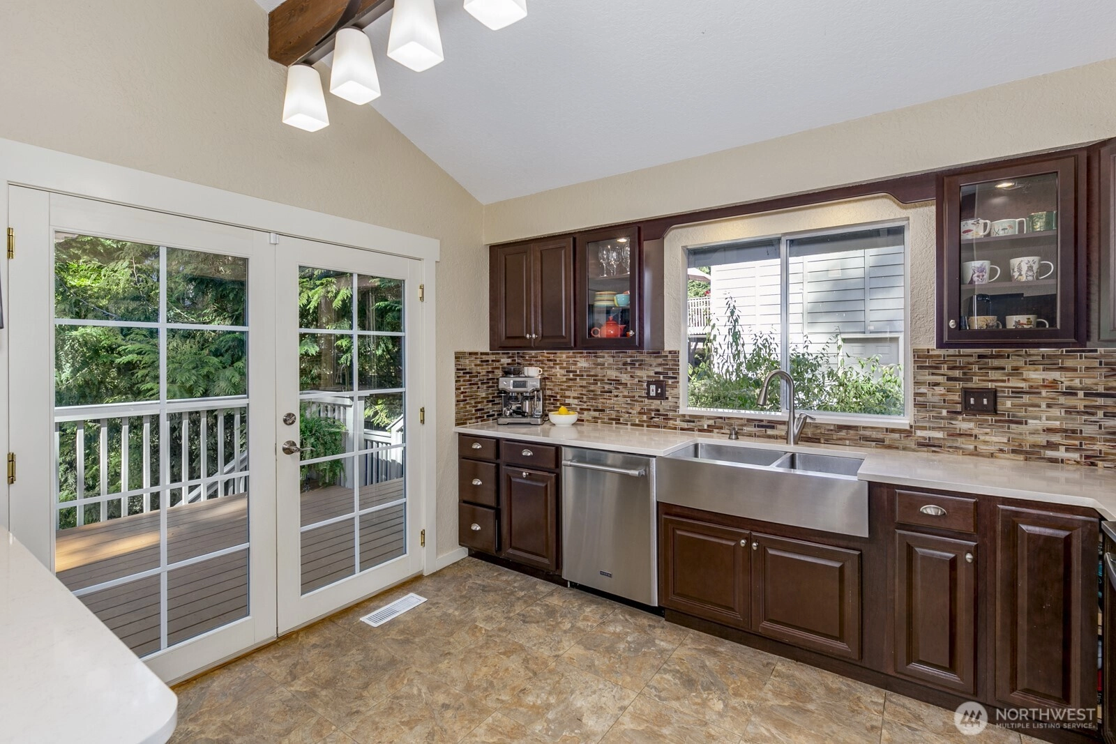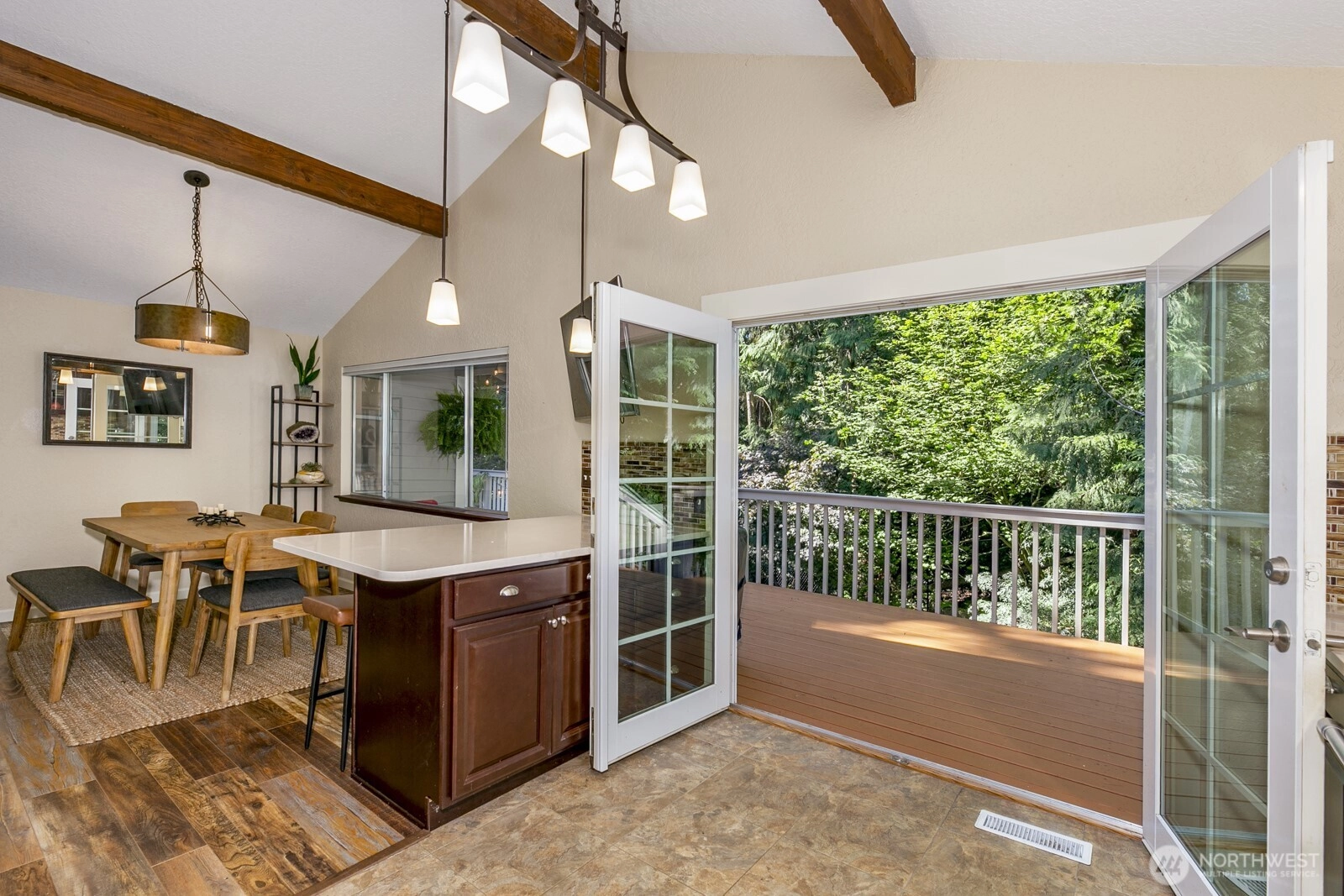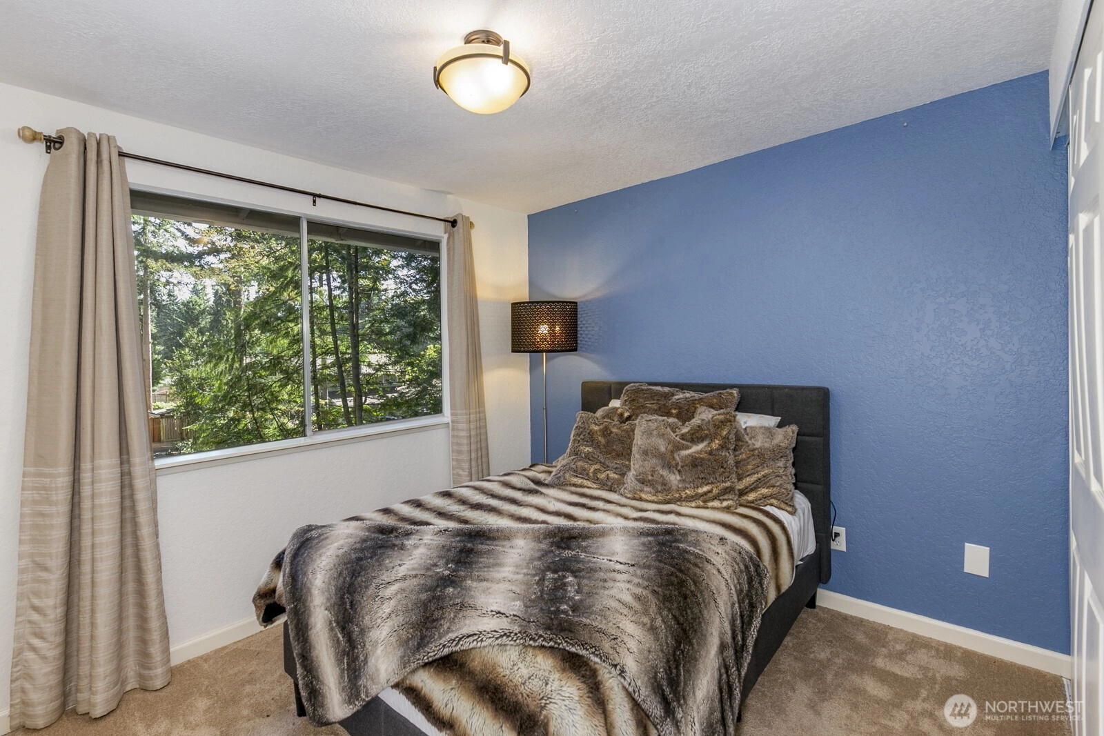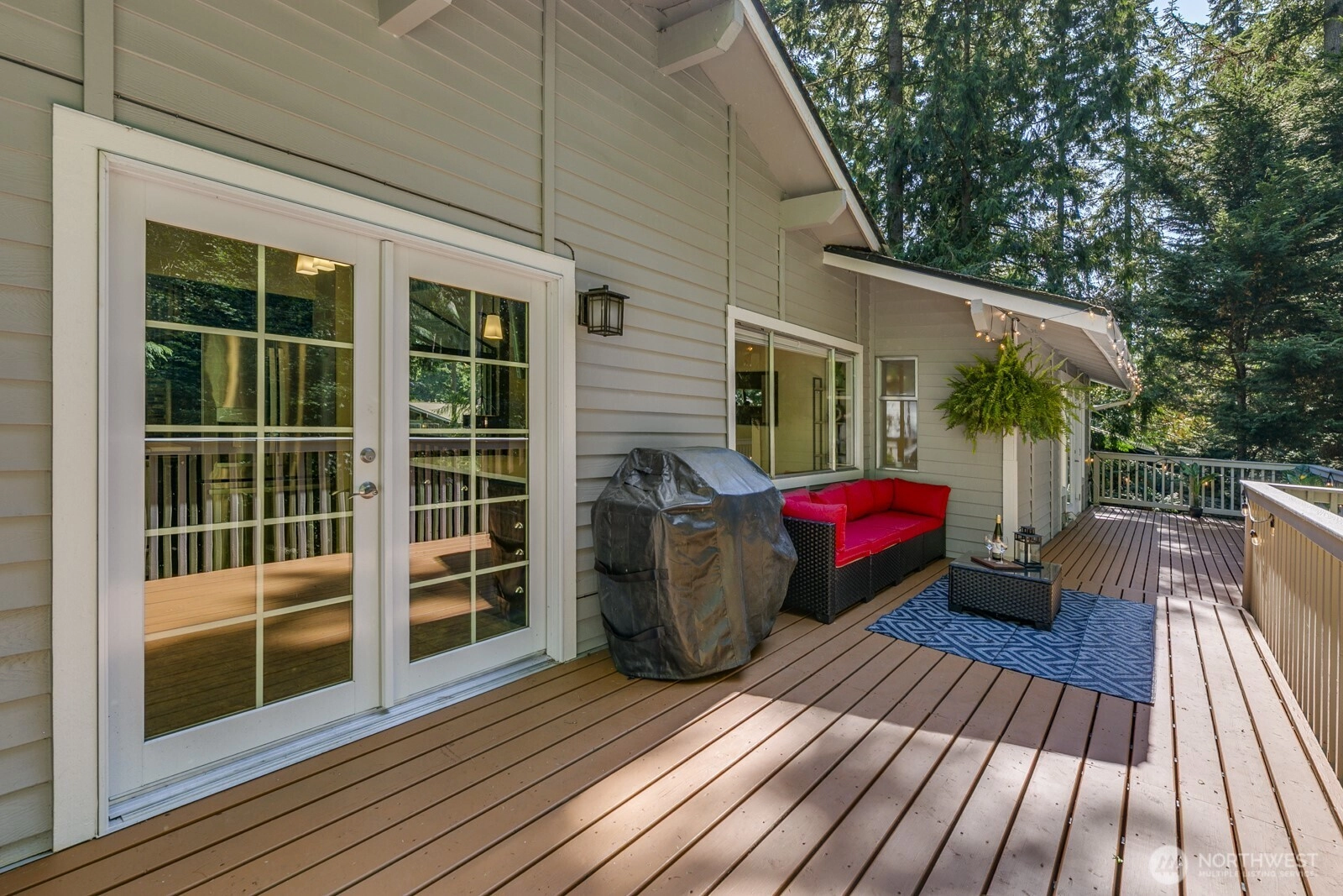 Welcome to this wonderful home in highly desirable Picnic Point. Nature lovers rejoice in this home set amongst the trees, backing to a green belt. Huge floor to ceiling windows & warm interior tones blend with the setting. Multiple French doors open to a full length back deck, outdoor entertainers come hither for the outdoor living space & hardscape complete with bar, TV & firepit. Meanwhile inside, this home features updated kitchen open to living room w/vaulted ceilings and plenty of windows. Downstairs has an awesome rec room & 4th bedroom/office. Neighborhood is highly walkable w/nature trails & arguably the best school in the district. No HOA. 5 mins to beautiful Picnic Point beach. EZ access to shopping centers and commuter lanes.