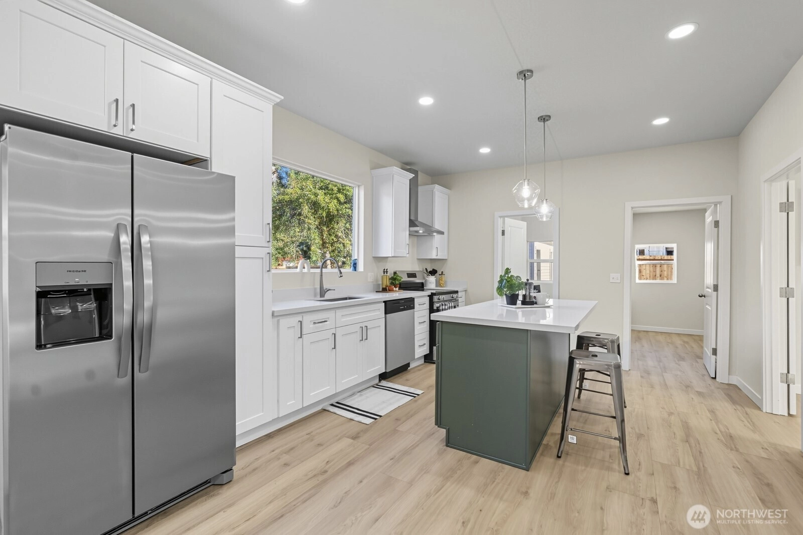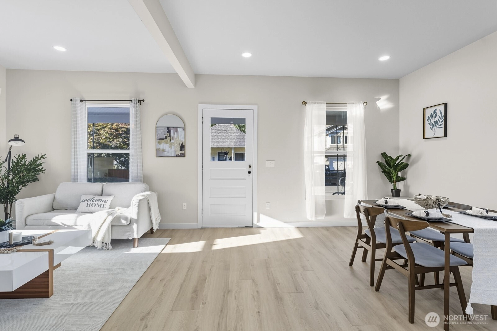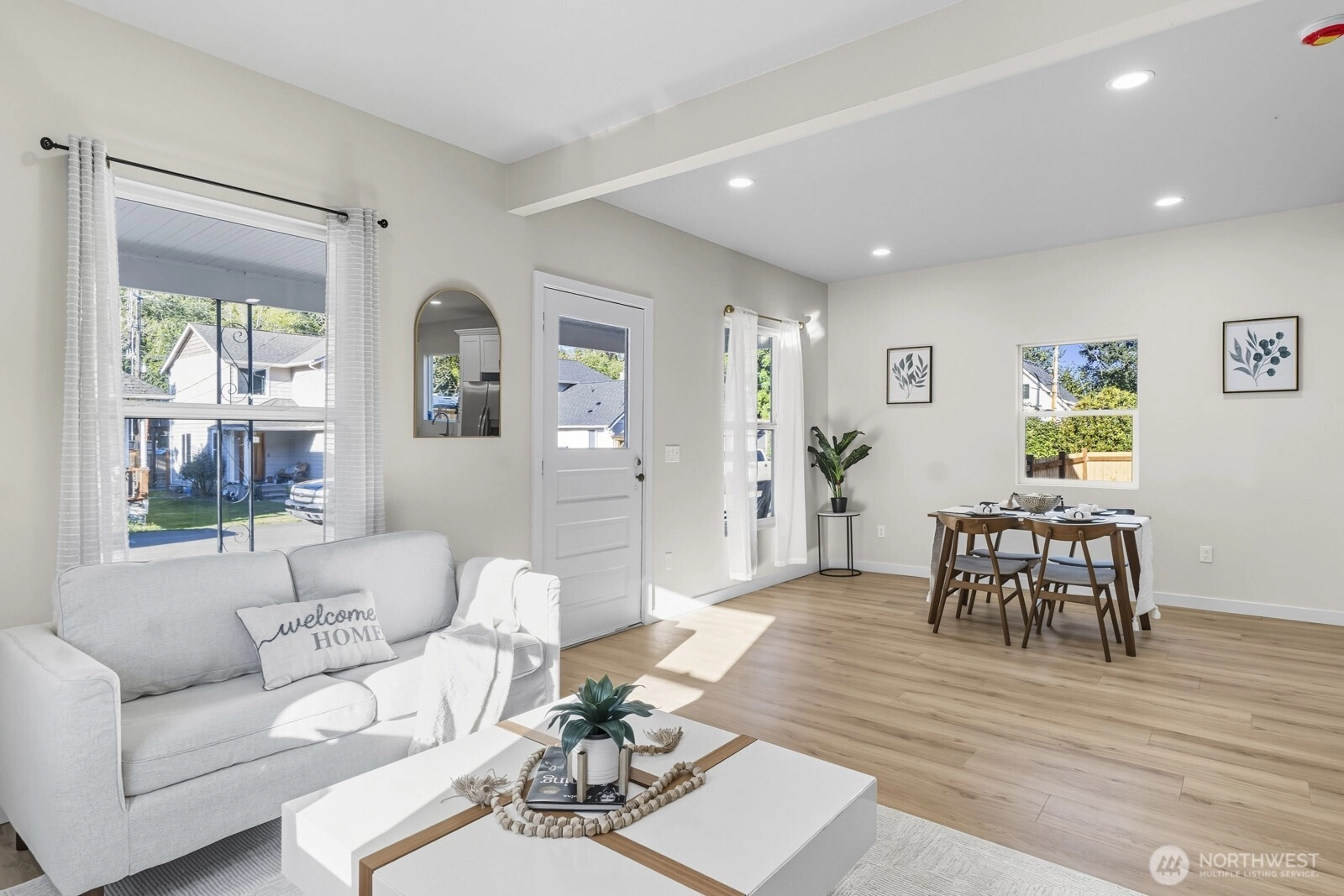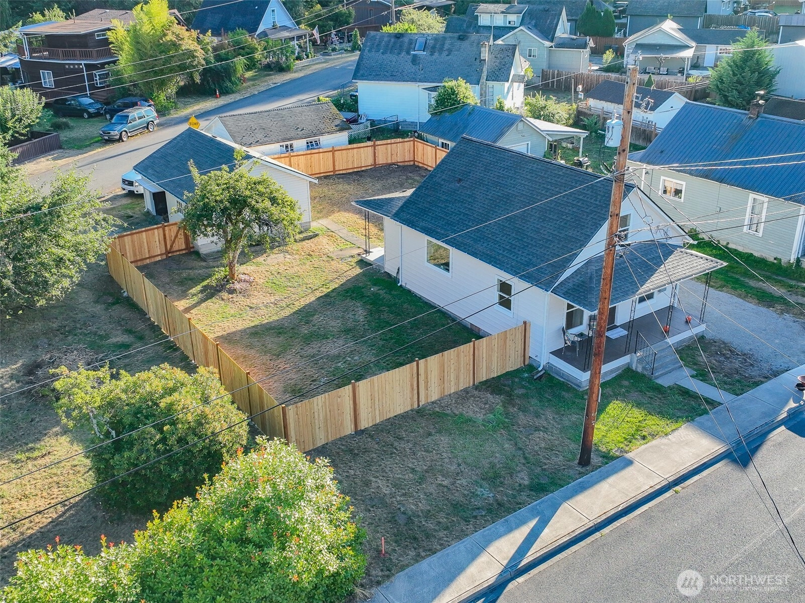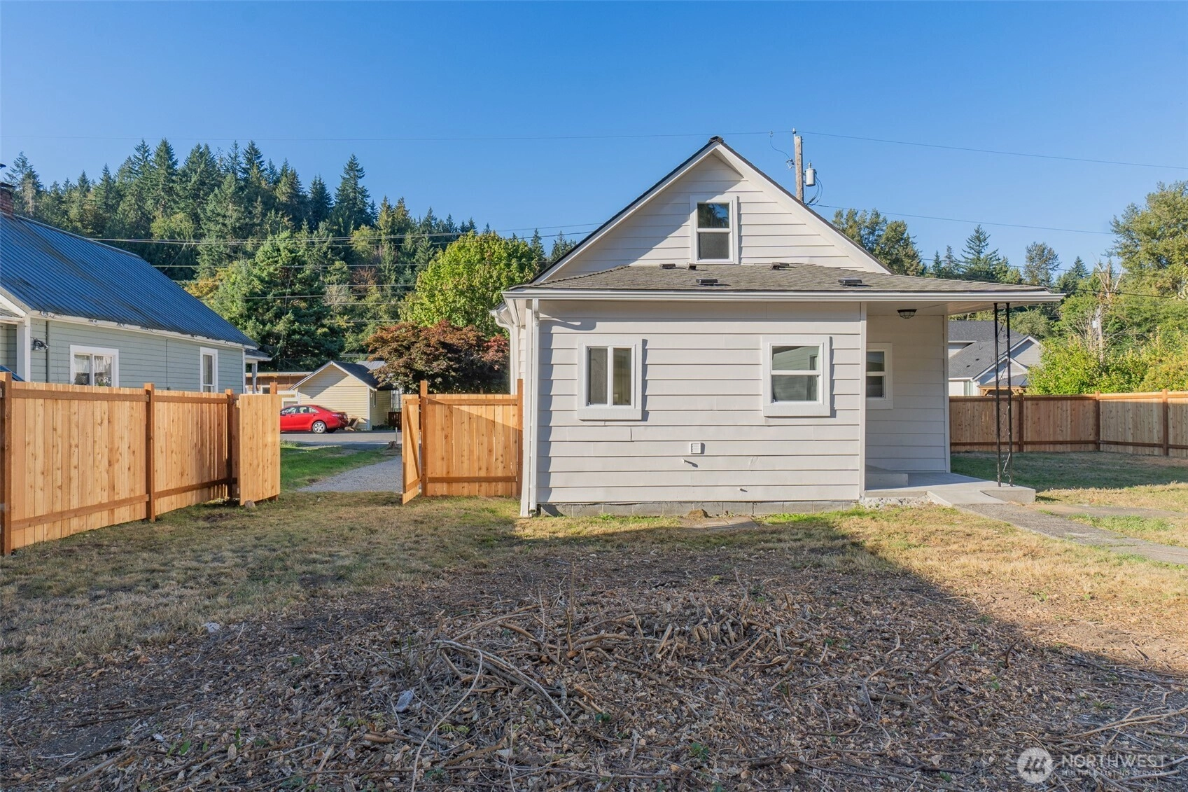 Welcome to Historic Wilkeson where life feels rural yet amenities are close. This fully permitted remodel blends history with modern comfort. Step inside the timeless front door to an open floor plan with 9 ft ceilings and large windows that captivate the home with natural lighting. Primary suite and shared bath on main plus two bedrooms upstairs. Enjoy the covered front porch or back patio year round. Detached 480 sq ft shop fits vehicles and hobbies. Large, fully fenced lot with RV parking. Updates include new roofs, HVAC with heat pump (A/C), flooring, cabinets, wiring, plumbing and more. Nearby public park, breakfast skate park, and town restaurants. Just 15 minutes to Costco, Walmart, Buckley, and Bonney Lake. Preinspected
