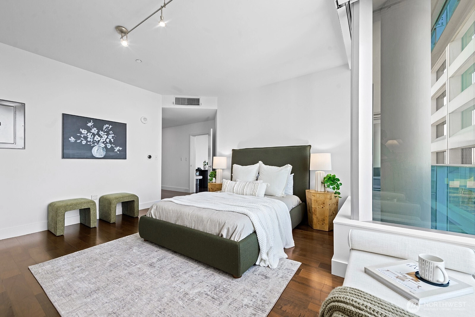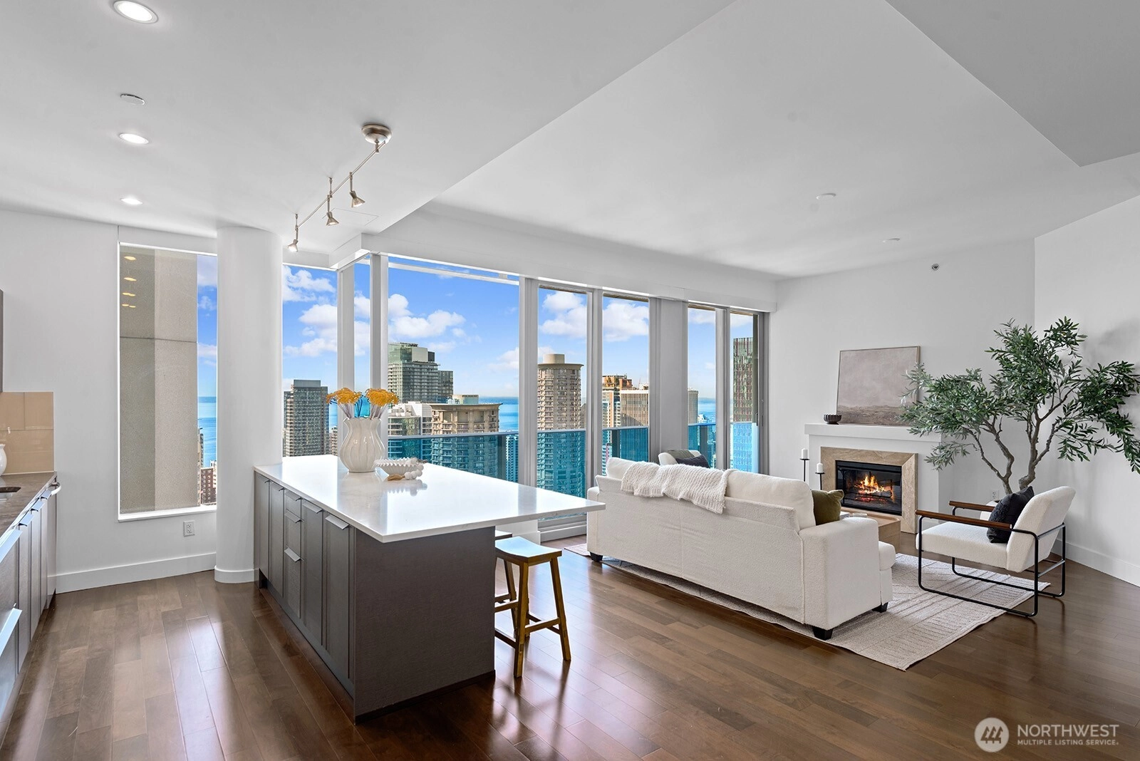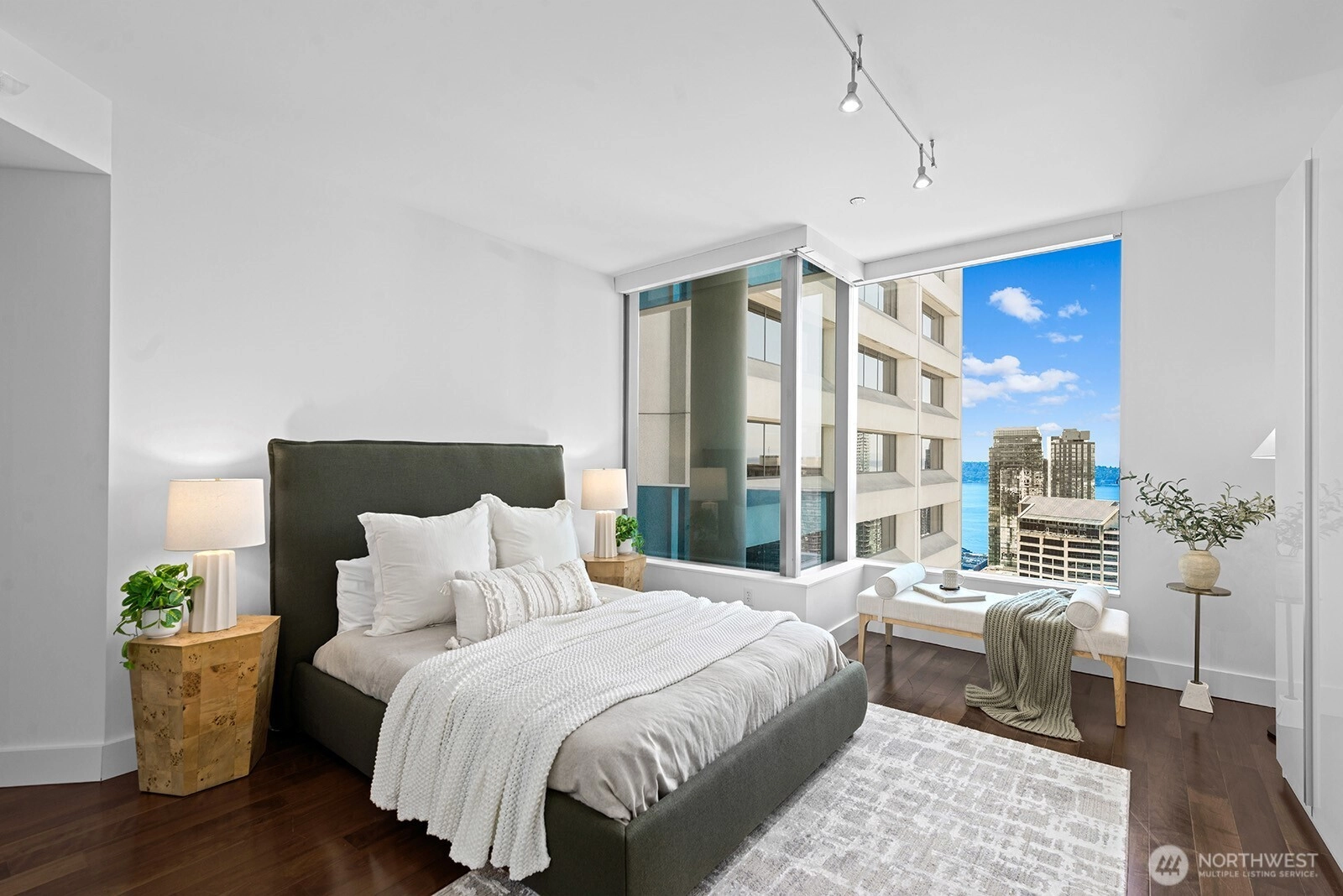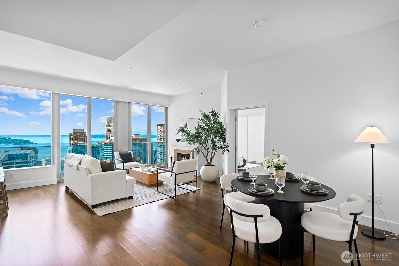 Luxury Seattle condo living at its finest. Rare, custom-designed 35th-floor residence above the Hyatt with sweeping views of Puget Sound, Olympic Mountains & city sunsets. This 1 bedroom + flex room, 2 bath home features an open floor plan, sleek chef’s kitchen, dining area & private terrace perfect for entertaining. Primary suite offers a spa-inspired marble bath & custom closet system. Includes 2 secure parking spaces (1 EV-Charger), 2 storage units & access to premium high-rise amenities. Steps to Pike Place Market, fine dining, shops, theaters & light rail—experience the best of downtown Seattle luxury living.