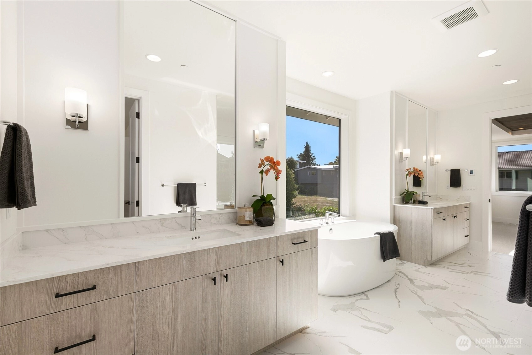 JayMarc Homes presents The Sycamore—set on a quiet cul-de-sac and crafted for modern luxury. Open-concept living shines with a soaring two-story great room, 10-ft ceilings, and a chef’s kitchen boasting Bertazzoni, Sub-Zero, Bosch, and Whirlpool appliances. A main-floor guest suite opens to a private patio, while the mudroom with bench and storage adds everyday ease. Upstairs, the lavish primary retreat features heated floors, dual vanities, soaking tub, custom bench shower, and an extensive walk-in closet. Bonus and media rooms with wet bars, beverage centers, and built-in speakers create ultimate entertainment spaces. Smart home prewire, Sonos, and Luxul WiFi enhance convenience. Zoned to top-rated Newport High.