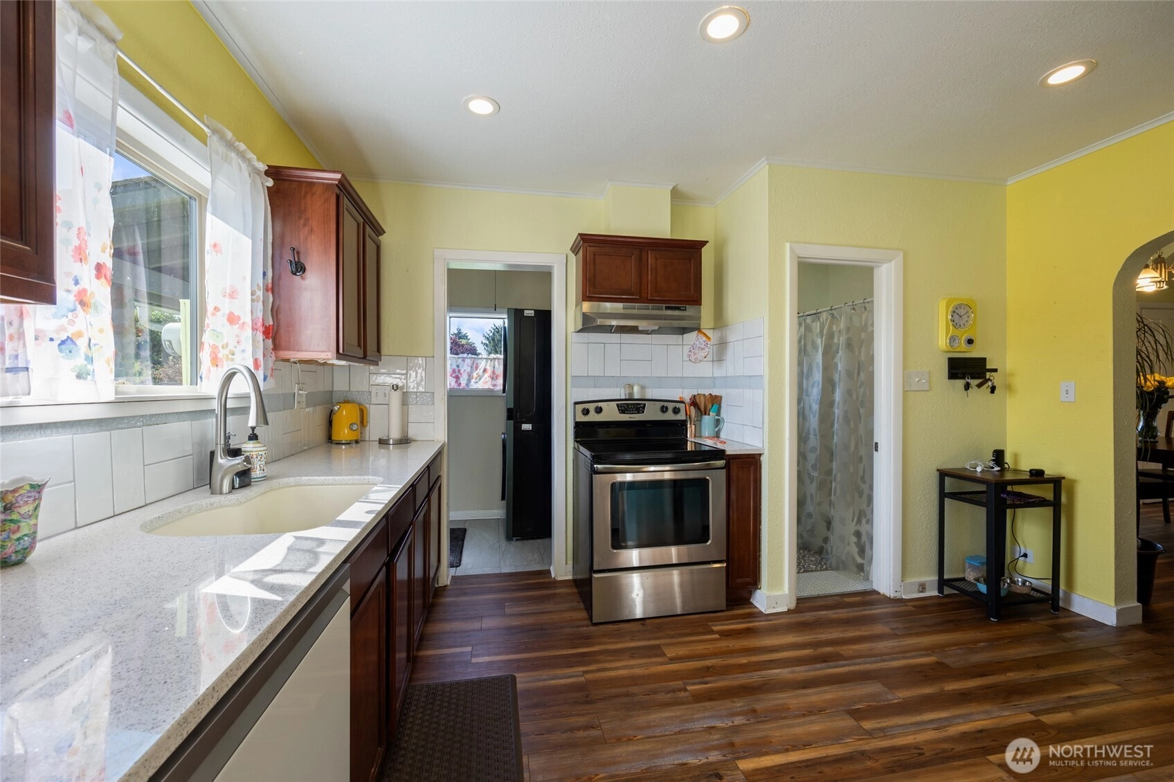 This delightful three-bedroom home sits on an oversized lot with plenty of space for an RV, garden, or dog run. Inside, you’ll love the spacious kitchen with a breakfast nook and coffee bar, plus a formal dining room that opens to a covered deck and expansive yard—perfect for entertaining. High ceilings, a classic stairway, and a cozy living room complete the inviting main floor. Upstairs, find two generously sized bedrooms with abundant closet space for all your storage needs. Conveniently located near shopping, Cedar Street Park, and the community boat launch at Plummer Lake. Easy freeway access makes commuting a breeze. Why rent when you can own this Craftsman charmer?