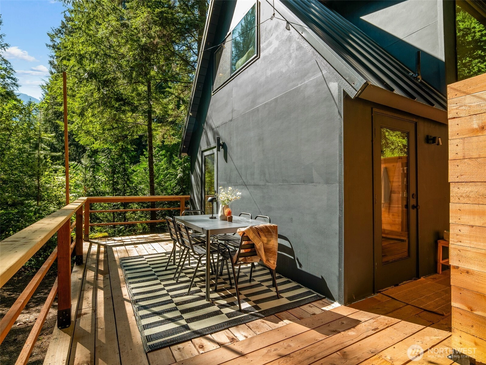 Tucked in the heart of the North Cascades, this reimagined Scandi-inspired cabin offers a refined mountain escape. Clean Nordic design showcases vaulted ceilings, expansive windows, hardwood floors, and sleek wood stove. Designer furniture and finishes elevate every detail. Unwind in the spa-like indoor/outdoor bathroom. Expansive decks extend the living space outdoors, leading to a landscaped fire pit and lounge area—perfect for stargazing and entertaining. Located in Marblemount, gateway to the American Alps, the property provides rare seclusion with easy access to world class hiking, fishing, and the Cascade River just steps away. Fully furnished and turnkey, it’s ready as a private retreat, mountain getaway, or luxury vacation rental.
