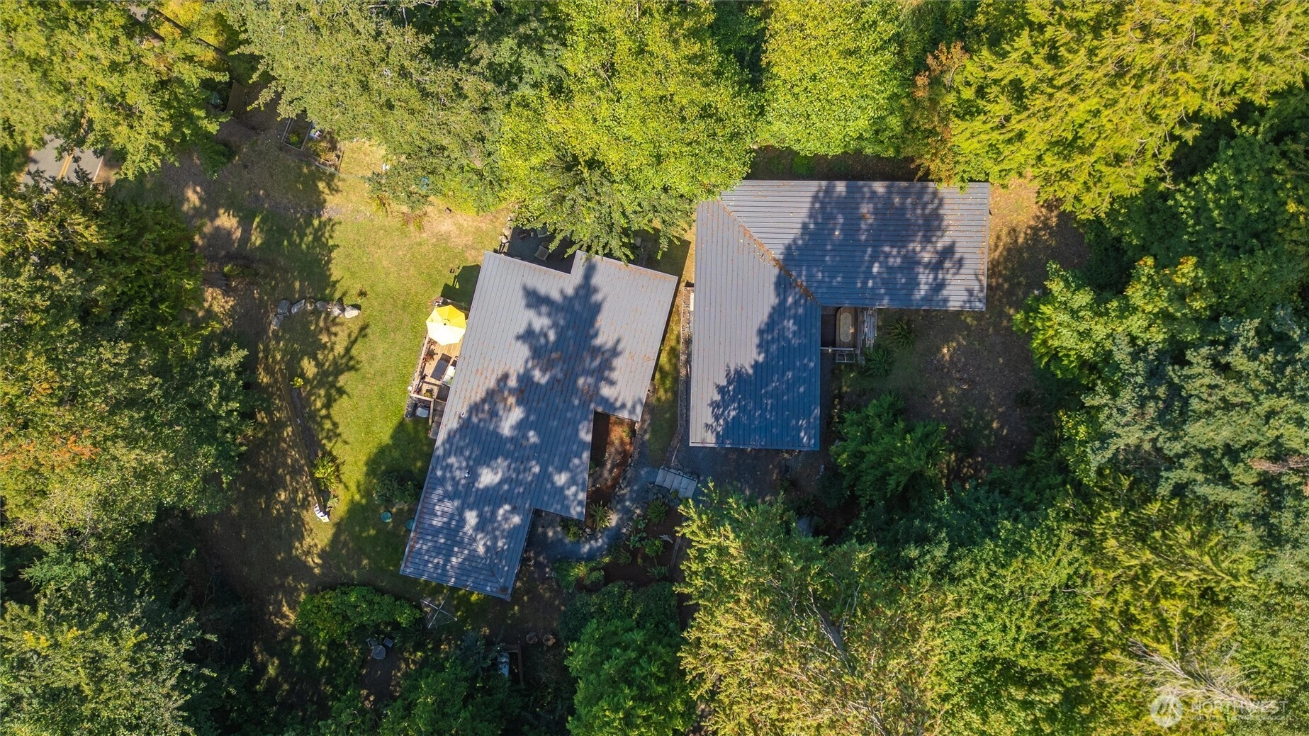 Westside 1.2 acre retreat w/ easy access to sandy beach, sunset & island views, + exceptional privacy. Johnston Architect-designed & locally built, this 2,800 sq ft home blends craftsmanship w/ comfort. Interiors feature radiant-heated concrete & wood floors, custom cabinetry,& fine wood trim, w/ expansive windows capturing the vistas. Outdoor living includes a built-in kitchen, soaking tub behind a torii gate, & shower. Landscaped w/ Pacific Northwest plantings & designed for indoor-outdoor flow. The shop-sized garage offers high ceilings for boats plus generous work areas for artists, woodworkers, & hobbyists +EV charger. Detached studios have a proven short-term rental history, making this both a sanctuary & a lucrative investment.