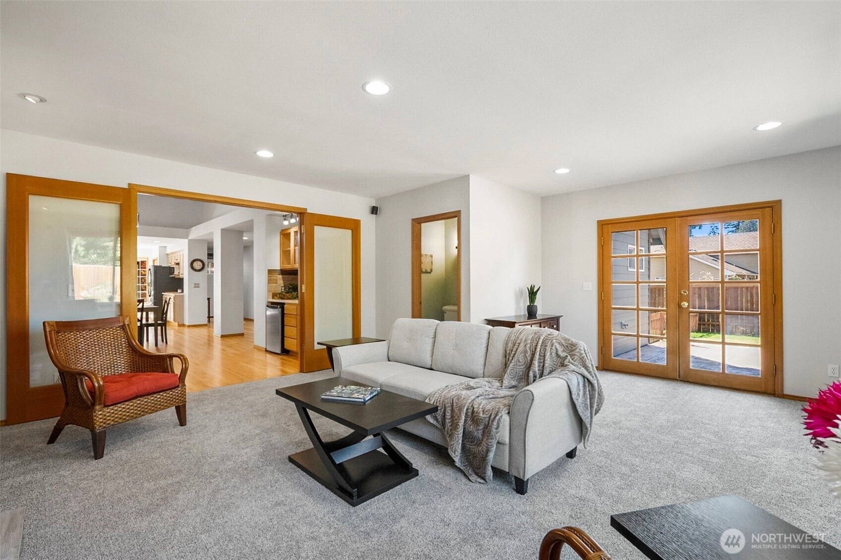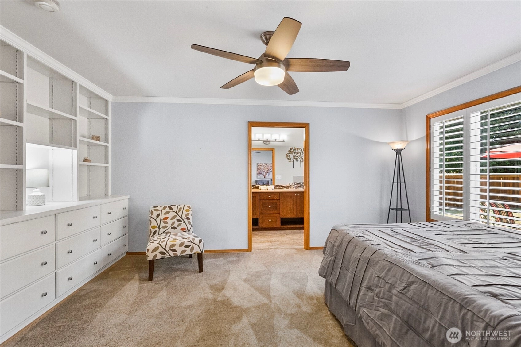 Outstanding Community of Gold Creek. Rambler with bonus room & office on upper level. 3 bedrooms & 2.5 bathrooms. Updated kitchen w/quartz countertops, full backsplash, pantry & French doors to front patio. Great room/dining space w/vaulted ceiling, hardwood floors, wet bar w/quartz counter, glass faced cabinets & beverage fridge. Large family rm w/French doors, built-in cabinets, gas frplc, 2nd set of French doors to beautiful yard w/entertainment patio. Primary suite w/built-in cabinet, walk-in closet, gorgeously updated 5-piece bath w/quartz counters, soaking tub & luxurious shower. Bonus rm w/skylights. AC, RV parking & sprinkler system. Parks, tennis courts & walking trails. Excellent schools! $10,000 buyer closing cost credit!