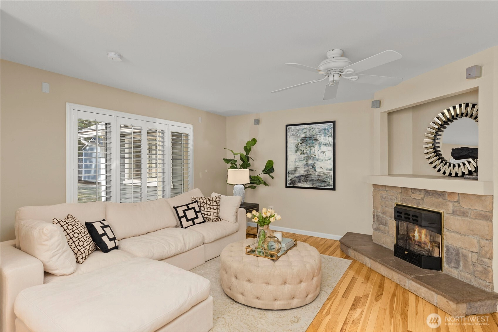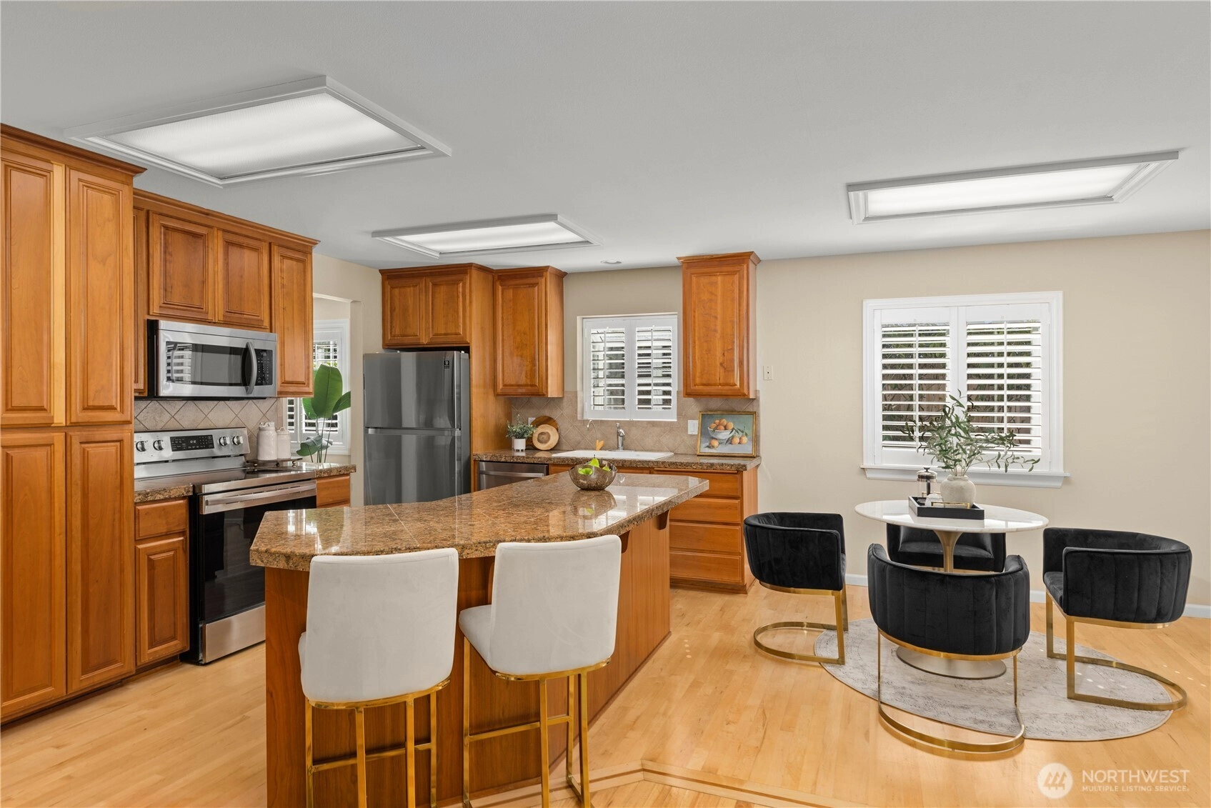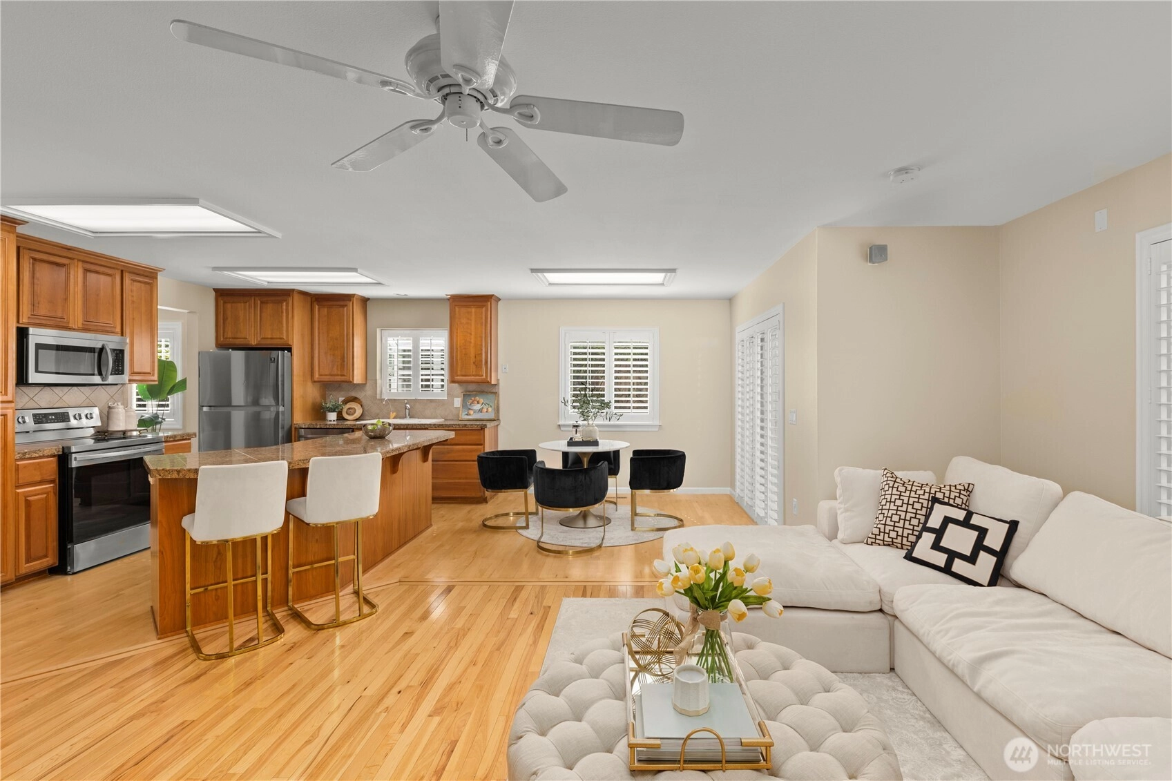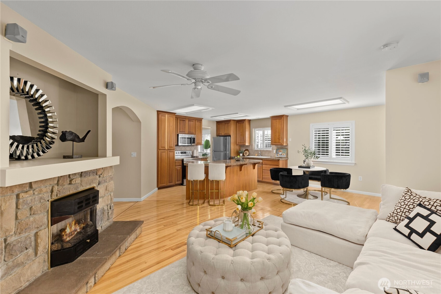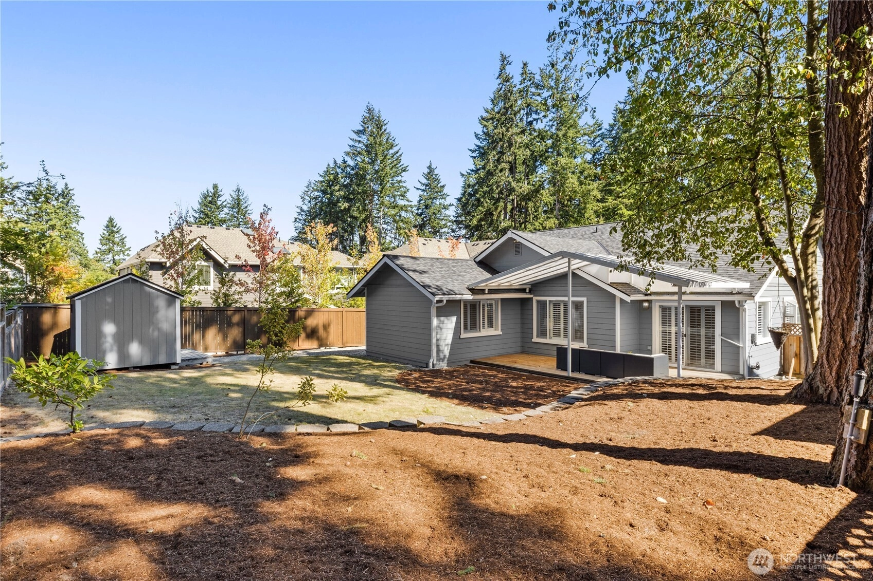 Rare find 2000-built Rambler in Bellevue’s Microsoft community! Lovely, well-maintained 3BR+Den/1.75BA, 1,990sqft on 10,675sqft flat lot. Hardwood flrs, newer roof (2023), fresh exterior paint (2024), new furnace & AC (2025). Cheerful Living Rm flows into formal Dining w/chandelier. Island Kitchen opens to nook and cozy Family Rm with fireplace & built-ins, leading to a fenced back yard w/covered patio—perfect for year-round entertaining. Spacious Primary Suite w/walk-in + 2 his/her closets. Built-in desk & Murphy bed— ideal office/guest rm. Washer/Dryer in Utility Rm. 2-car garage & long driveway parking! Quiet, walkable Overlake/NE Bellevue neighborhood near Microsoft, Overlake transit Center, parks, SR-520 and top-rated Bellevue schools!