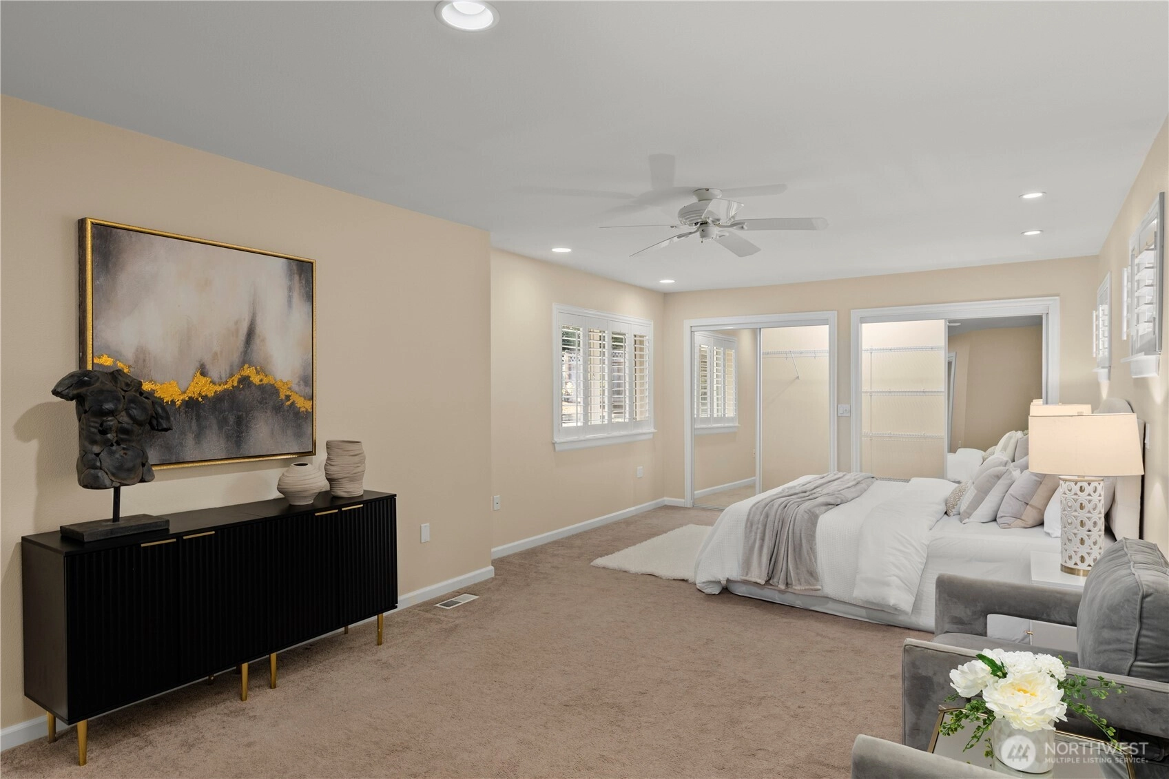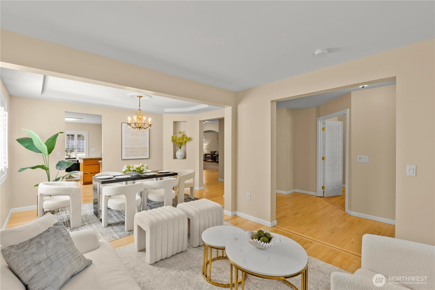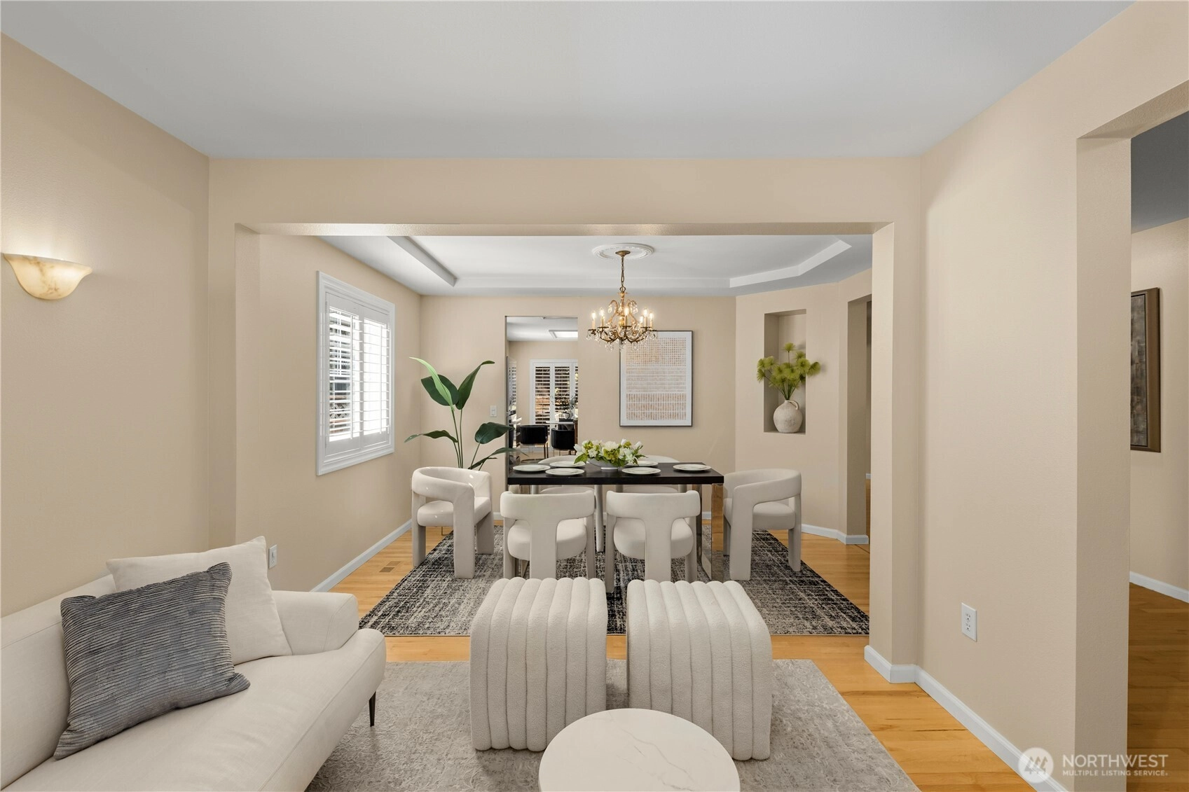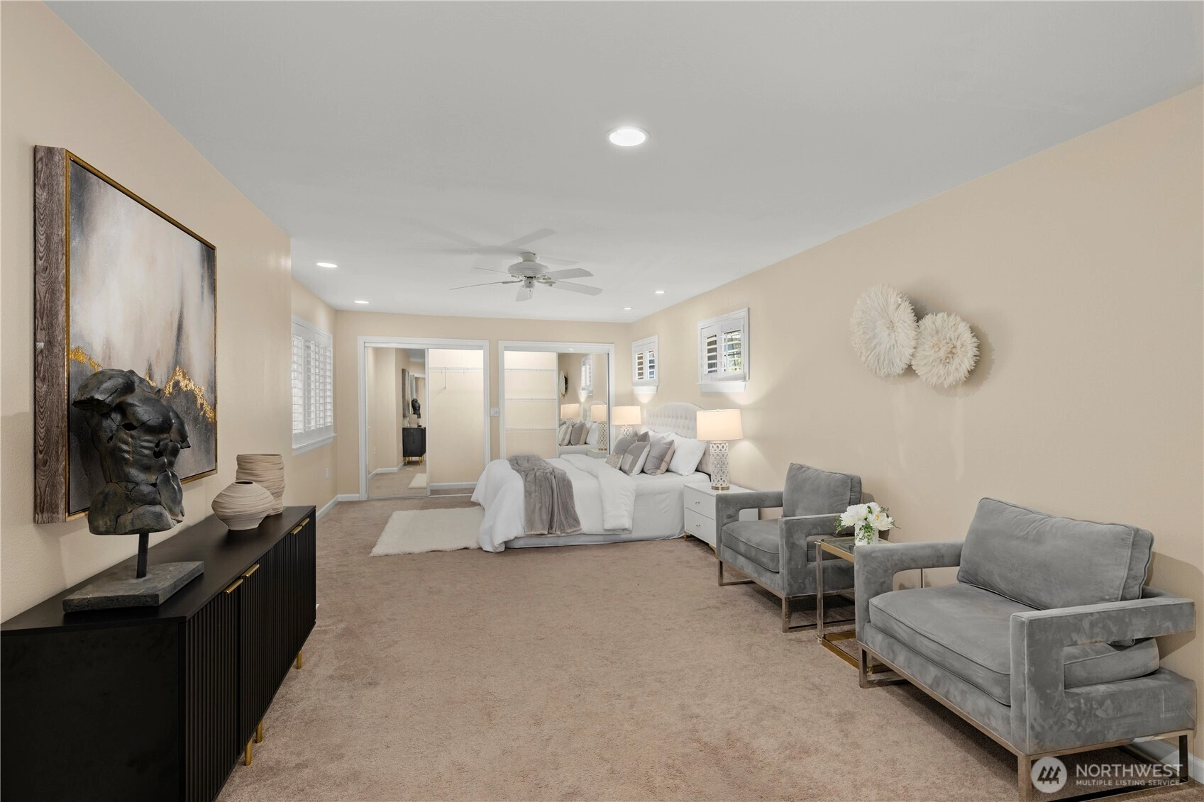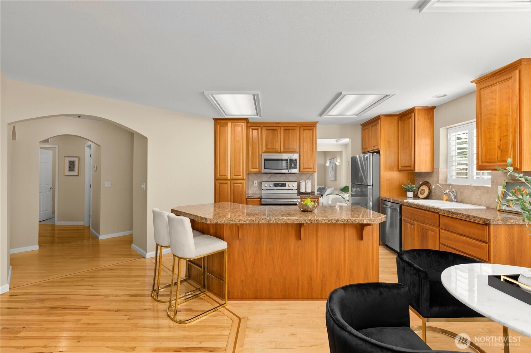 Rare find 2000-built Rambler in Bellevue’s Microsoft community! Lovely, well-maintained 3BR+Den/1.75BA, 1,990sqft on 10,675sqft flat lot. Hardwood flrs, newer roof (2023), fresh exterior paint (2024), new furnace & AC (2025). Cheerful Living Rm flows into formal Dining w/chandelier. Island Kitchen opens to nook and cozy Family Rm with fireplace & built-ins, leading to a fenced back yard w/covered patio—perfect for year-round entertaining. Spacious Primary Suite w/walk-in + 2 his/her closets. Built-in desk & Murphy bed— ideal office/guest rm. Washer/Dryer in Utility Rm. 2-car garage & long driveway parking! Quiet, walkable Overlake/NE Bellevue neighborhood near Microsoft, Overlake transit Center, parks, SR-520 and top-rated Bellevue schools!