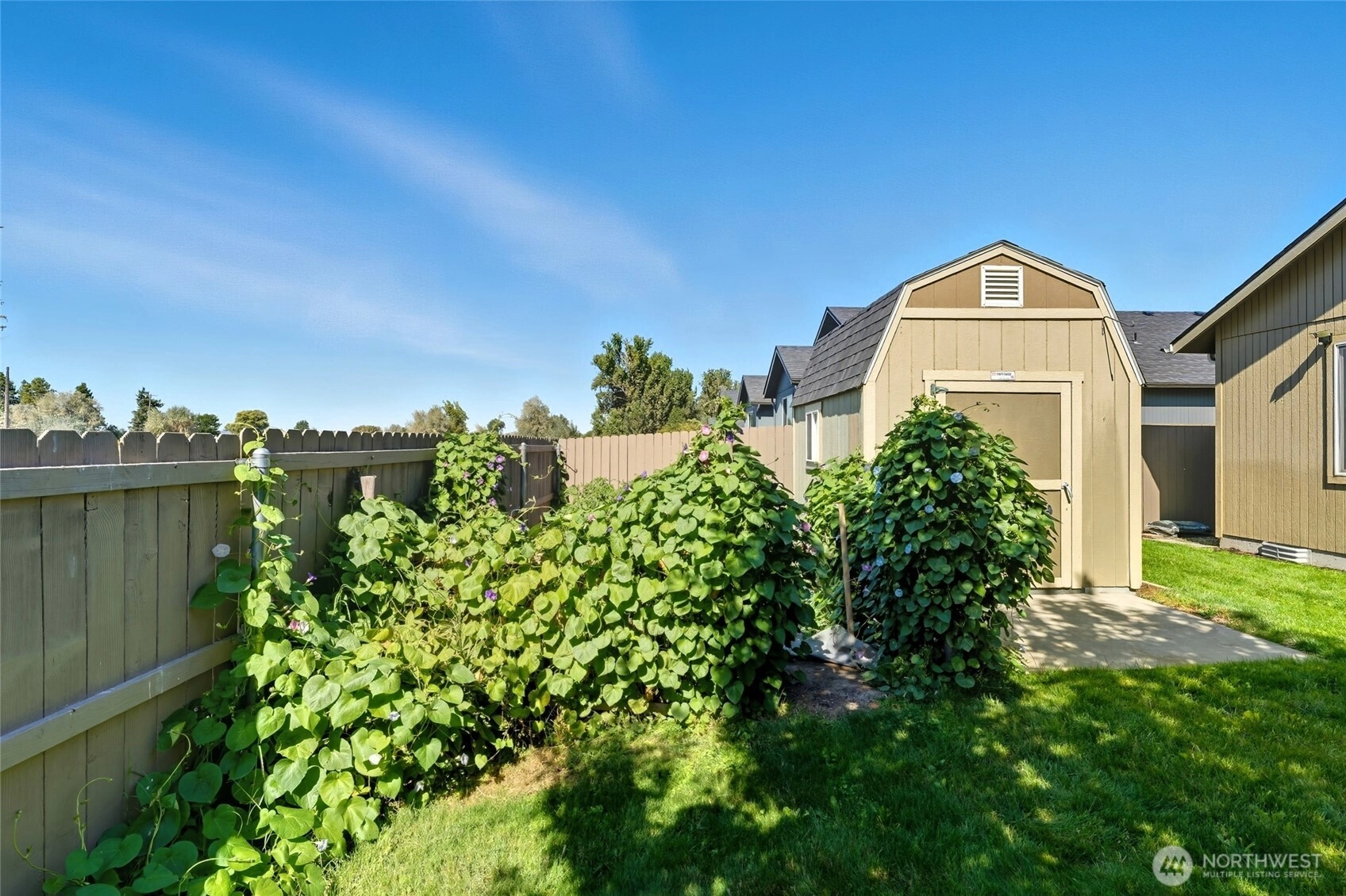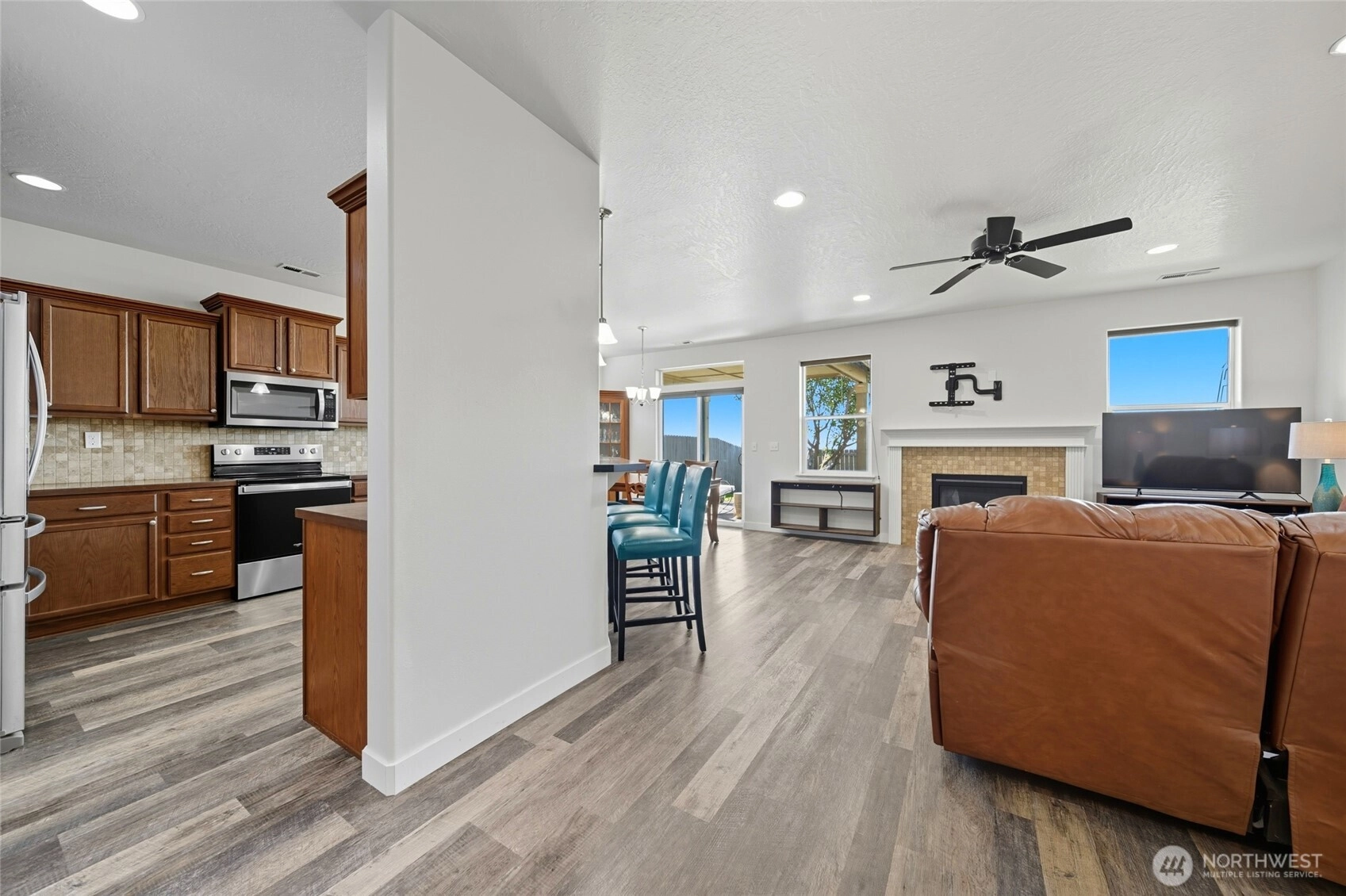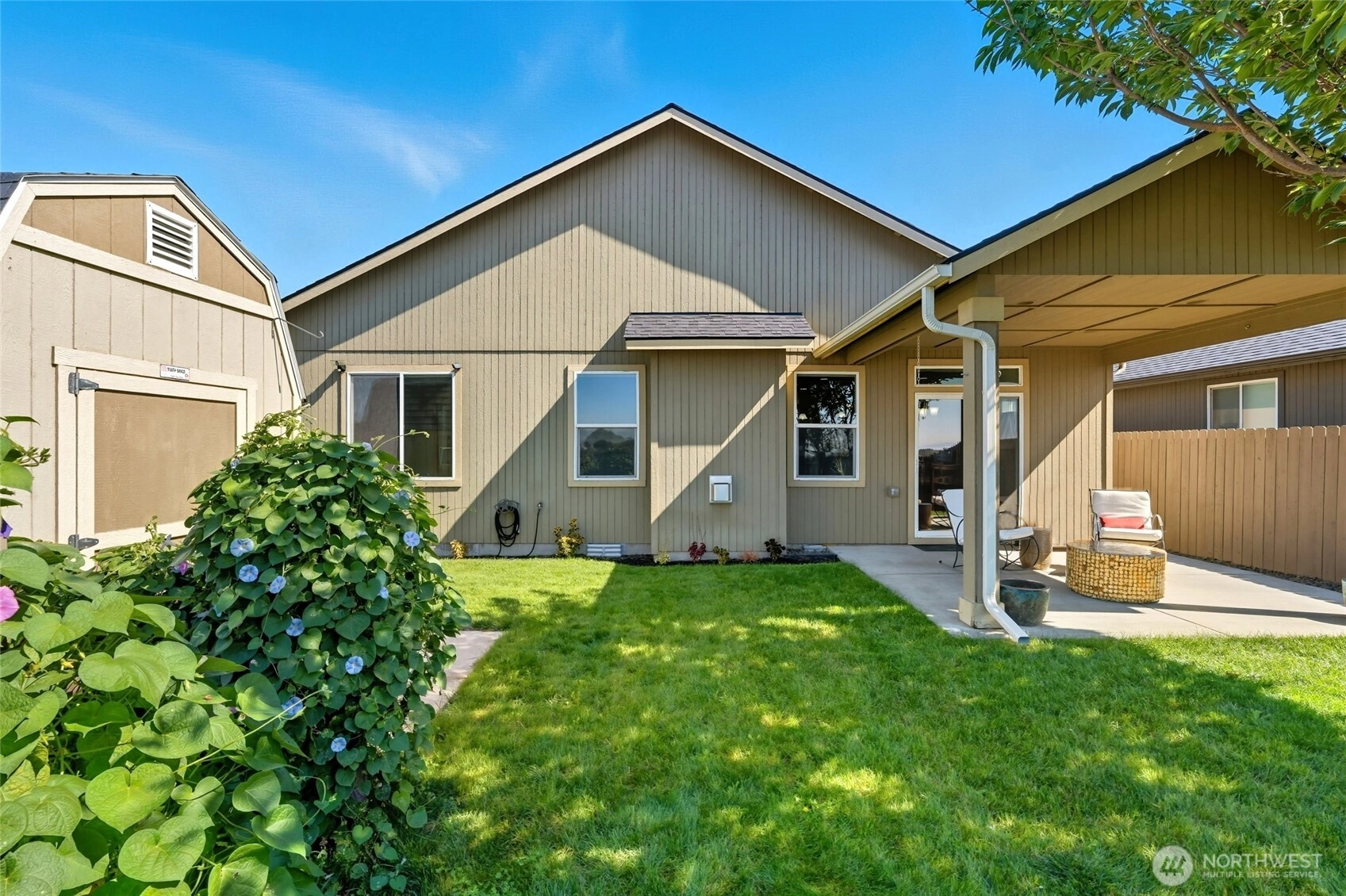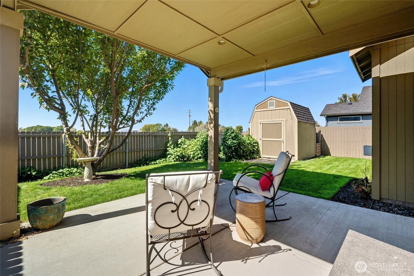 A perfect place to call home! Well-maintained, charmer in popular Homestead community, this 3bed, 2bath one-level home is turn-key ready. Featuring open concept dining and living room with cozy fireplace. Kitchen has newer appliances, convenient breakfast bar, rich wood cabinets with spacious pantry. Primary bedroom ensuite boasts double sink, walk in closet. Retreat outside to a fully fenced backyard with covered patio to enjoy morning coffee or take in those breathtaking WW sunsets. Backing up onto Martin Field, the backyard includes a garden spot and storage shed. Community has walking trails plus park area for outdoor fun. Call today for your private showing.