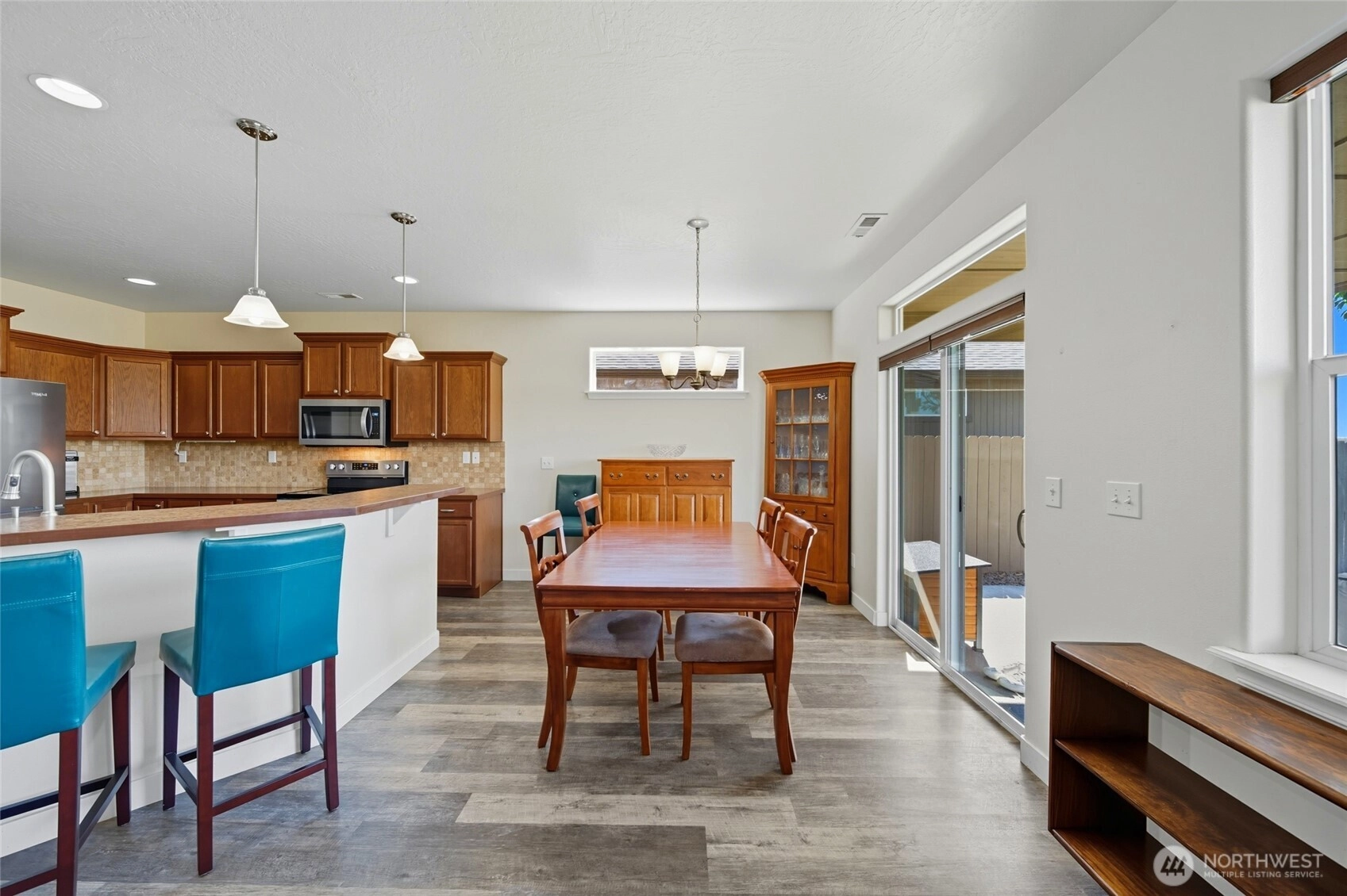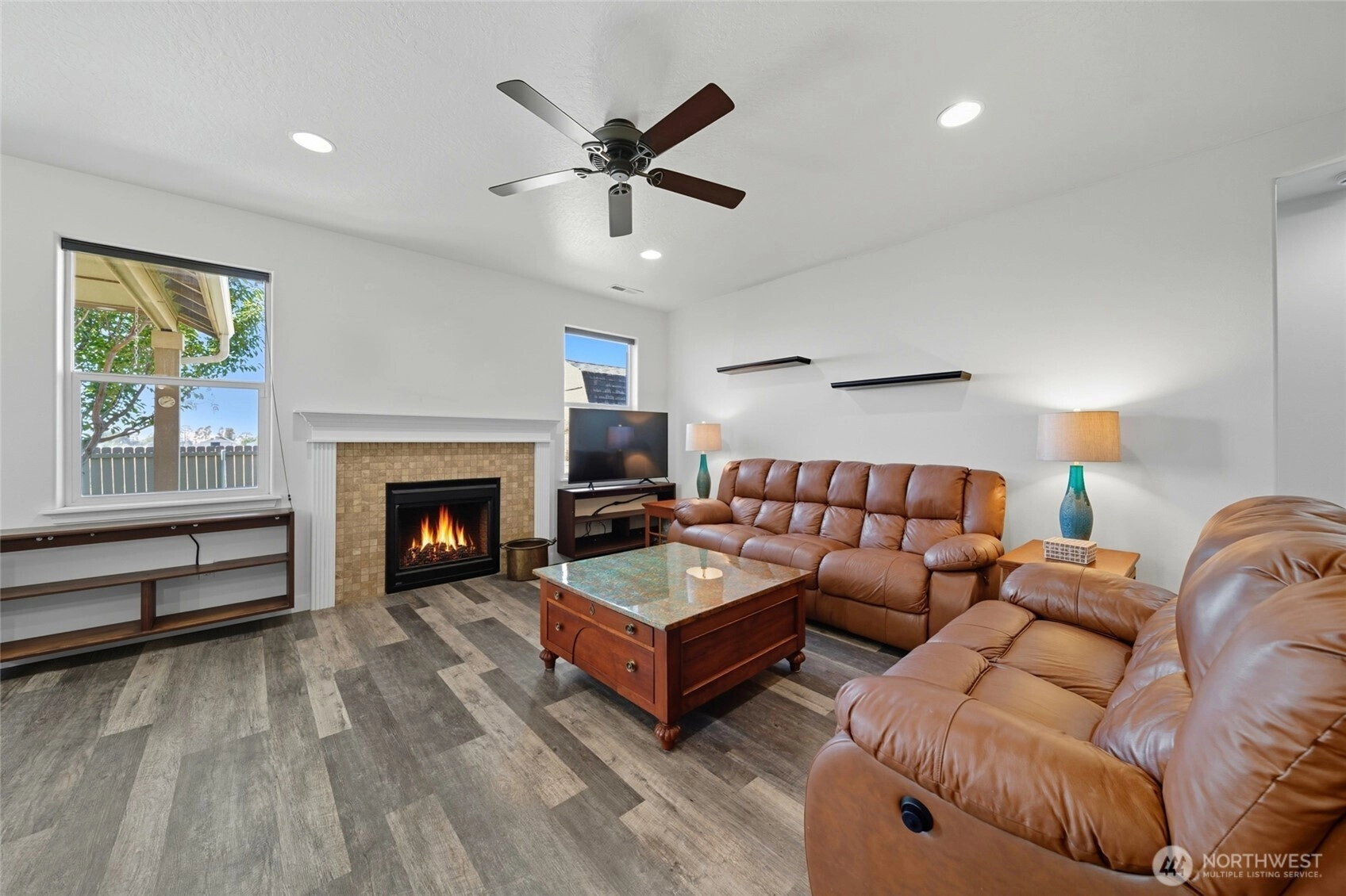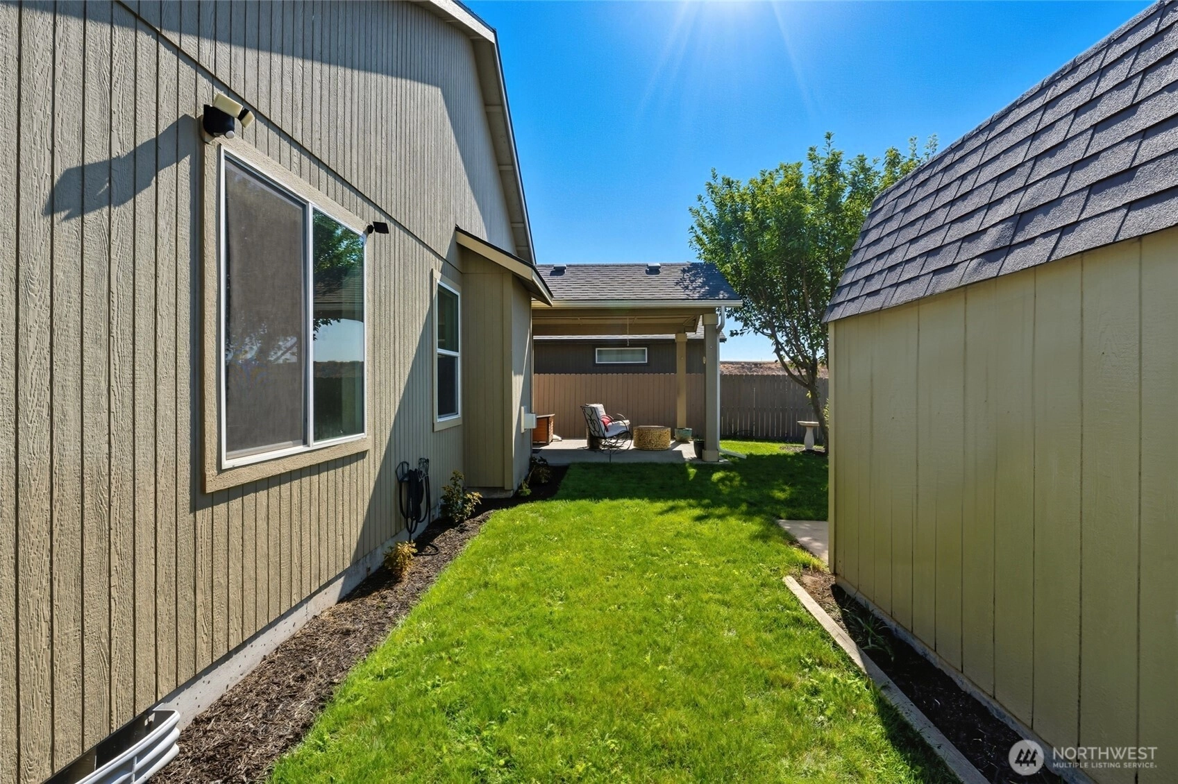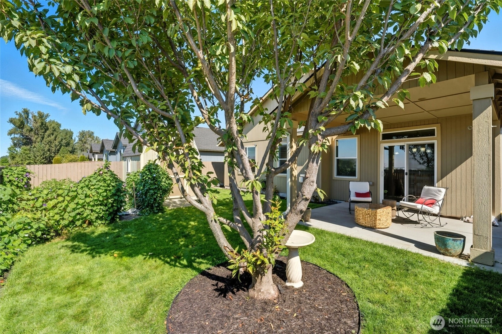 A perfect place to call home! Well-maintained, charmer in popular Homestead community, this 3bed, 2bath one-level home is turn-key ready. Featuring open concept dining and living room with cozy fireplace. Kitchen has newer appliances, convenient breakfast bar, rich wood cabinets with spacious pantry. Primary bedroom ensuite boasts double sink, walk in closet. Retreat outside to a fully fenced backyard with covered patio to enjoy morning coffee or take in those breathtaking WW sunsets. Backing up onto Martin Field, the backyard includes a garden spot and storage shed. Community has walking trails plus park area for outdoor fun. Call today for your private showing.